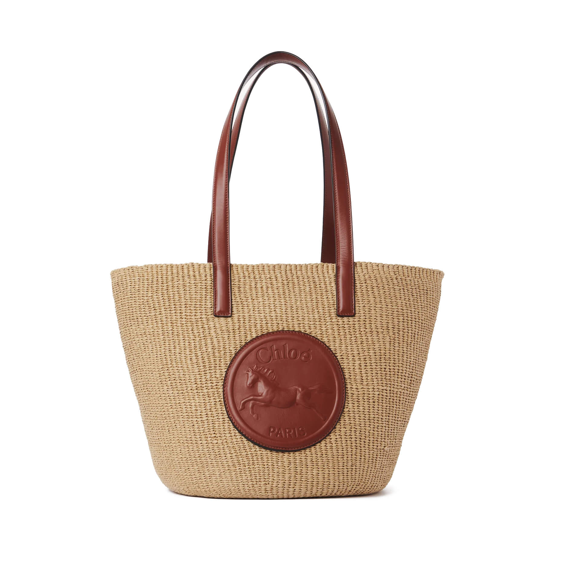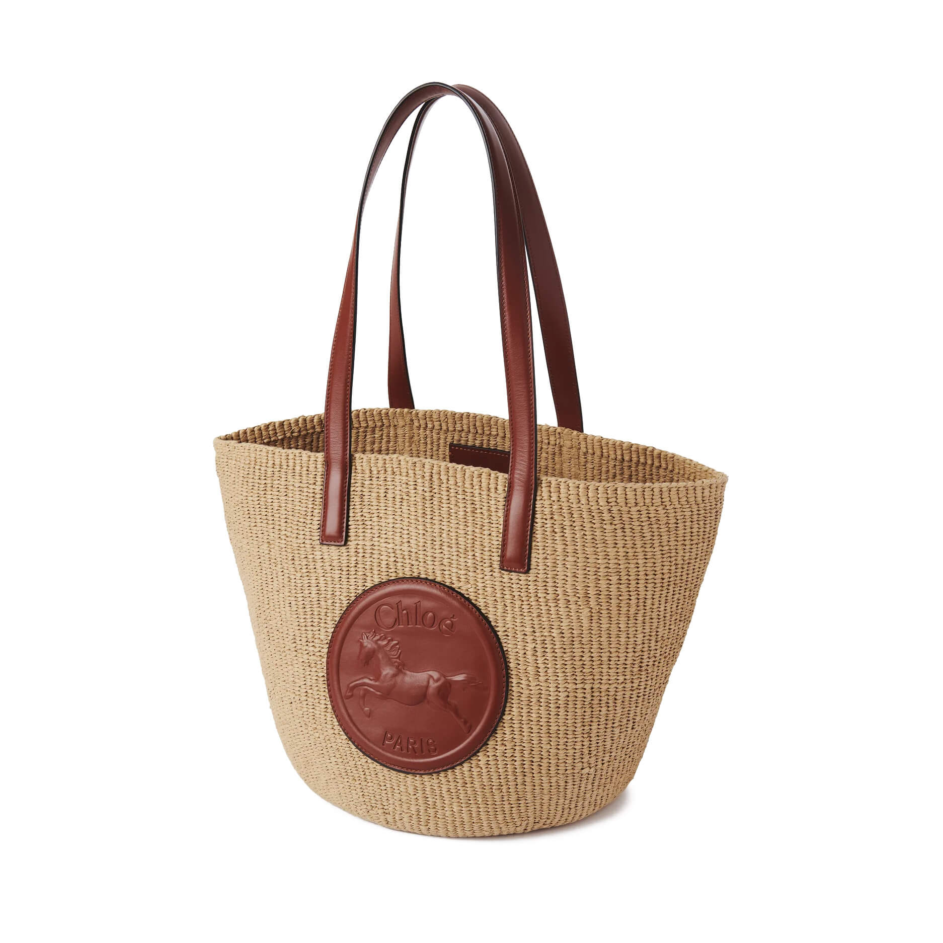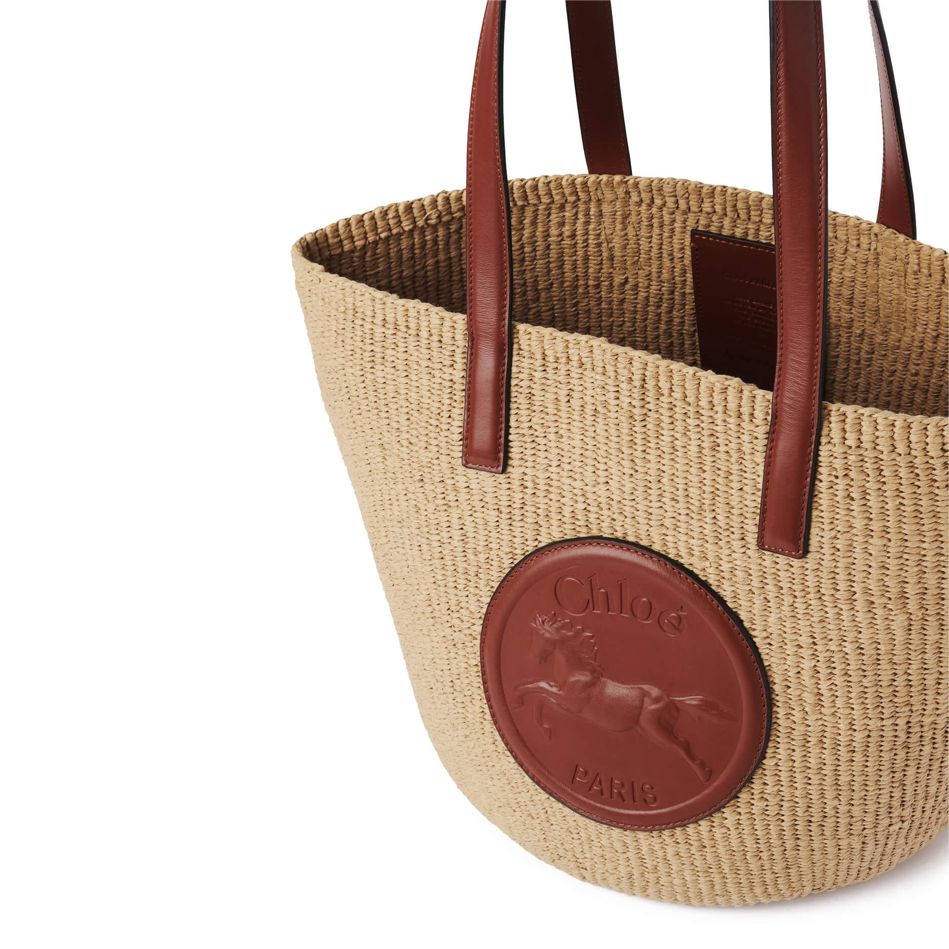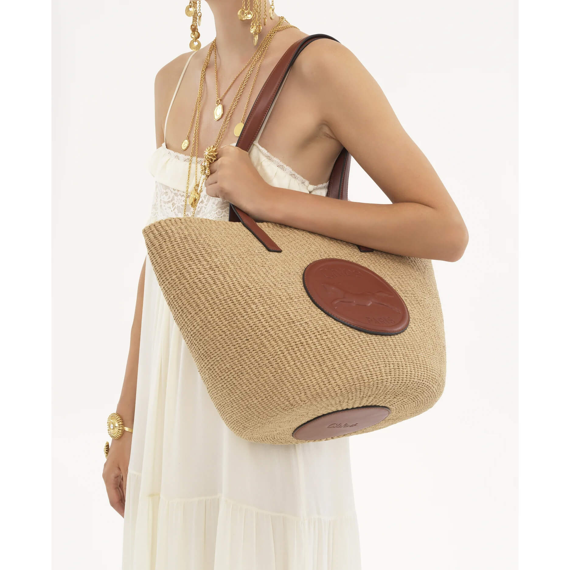 Large Horse Medal basket bag in fair-trade paper & calfskin