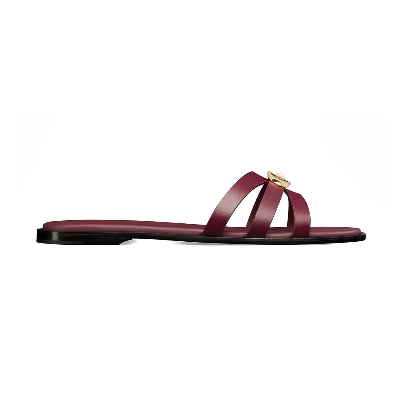 כפכפים עם רצועות מעור calfskin בצבע בורדו