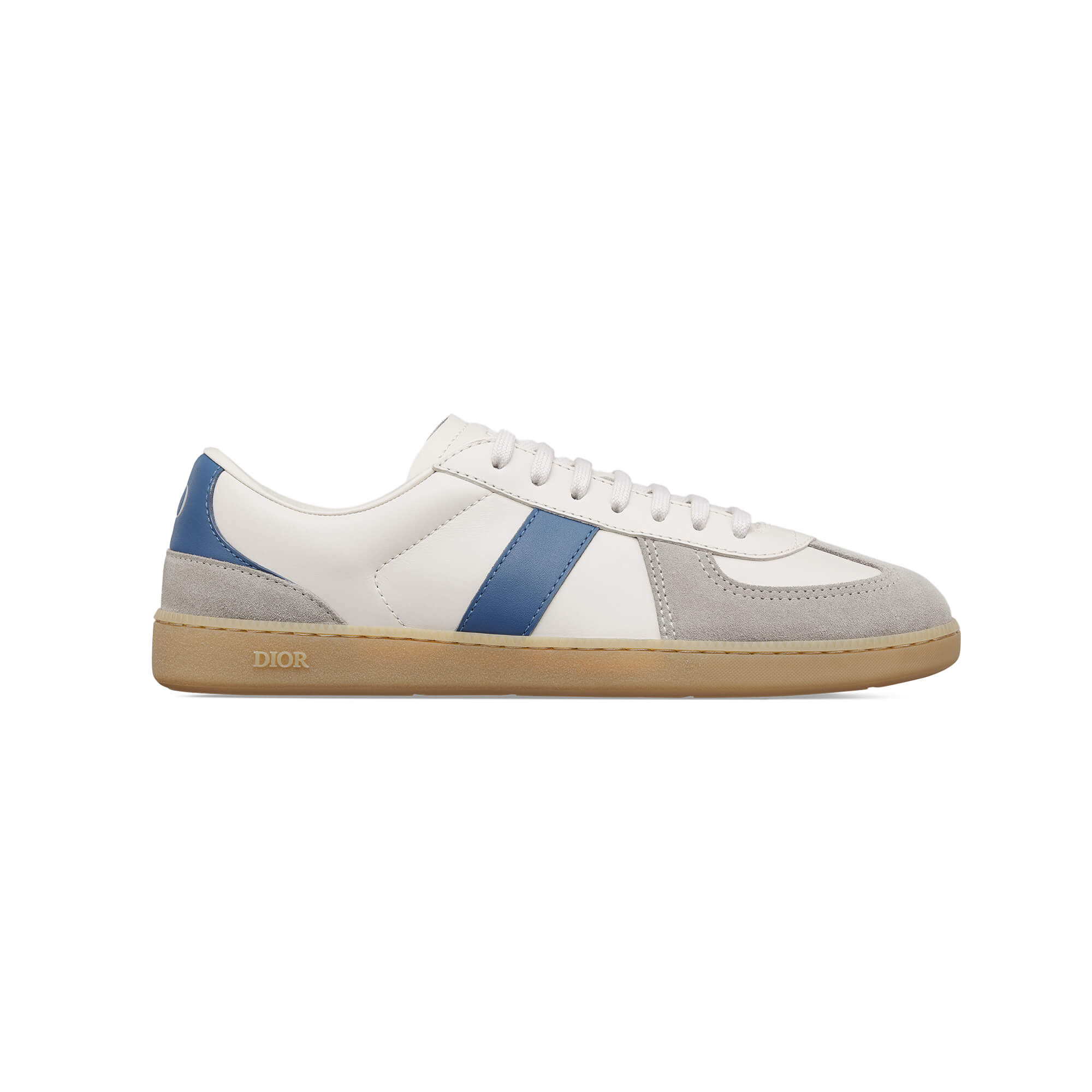 נעלי סניקרס מעור calfskin חלק בצבע לבן וכחול בשילוב זמש calfskin בצבע אפור