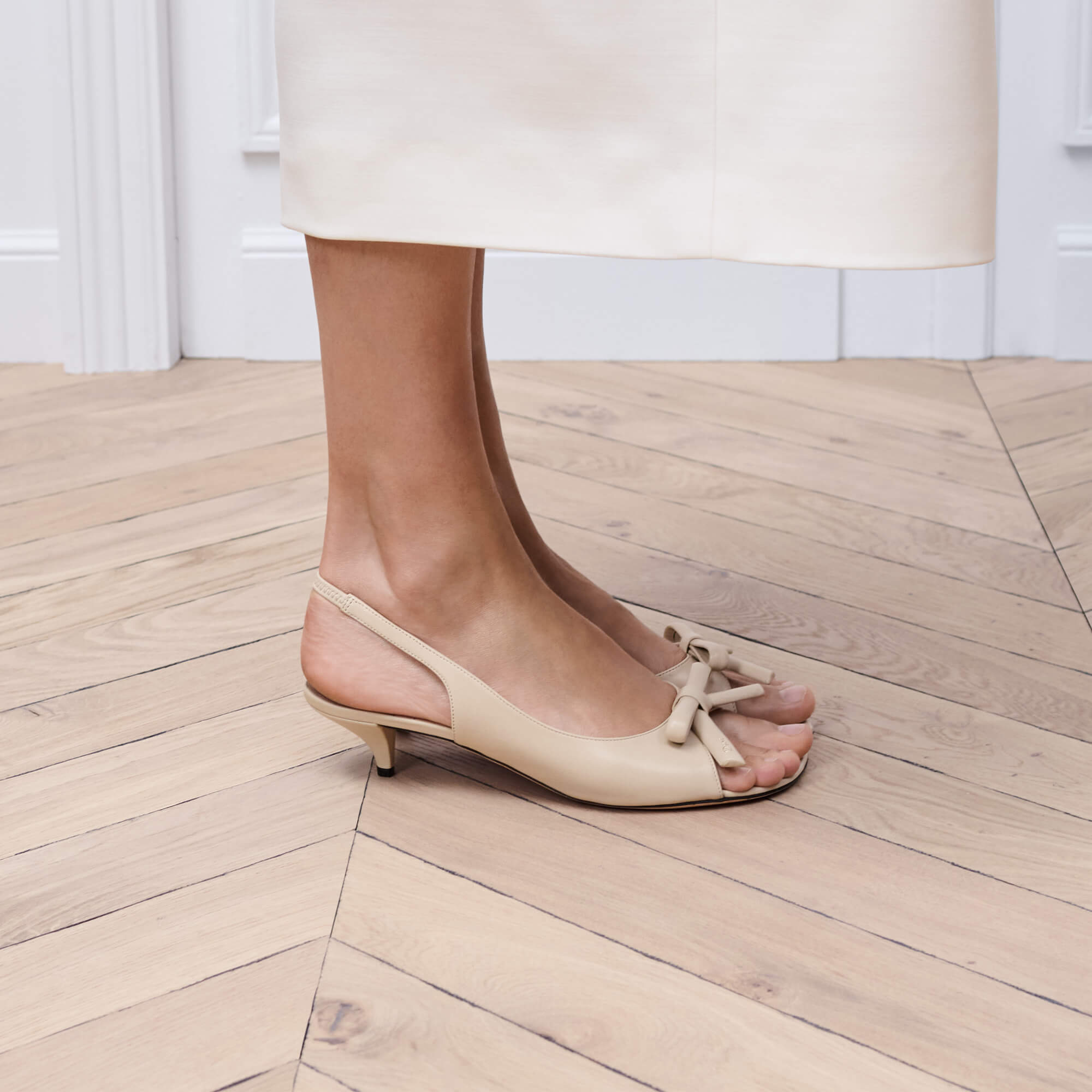 סנדלי עקב slingback מעור lambskin בצבע בז׳