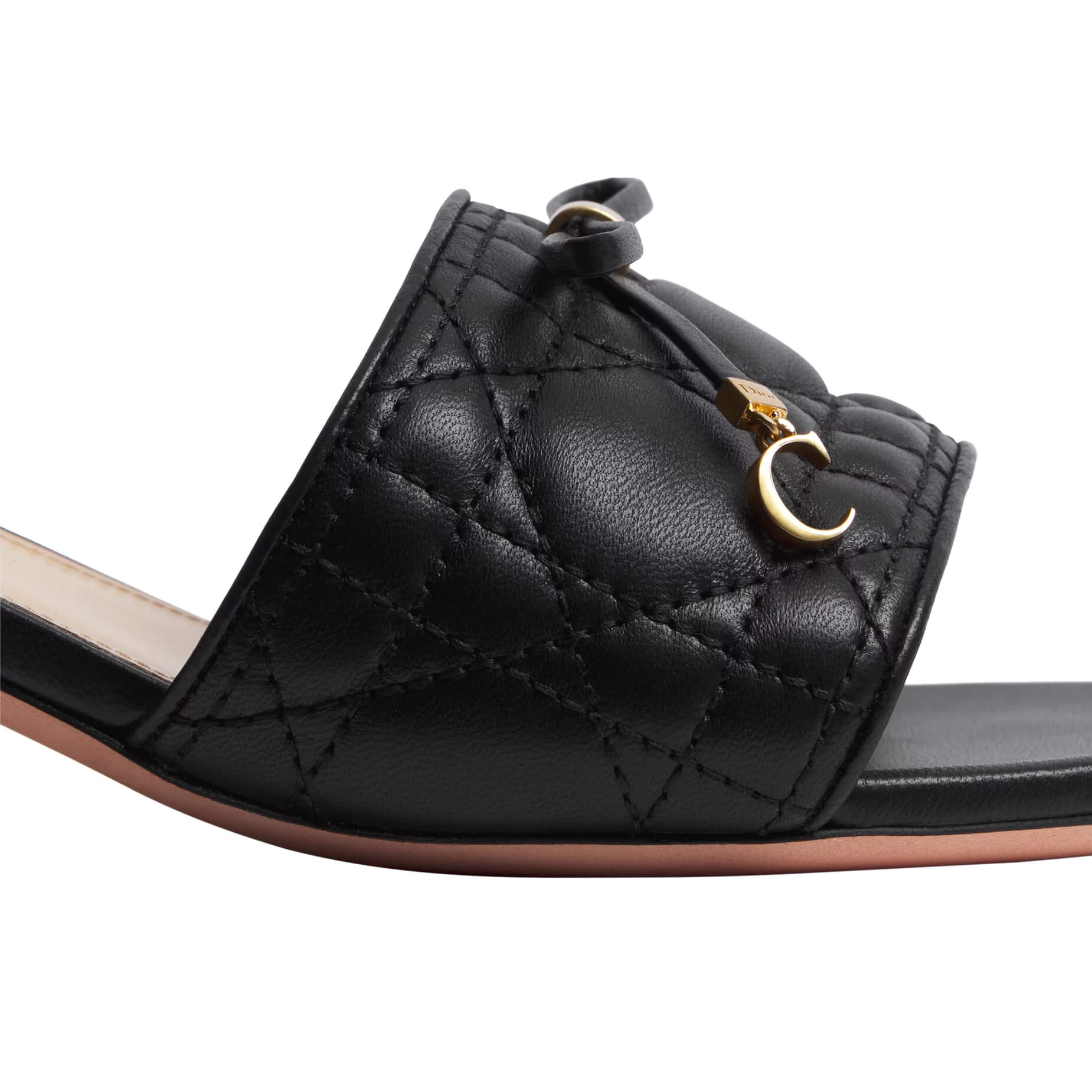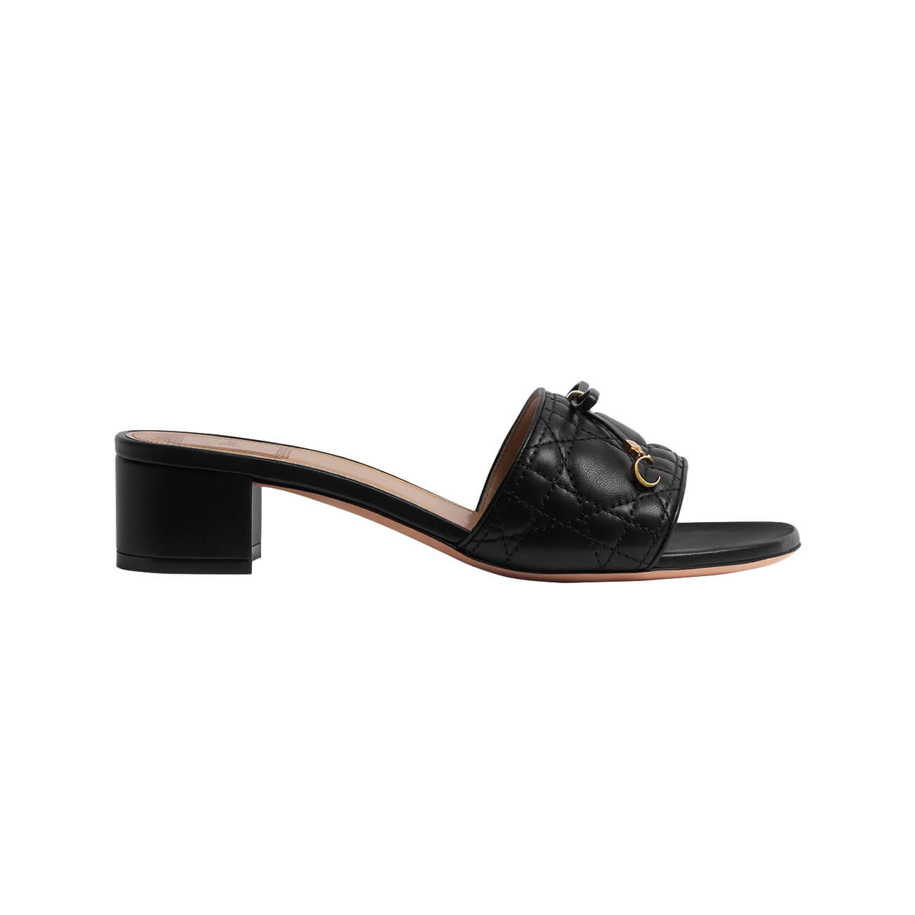 כפכפי עקב מעור lambskin בצבע שחור עם תיפורים בדוגמת Cannage