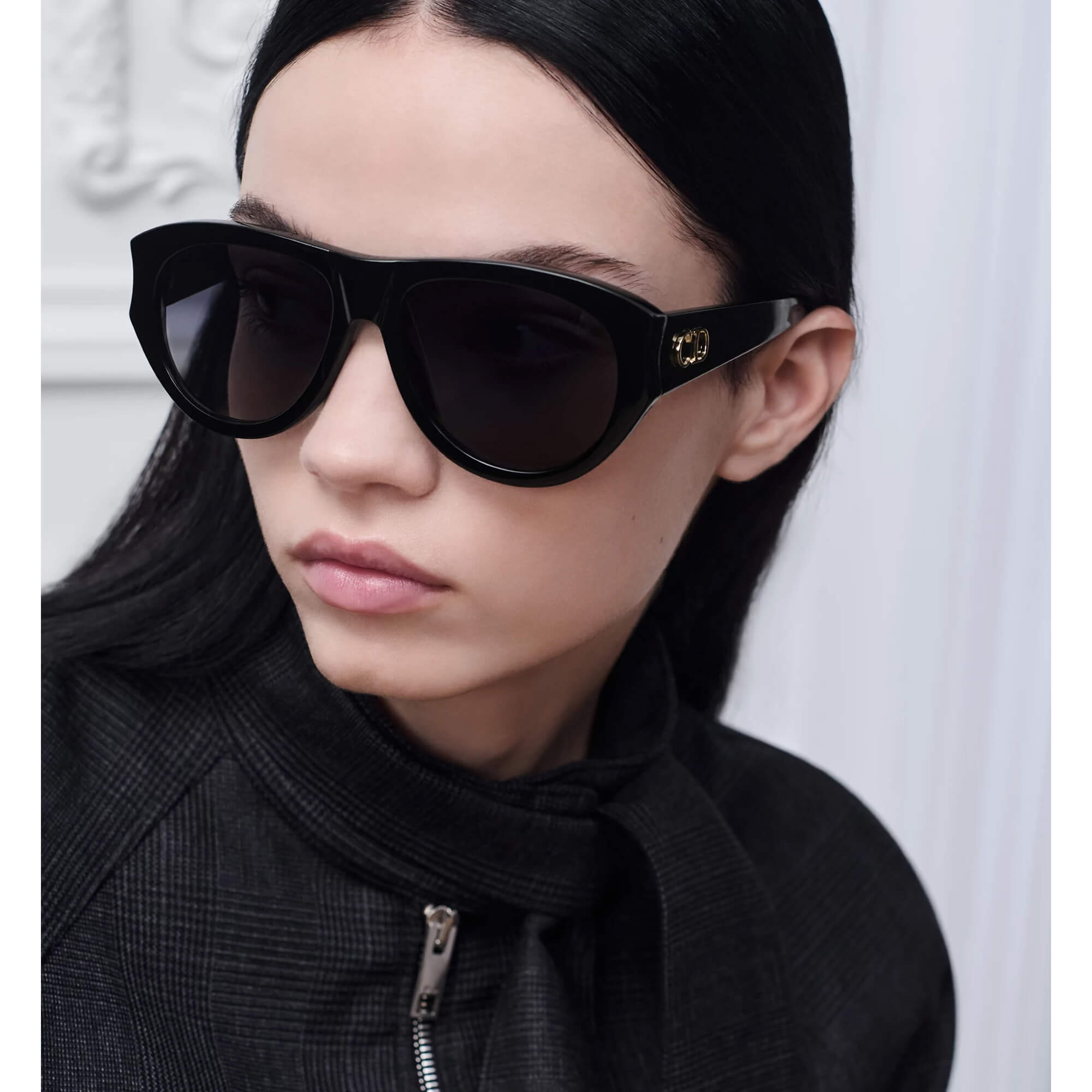 משקפי שמש עם מסגרת אצטט מבריק בצבע שחור
