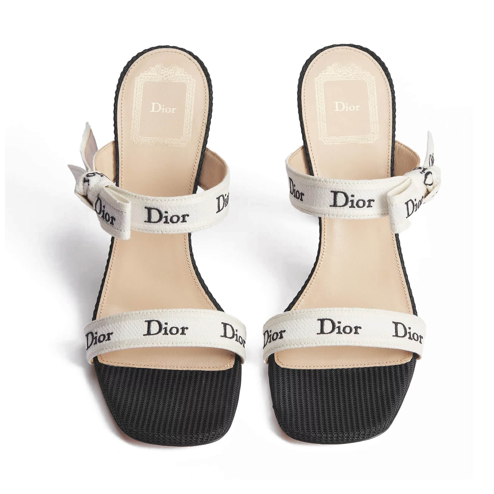 שתי רצועות מסרטי כותנה עם רקמת Dior, אחת מהן עם פפיון שטוח