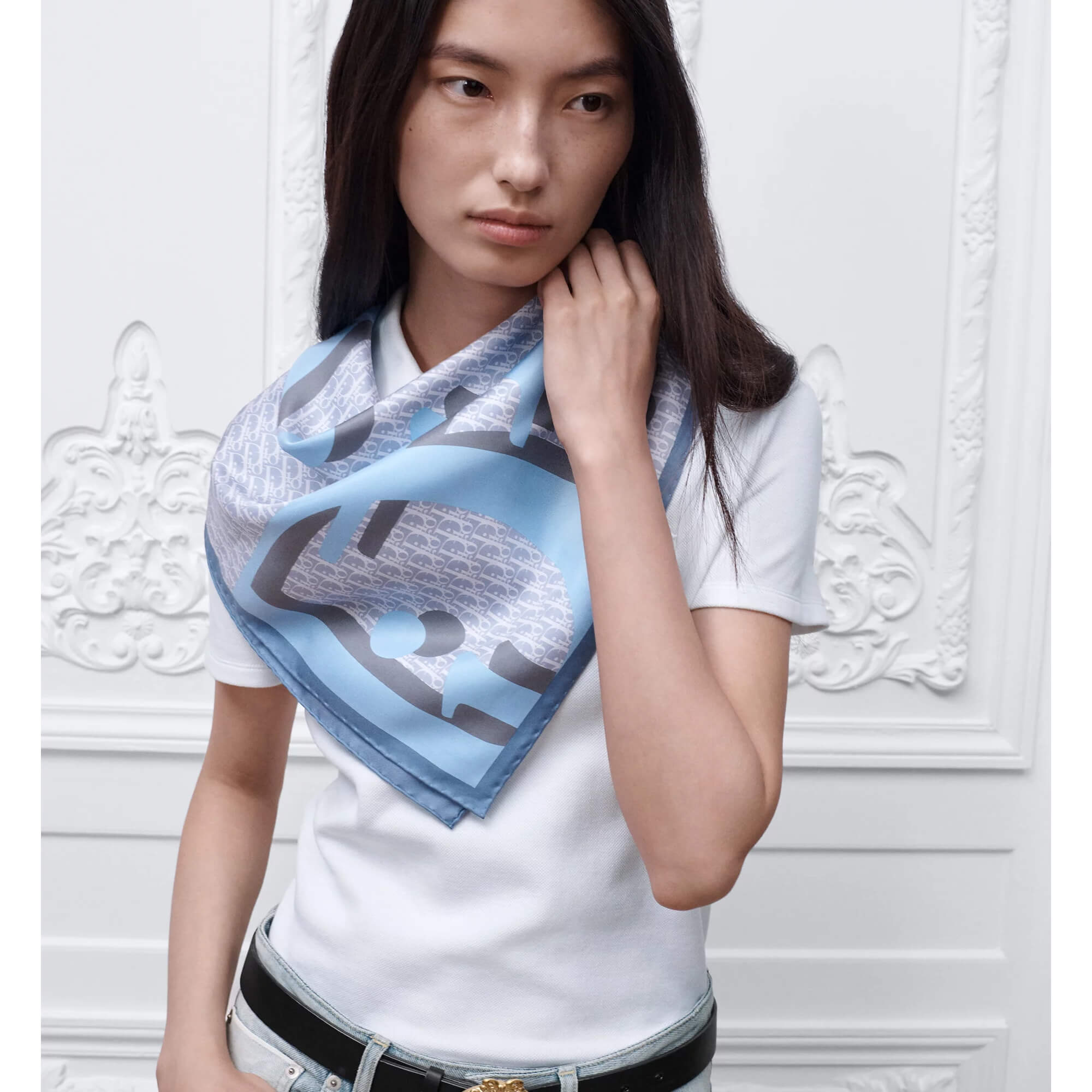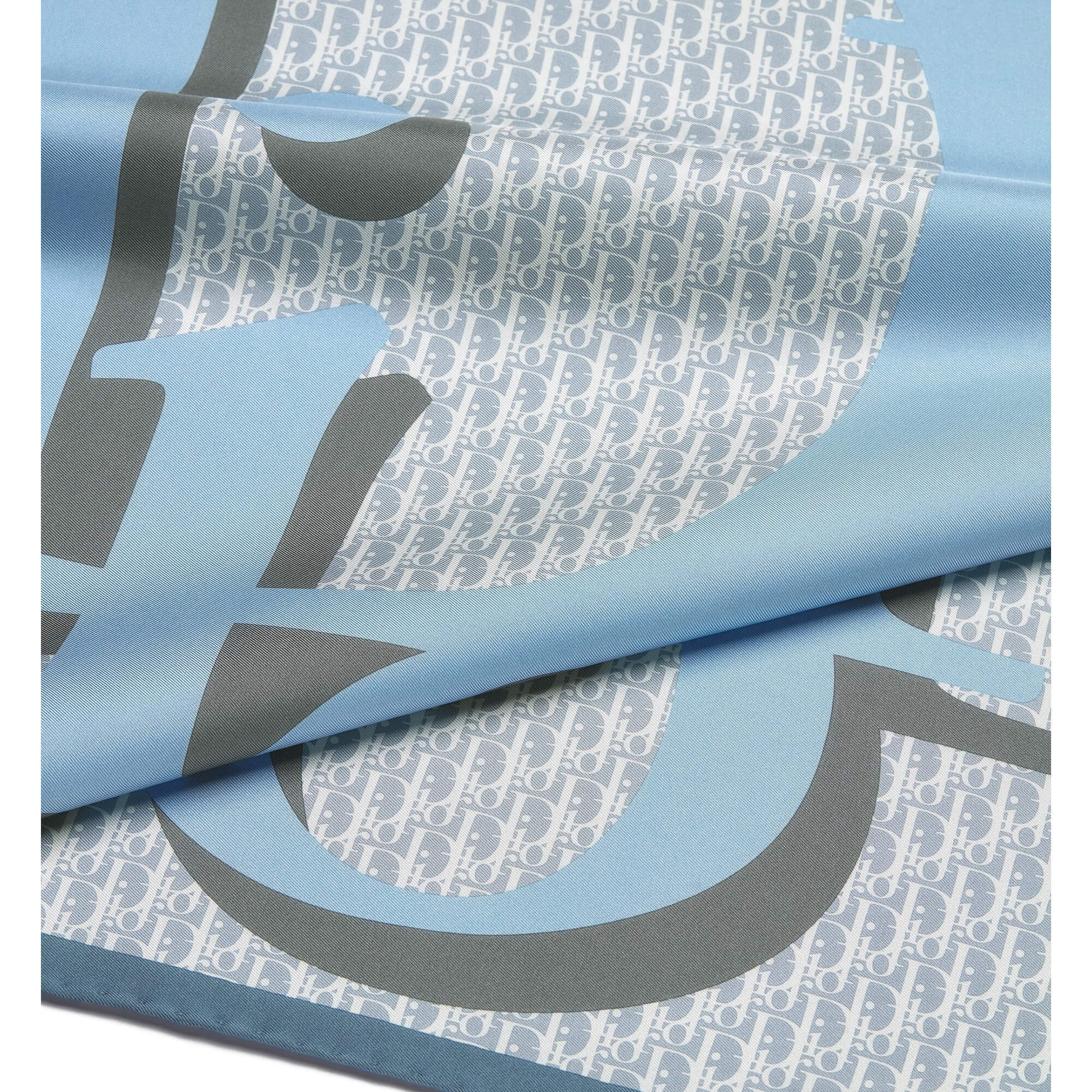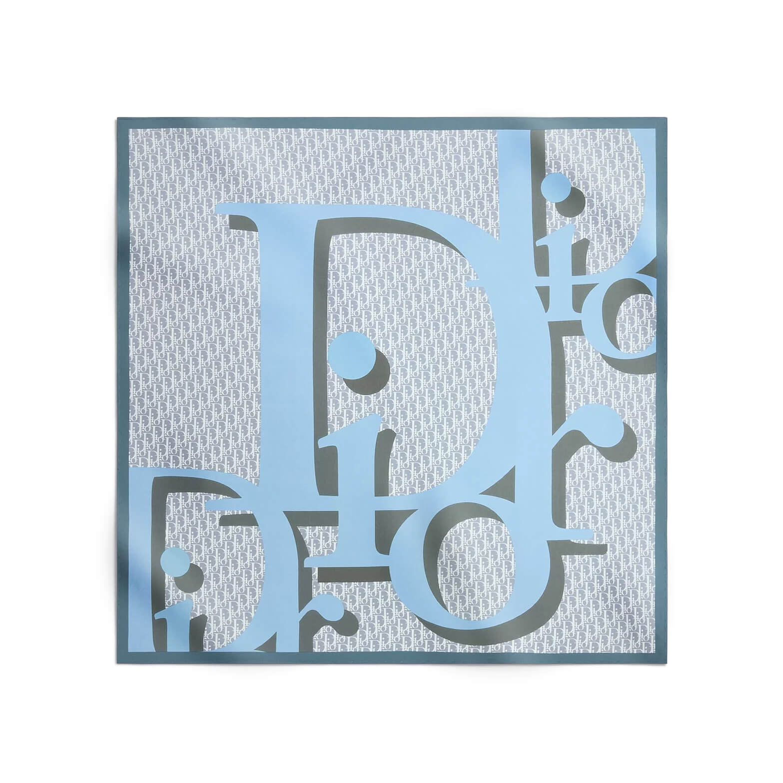 צעיף משי מרובע מבד משי בצבע כחול עם הדפס Blue Dior Infini