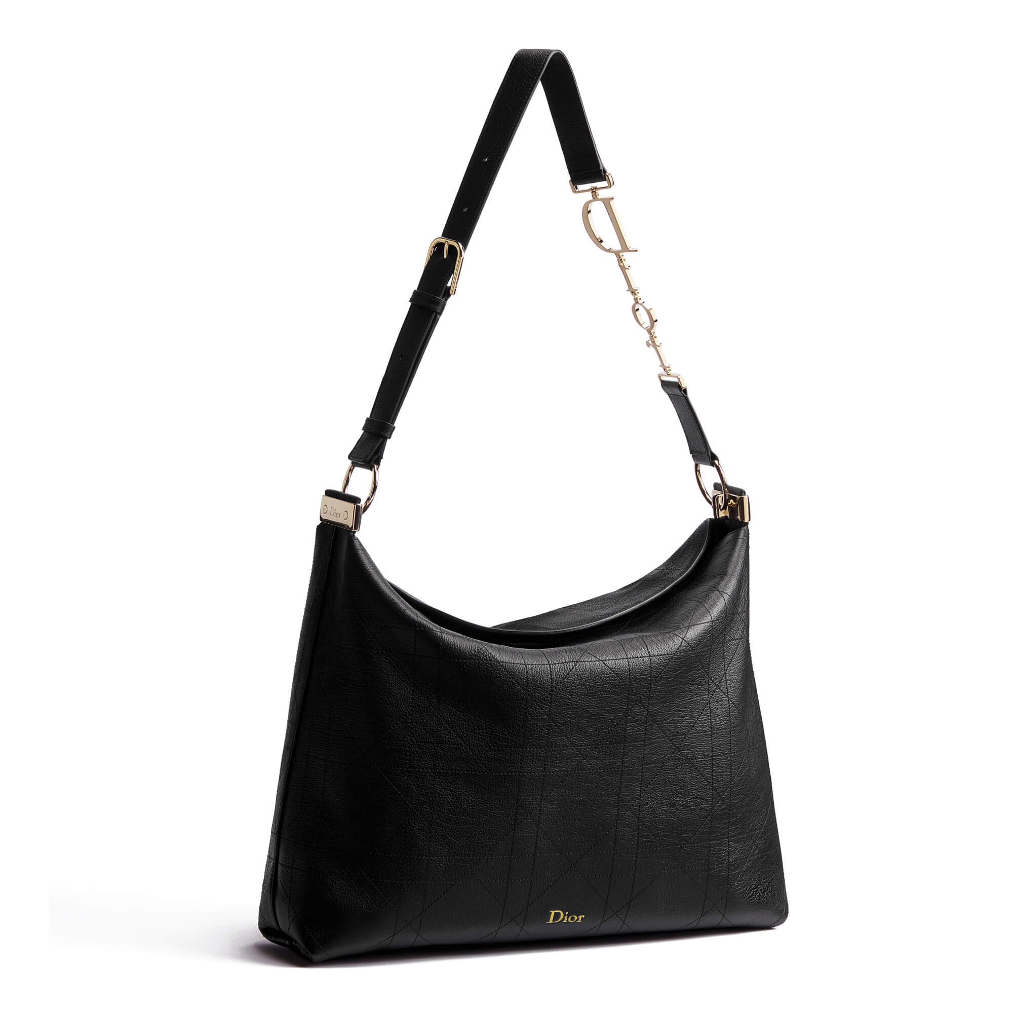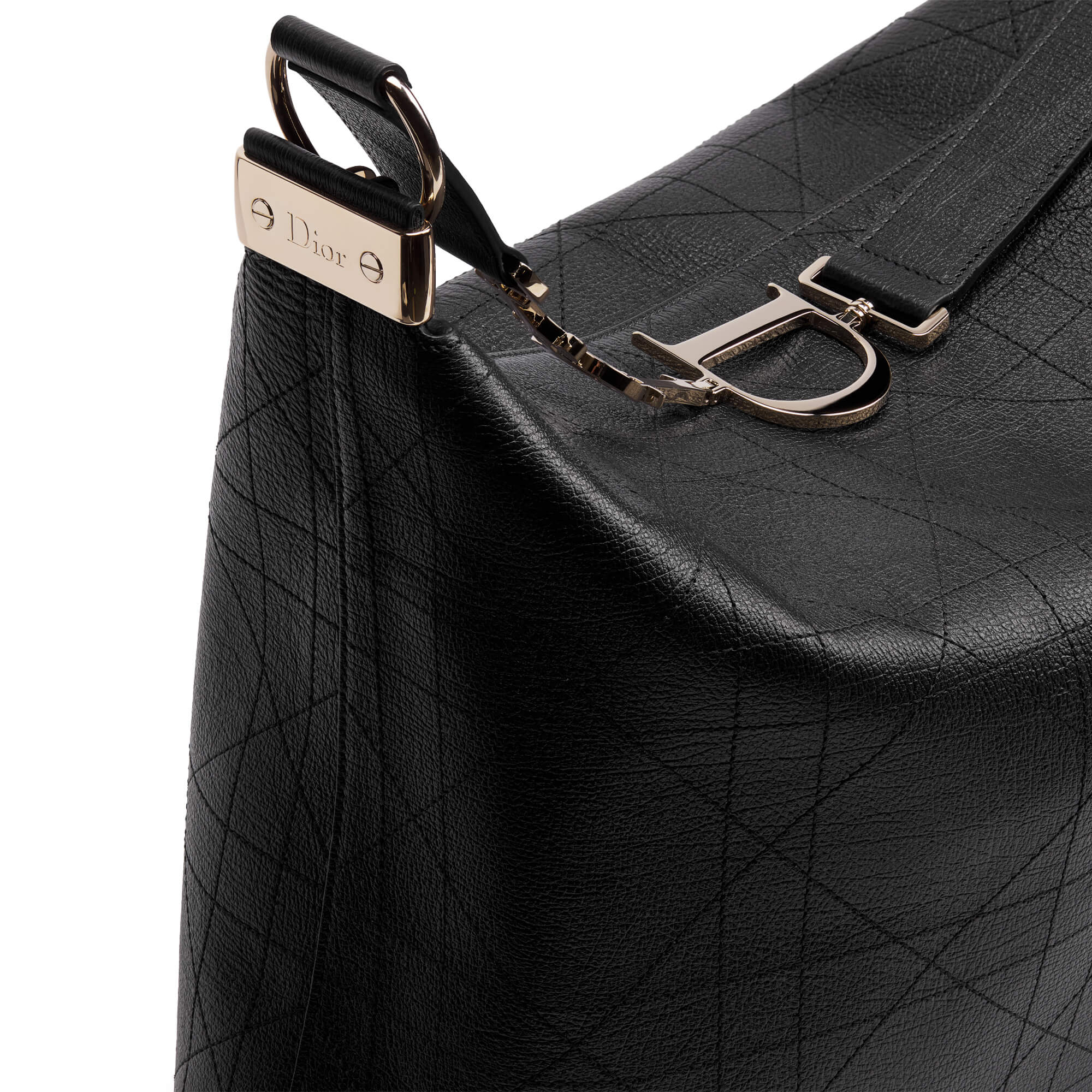 תיק גדול מעור calfskin בצבע שחור עם דוגמת Flat Cannage