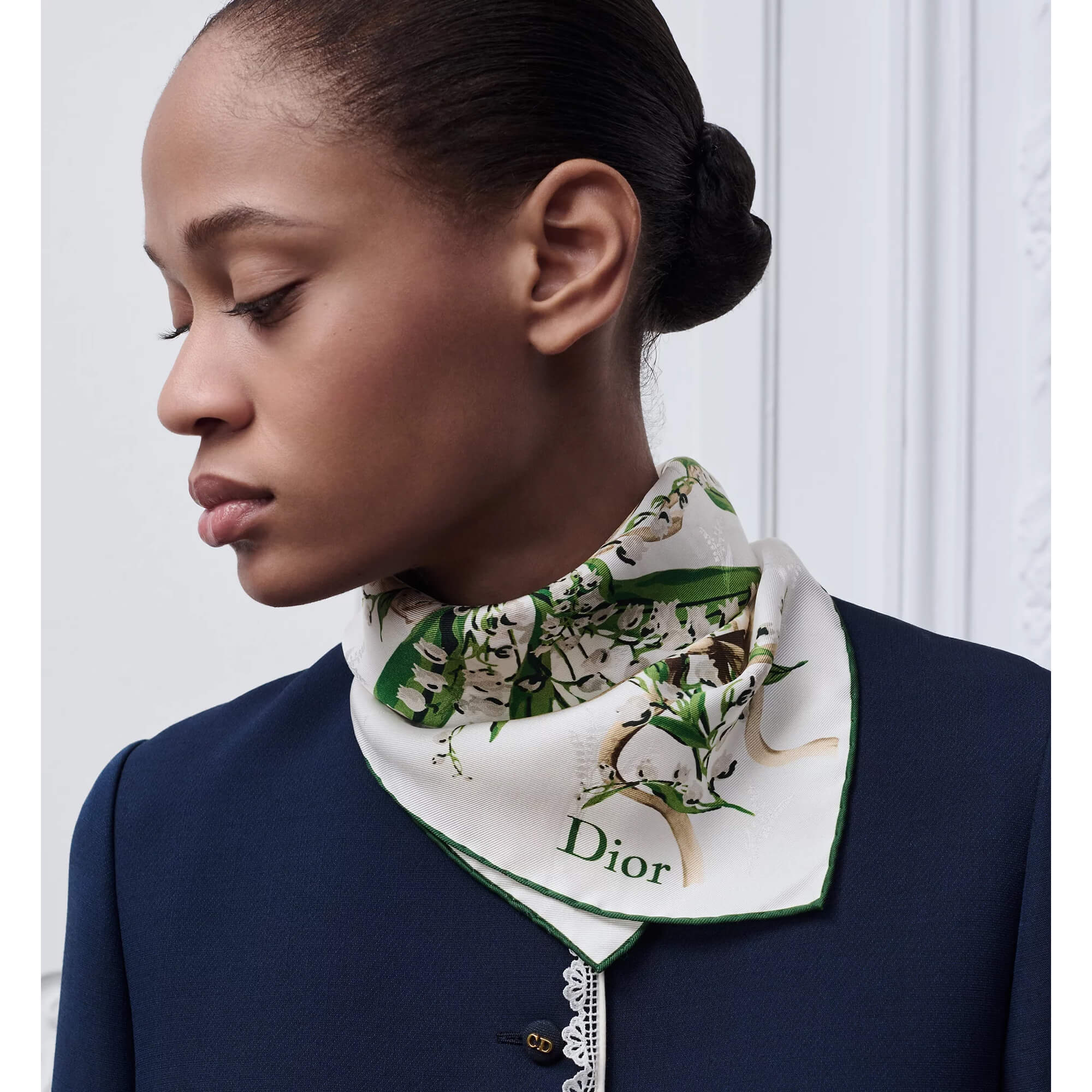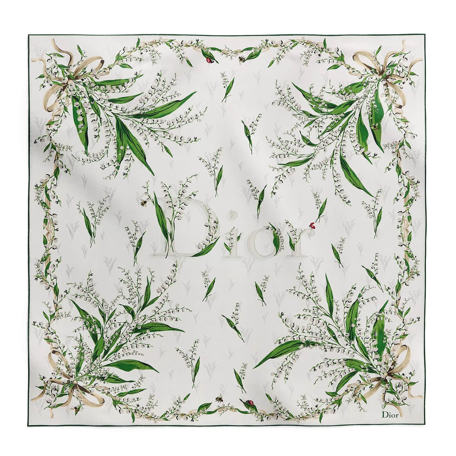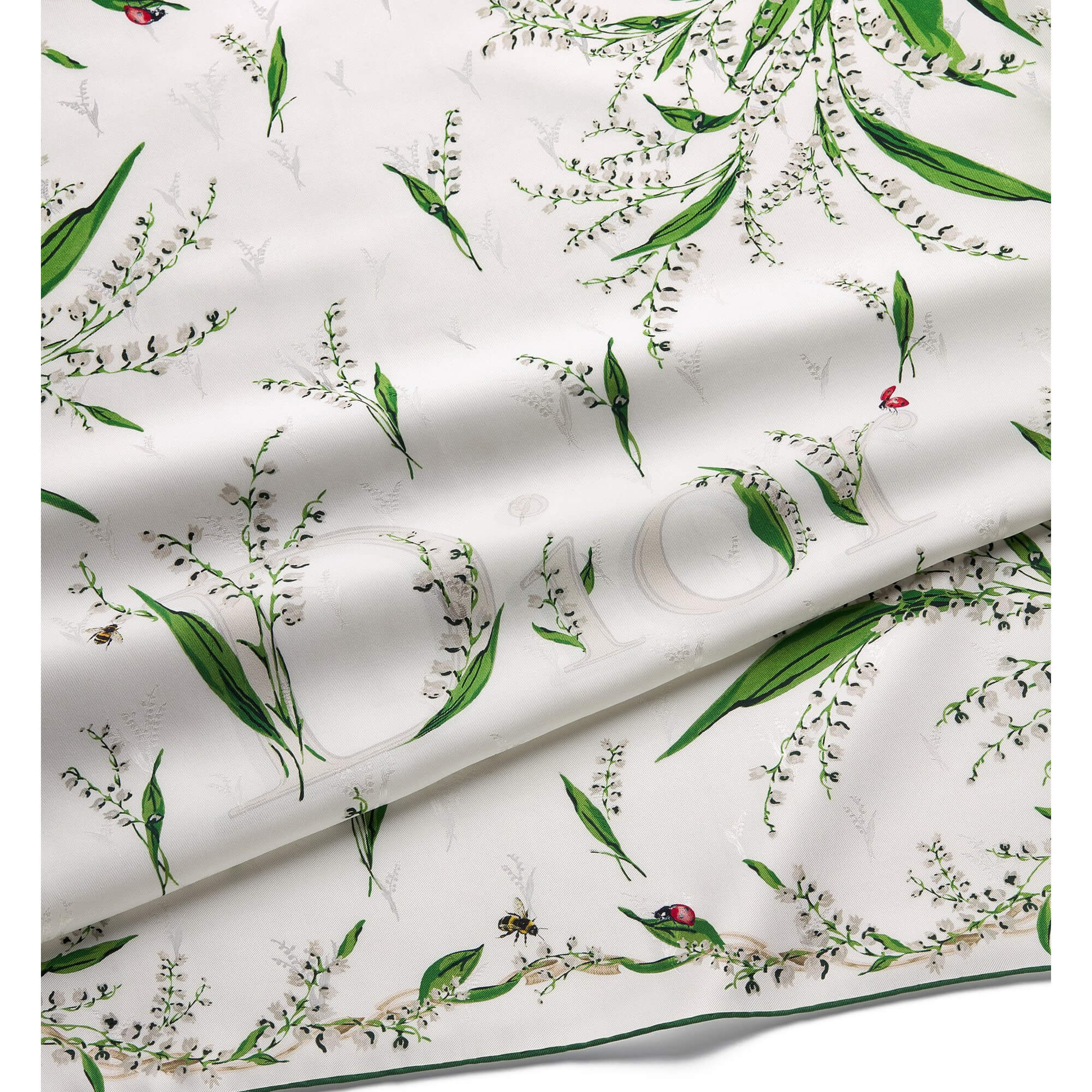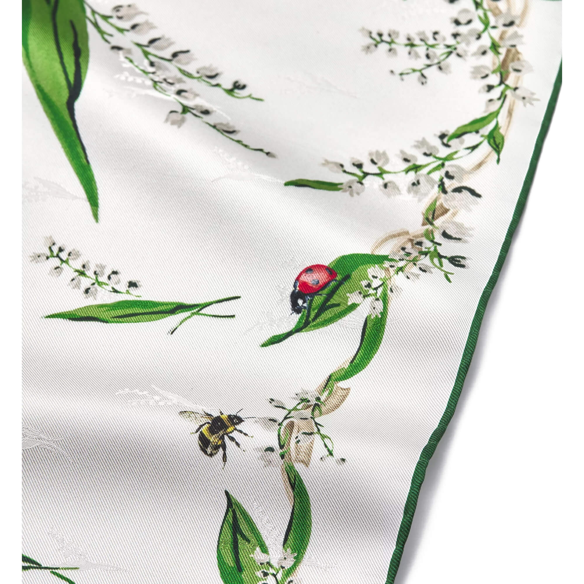 צעיף מבד משי לבן עם הדפס Lily Of the Valley