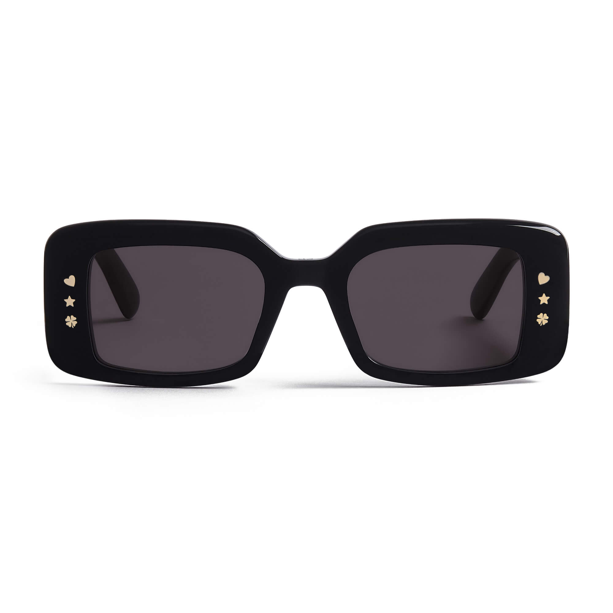 עיטורי לב, כוכב ותלתן בצבע זהב בחזית