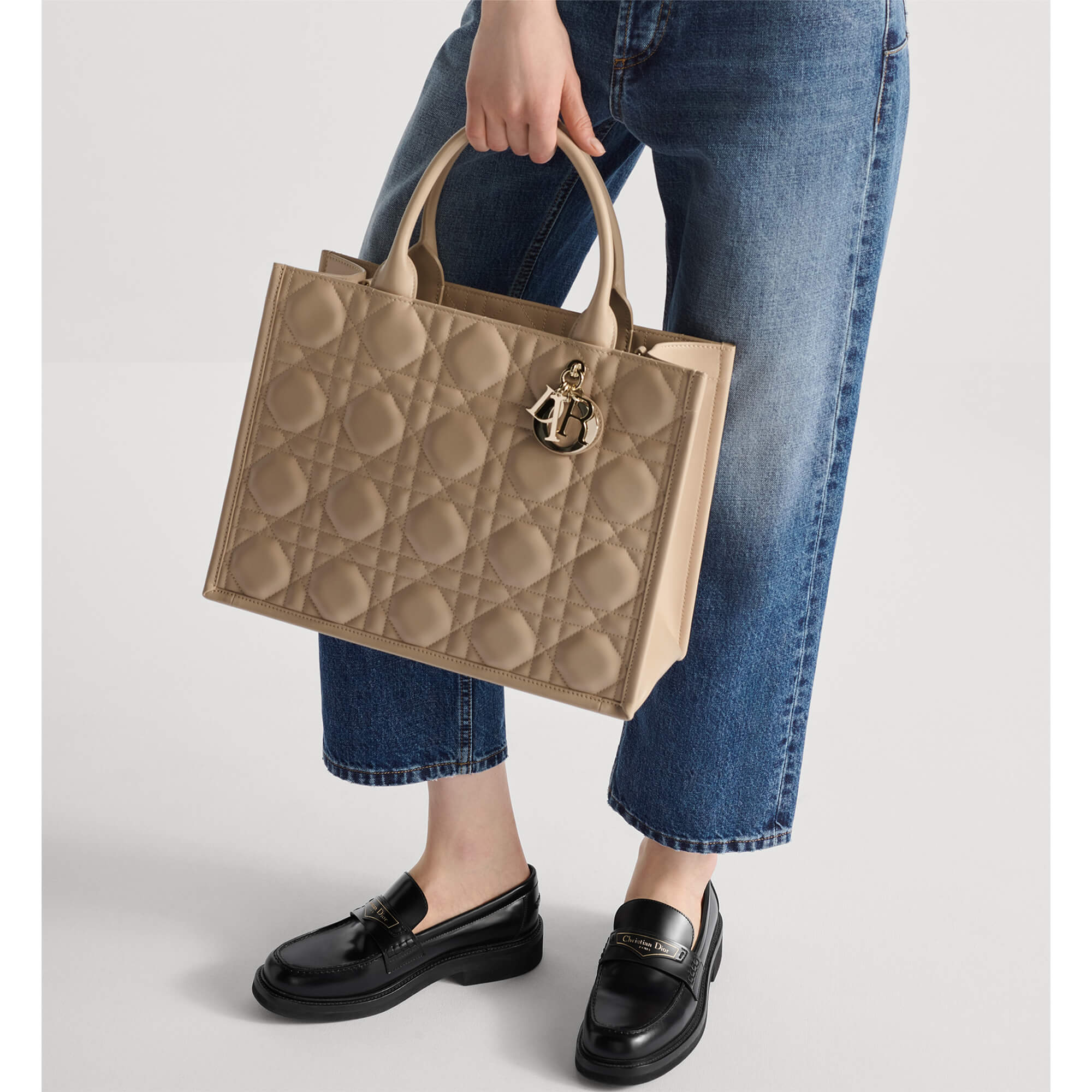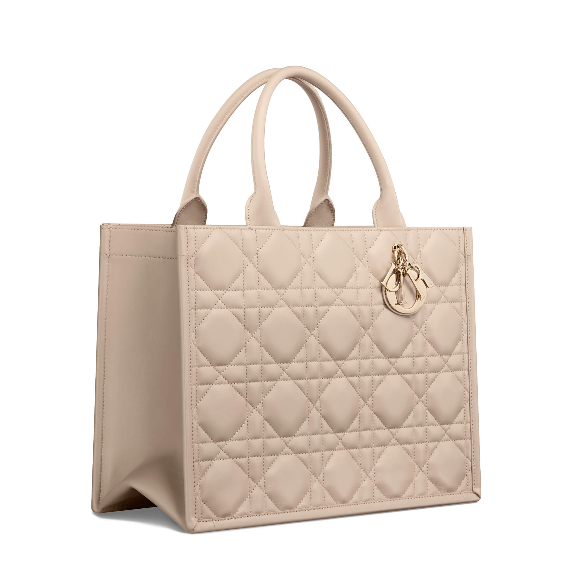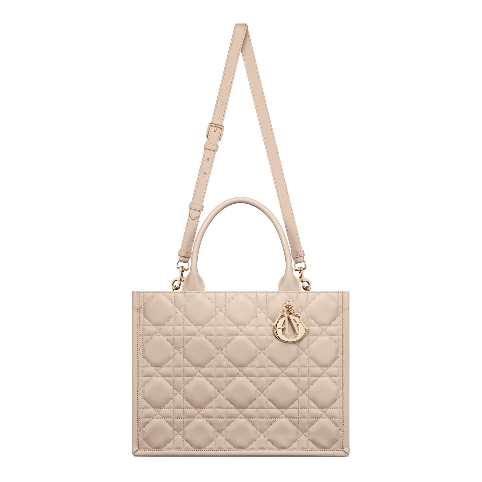 תיק בינוני מעור calfskin עם תיפורי Macrocannage בצבע בז׳ פודרה