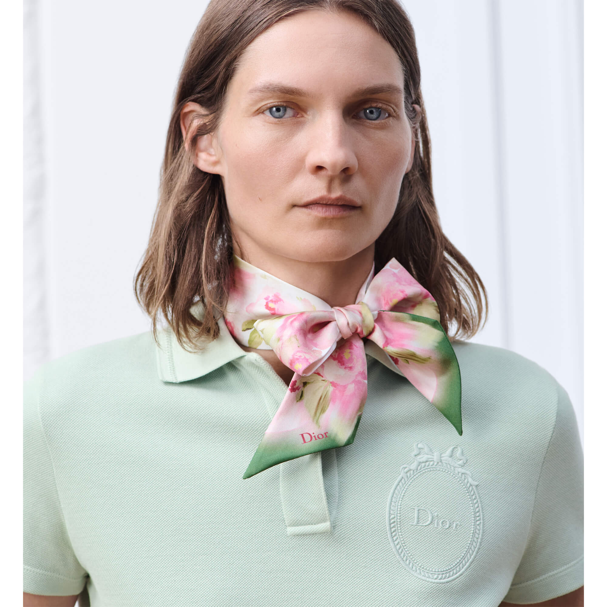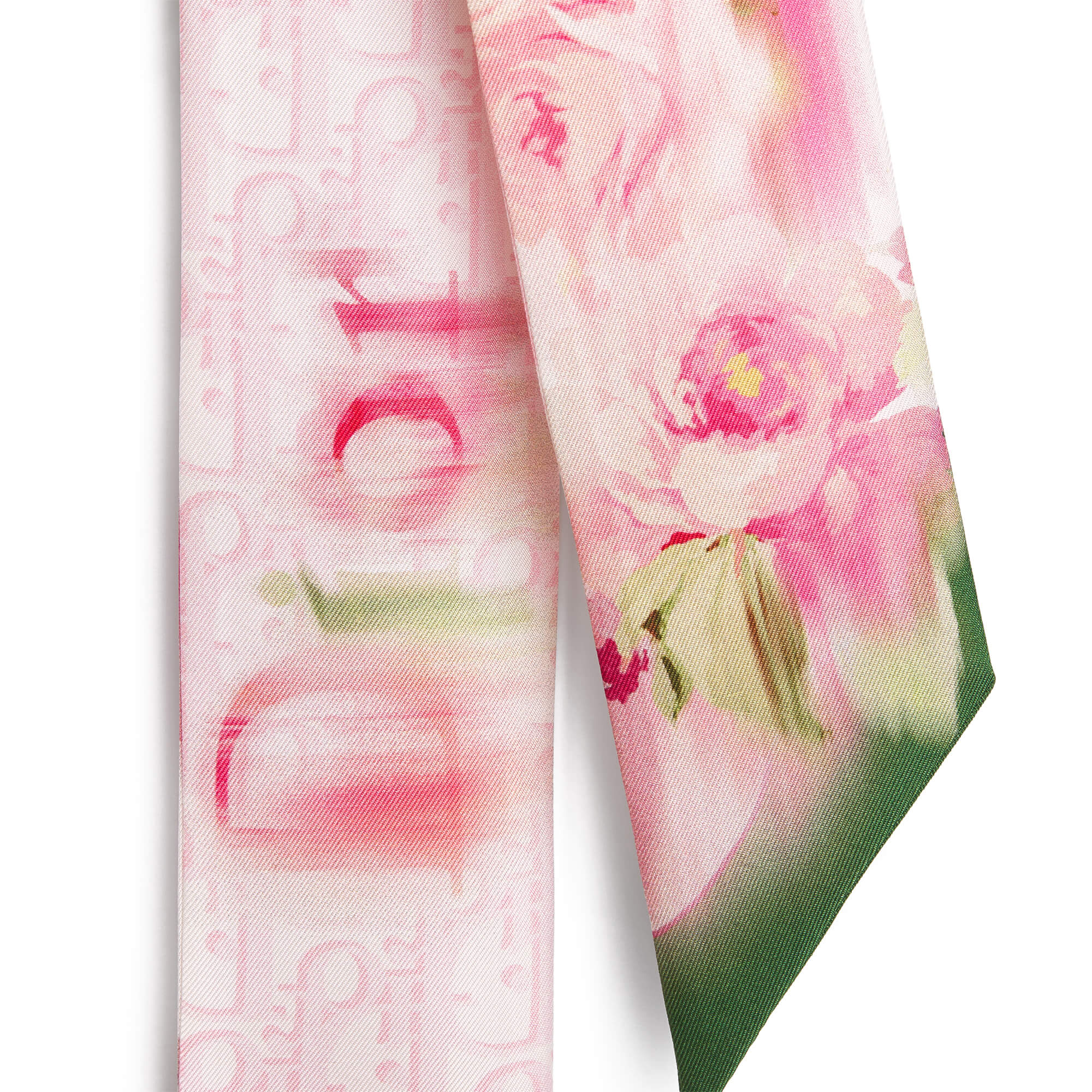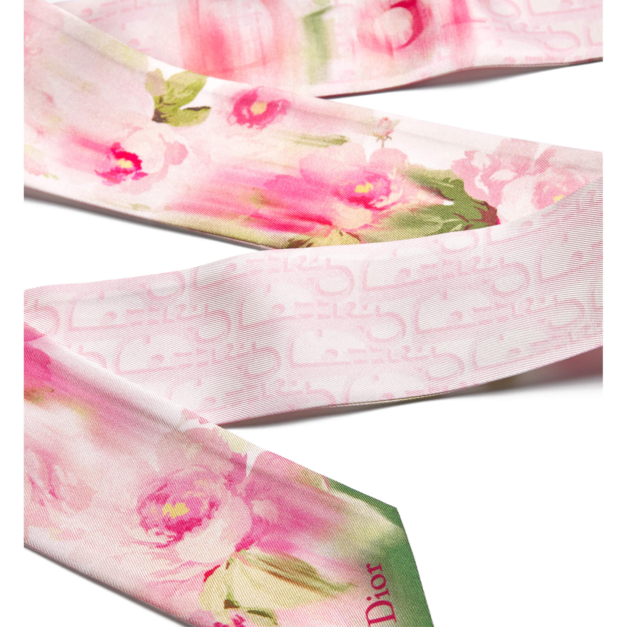 צעיף צר ממשי עם הדפס Dior Painted Roses בצבעי ורוד וירוק