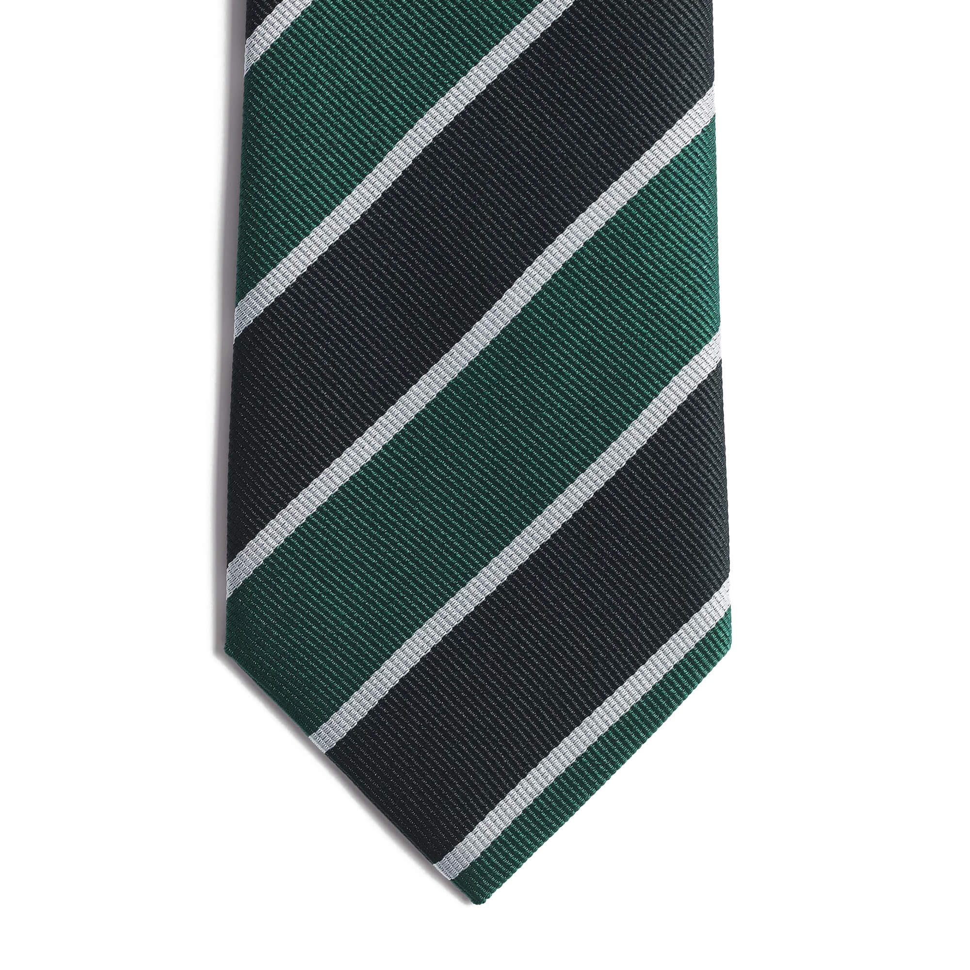 עניבה ממשי ז׳קארד שחור בעיטור פסים אלכסוניים בגווני ירוק ואפור בהיר