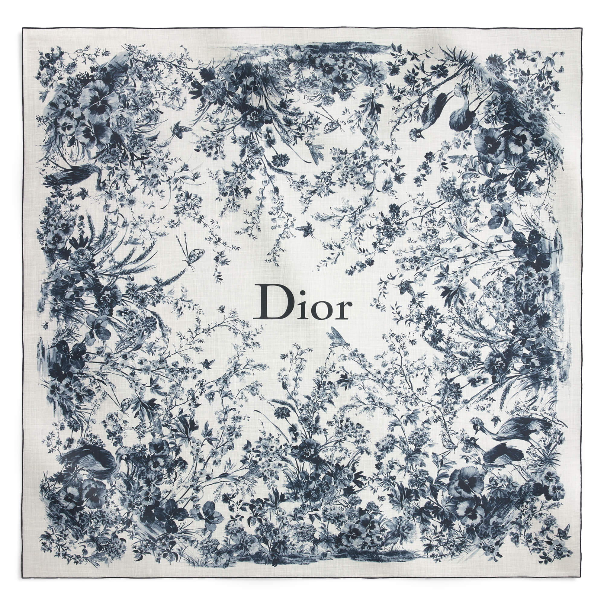 צעיף עם הדפס Toile de Jouy Floral Garden בצבע לבן וכחול נייבי