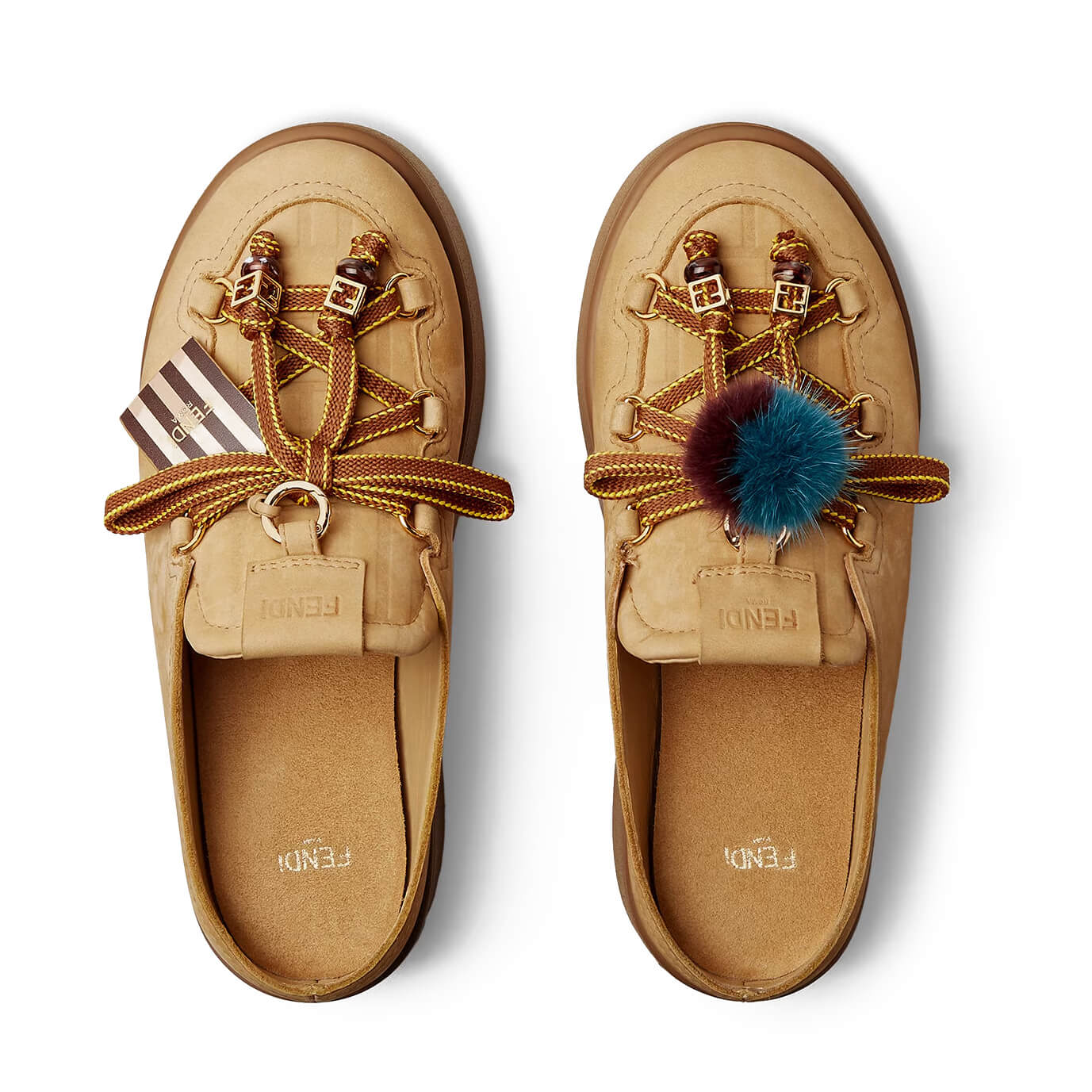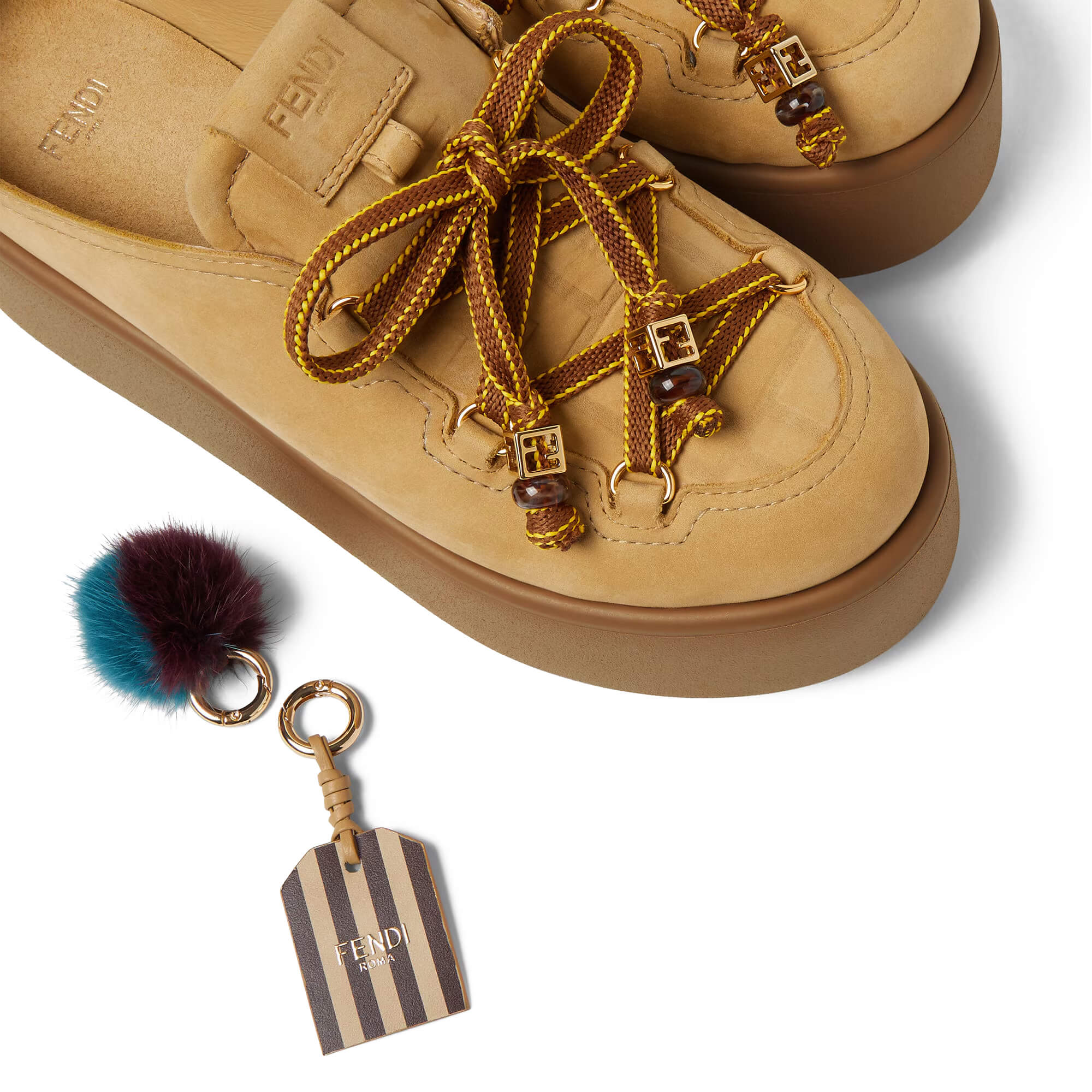 עשויים מעור nubuck עמיד למים בצבע חום בהיר, עם הטבעת FF בחלק הקדמי