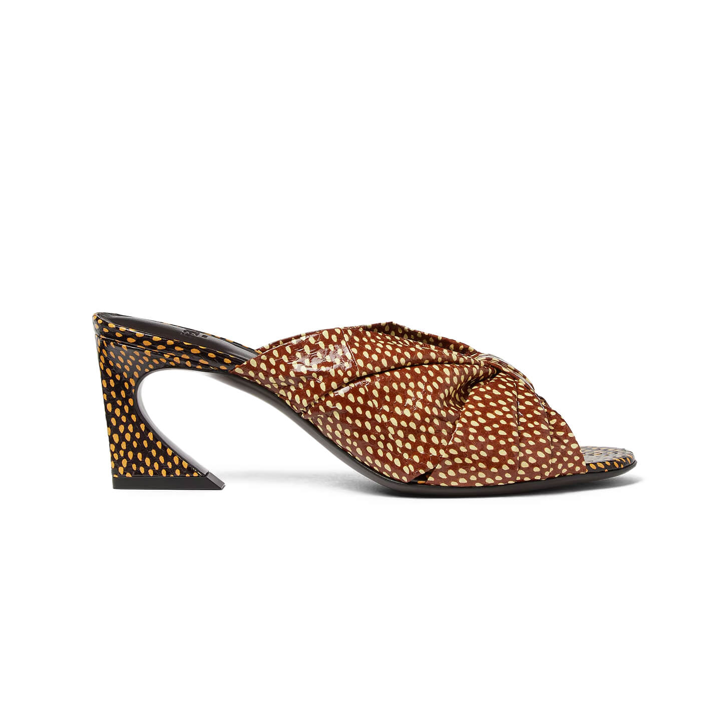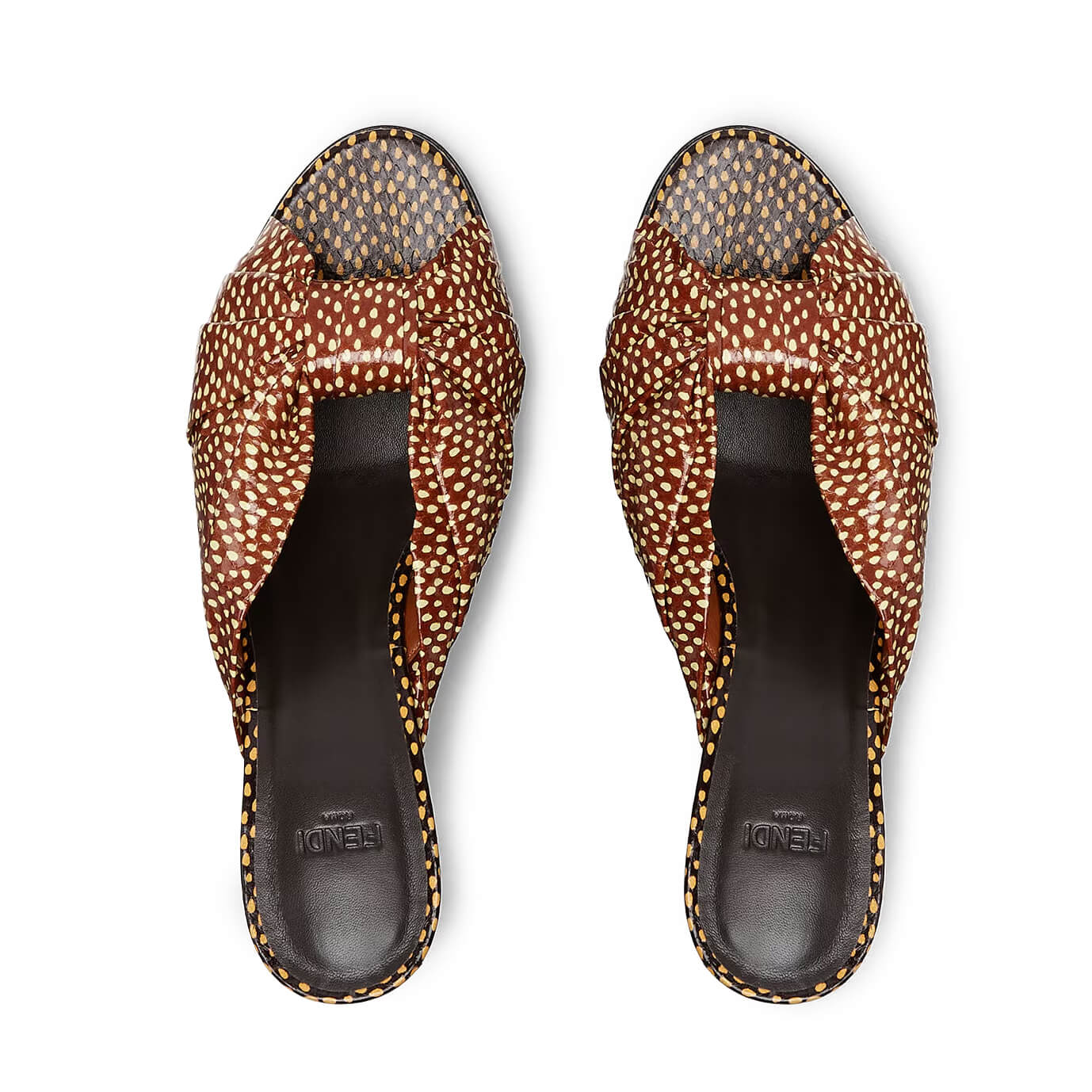 עשויים מעור calfskin מבריק בצבע חום עם הדפס Peppered Falena בלבן