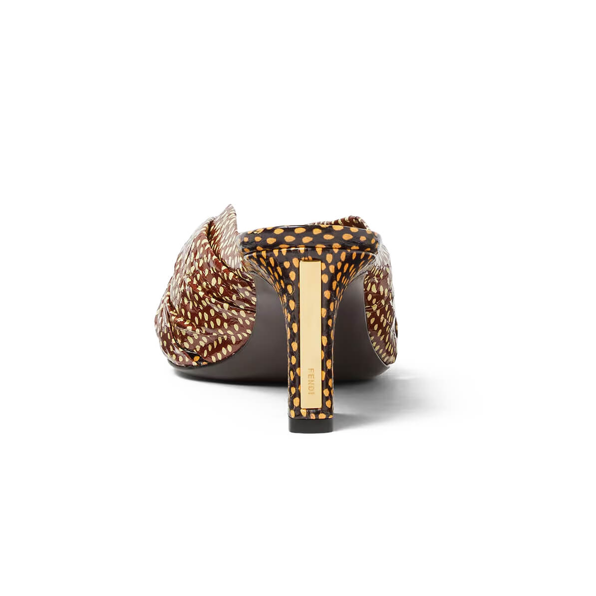 עקב גבוה מפוסל בצבע תואם עם תג מתכת בצבע זהב ועליו לוגו Fendi חרוט