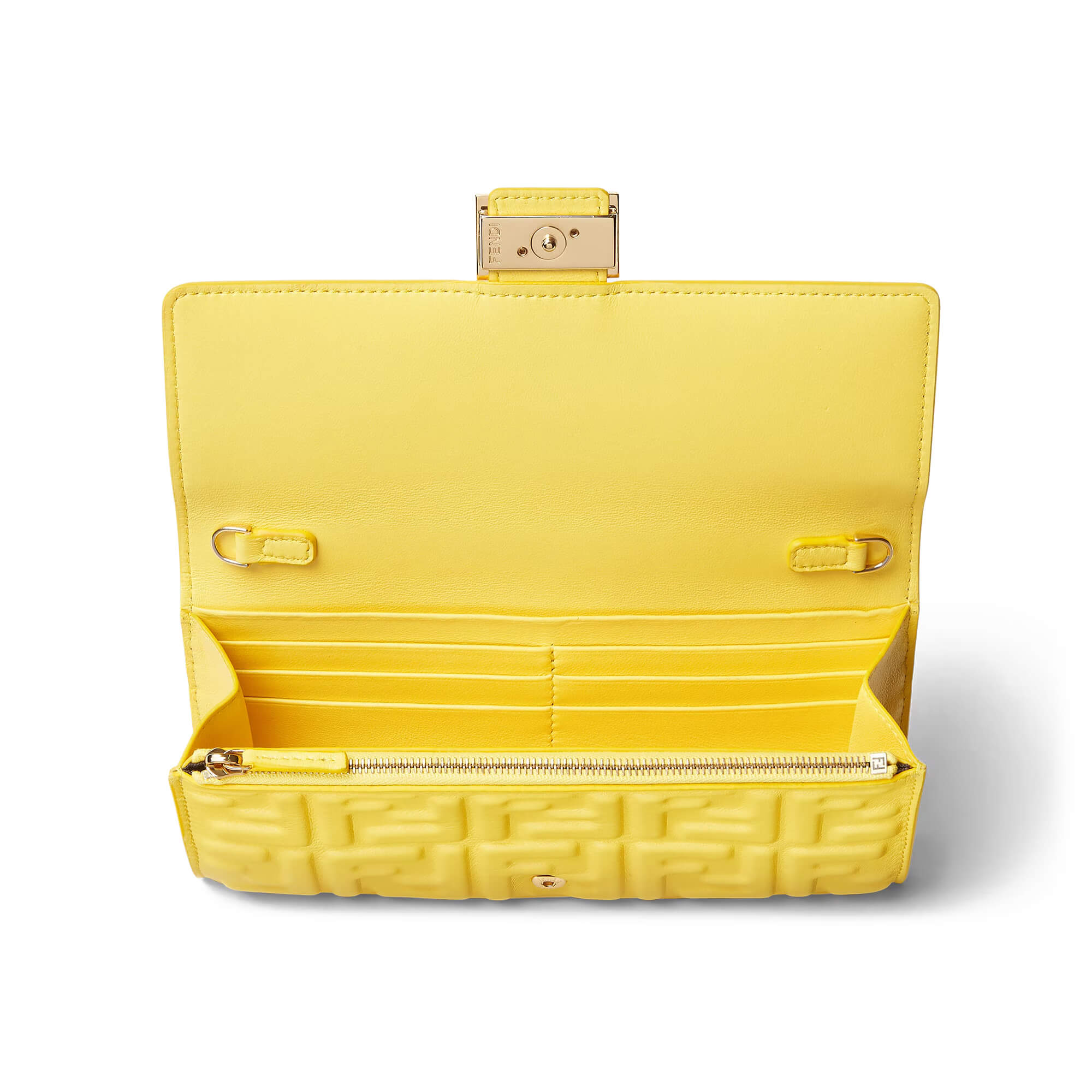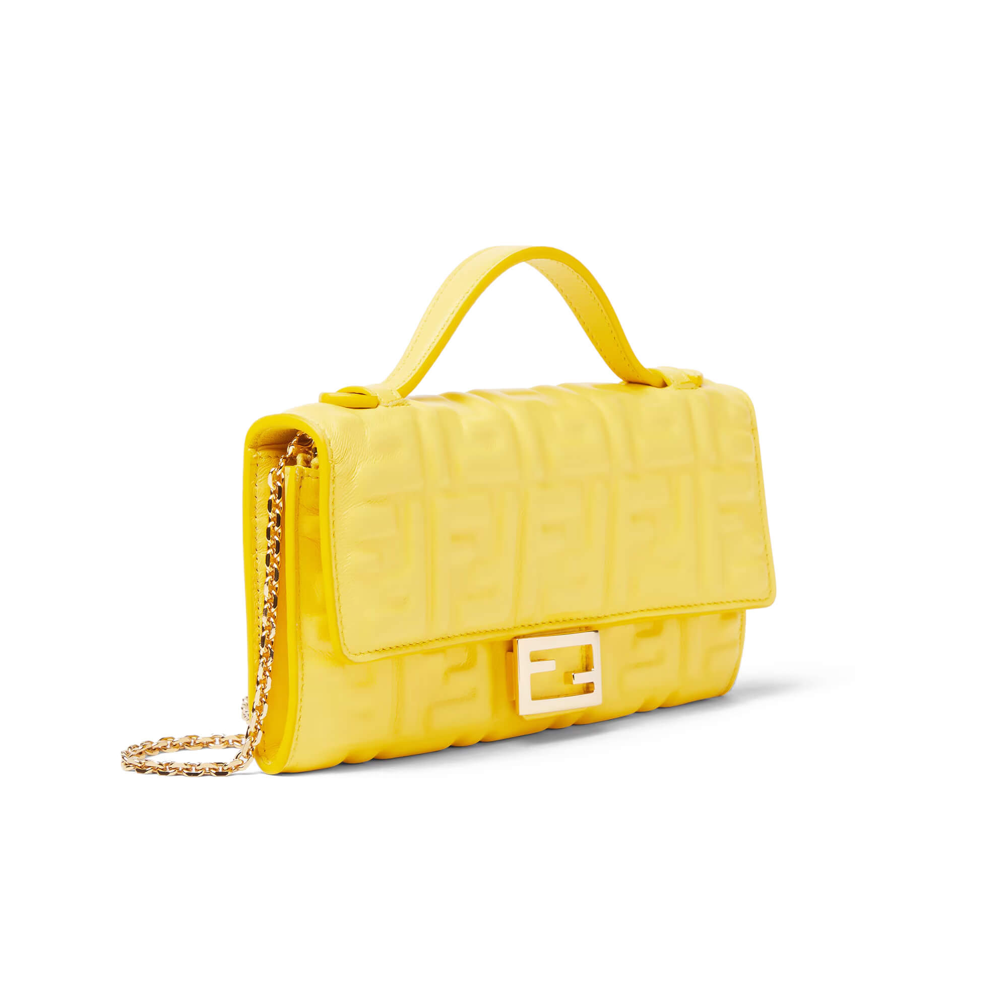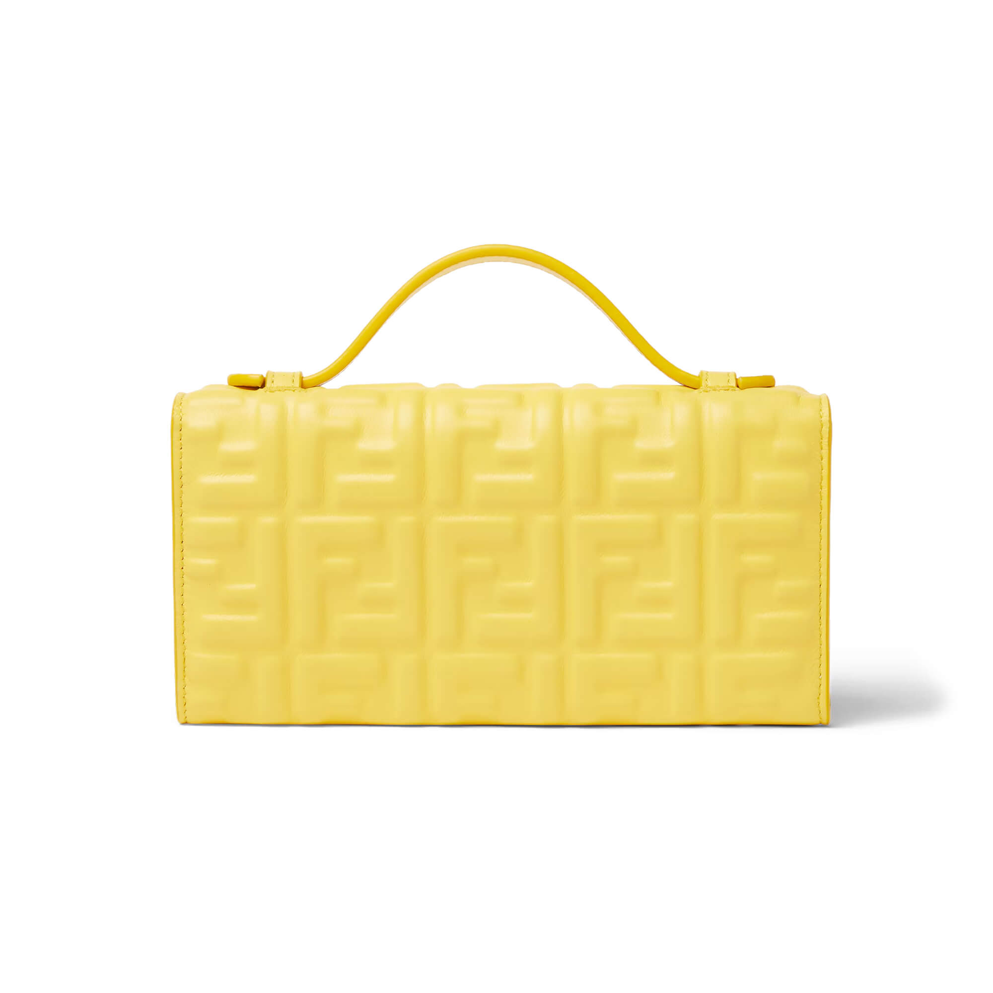 תיק קטן מעור נאפה רך בצבע צהוב עם דוגמת FF מובלטת
