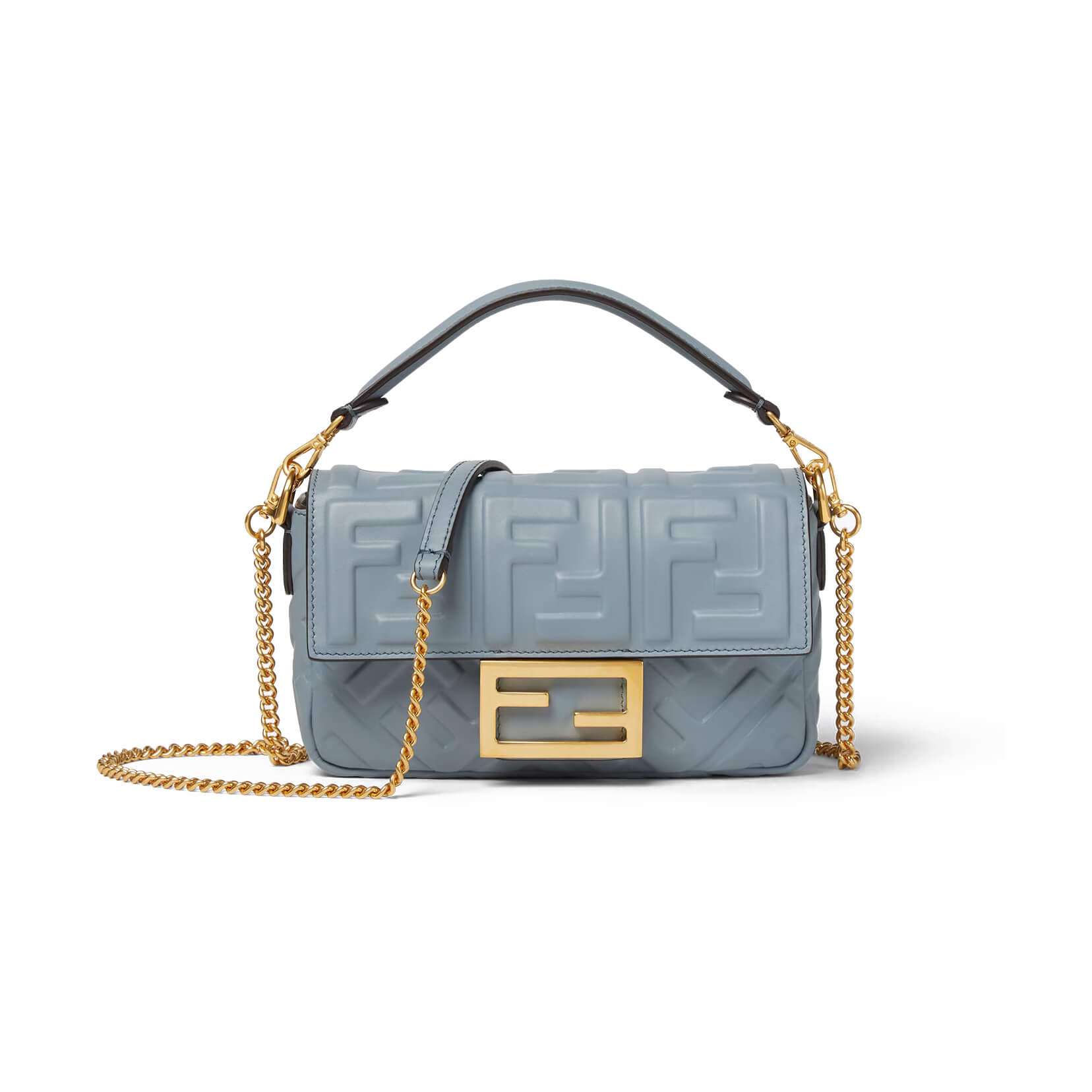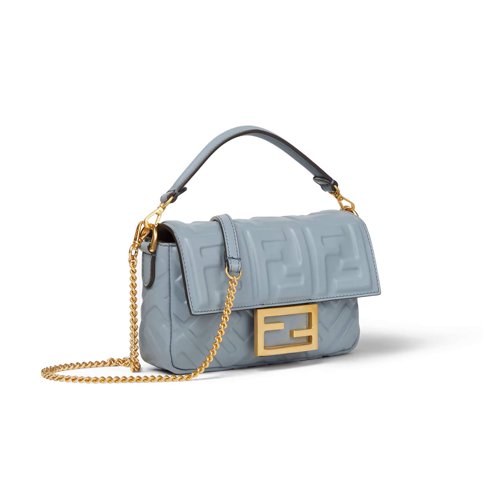 עשוי מעור calfskin בצבע תכלת עם דוגמת FF אייקונית מובלטת