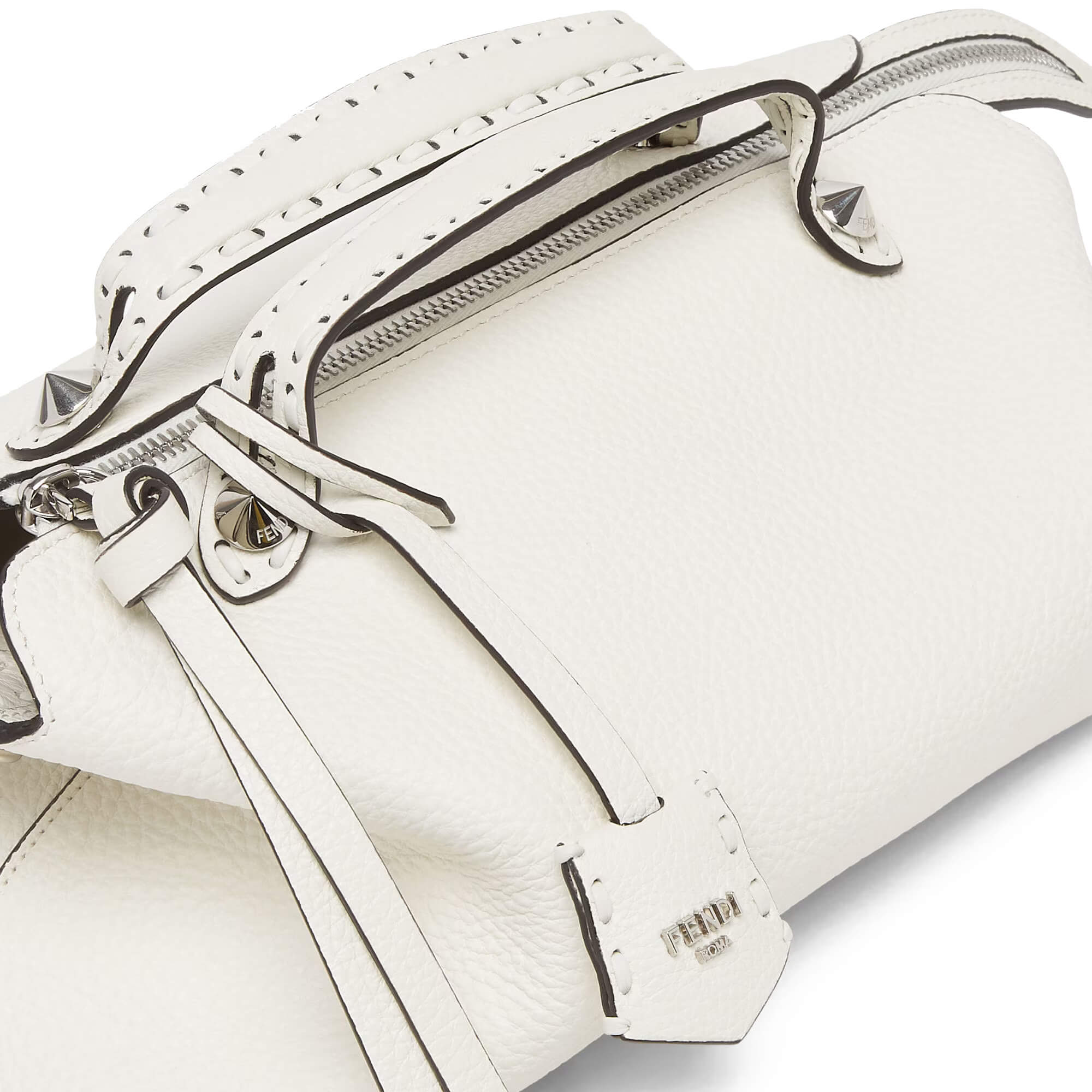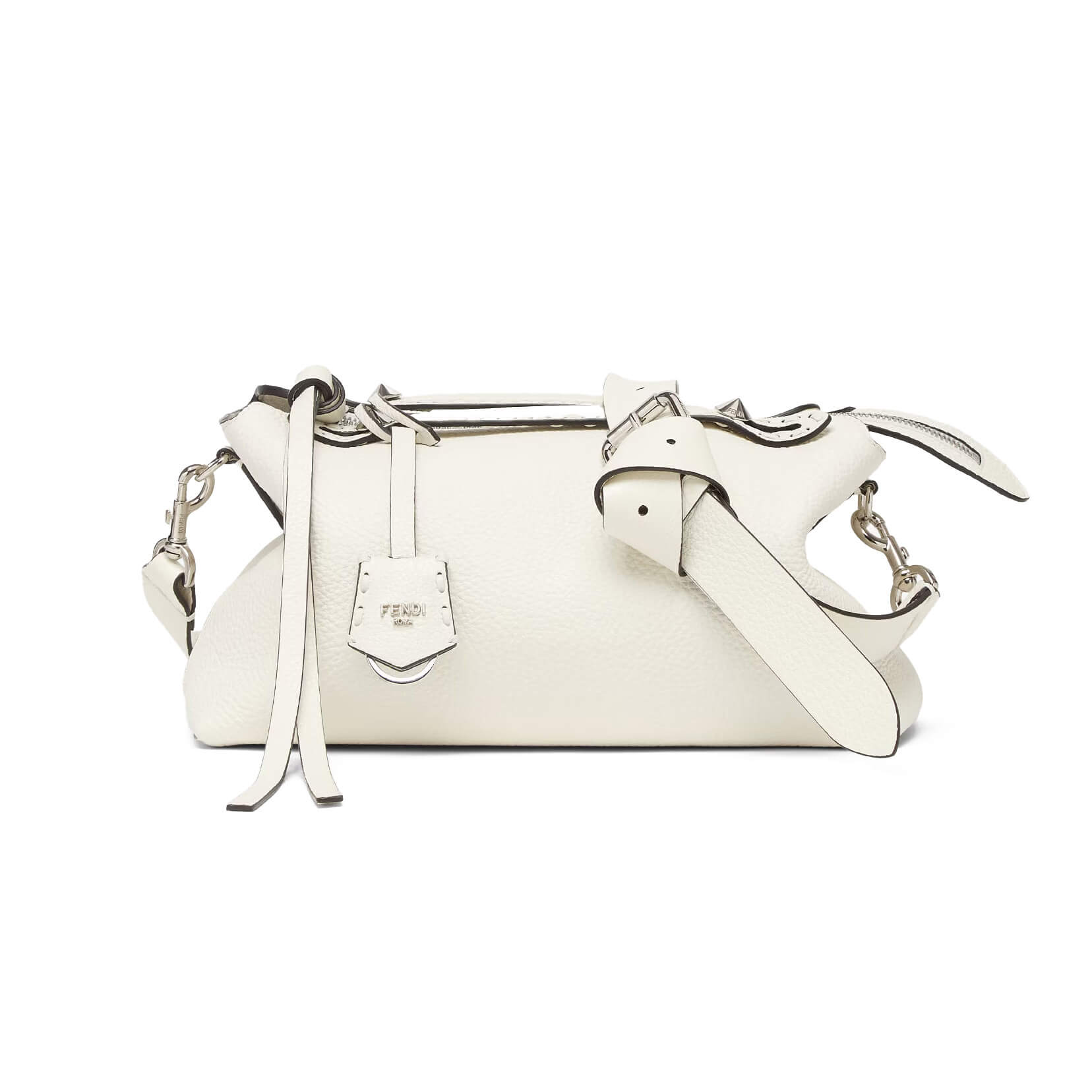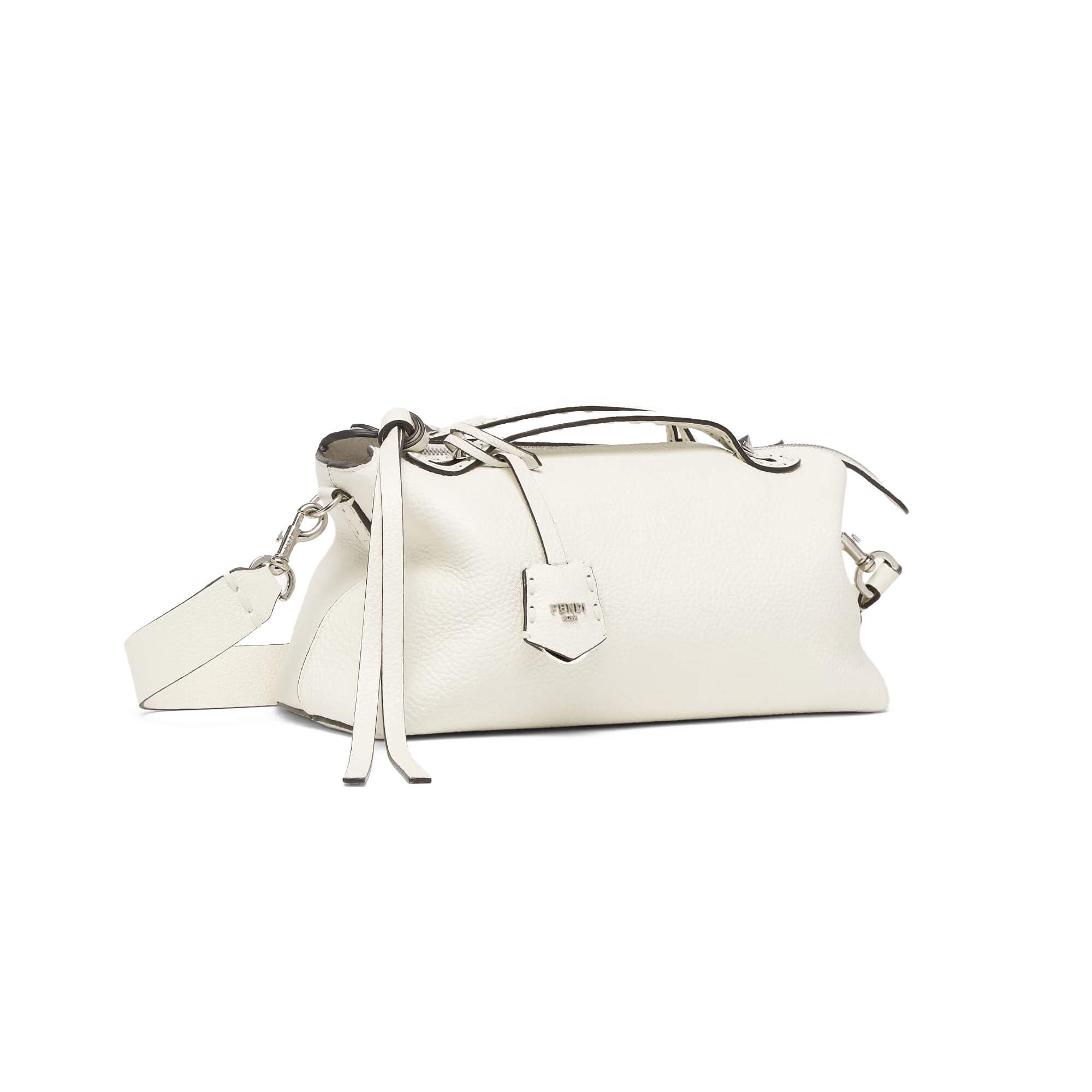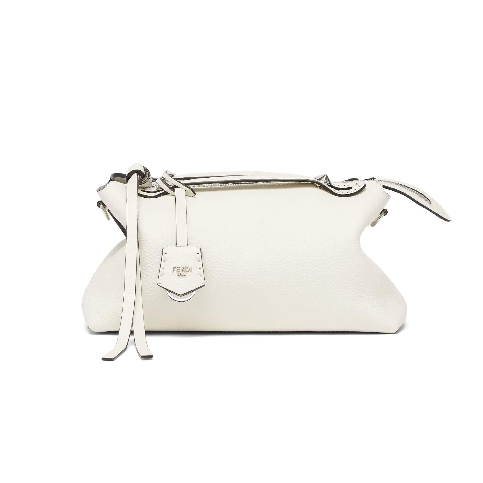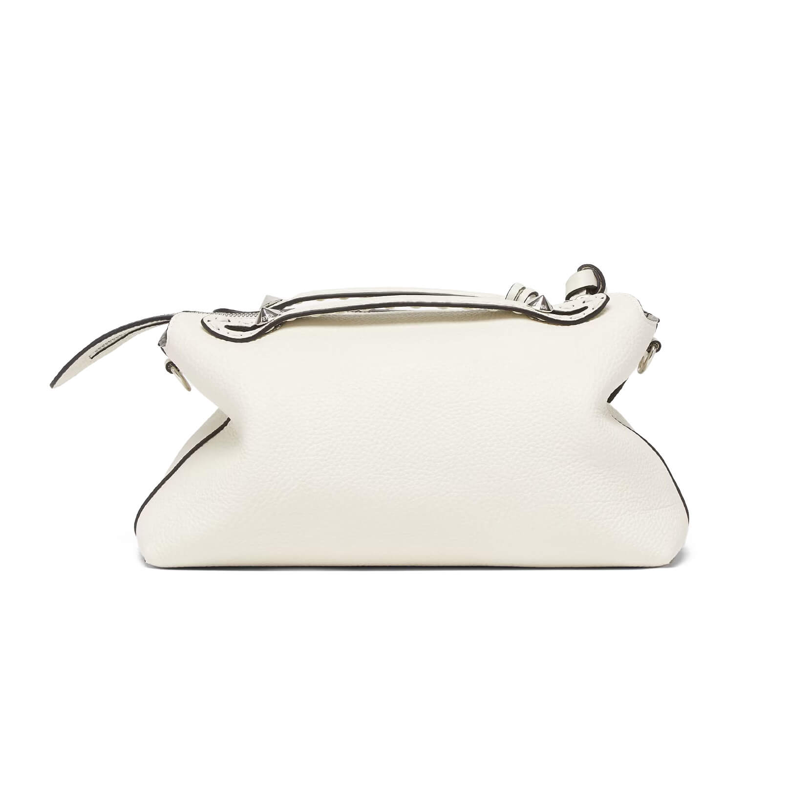 תיק בינוני מעור Cuoio Romano בצבע לבן, עור calfskin בעל מרקם טבעי