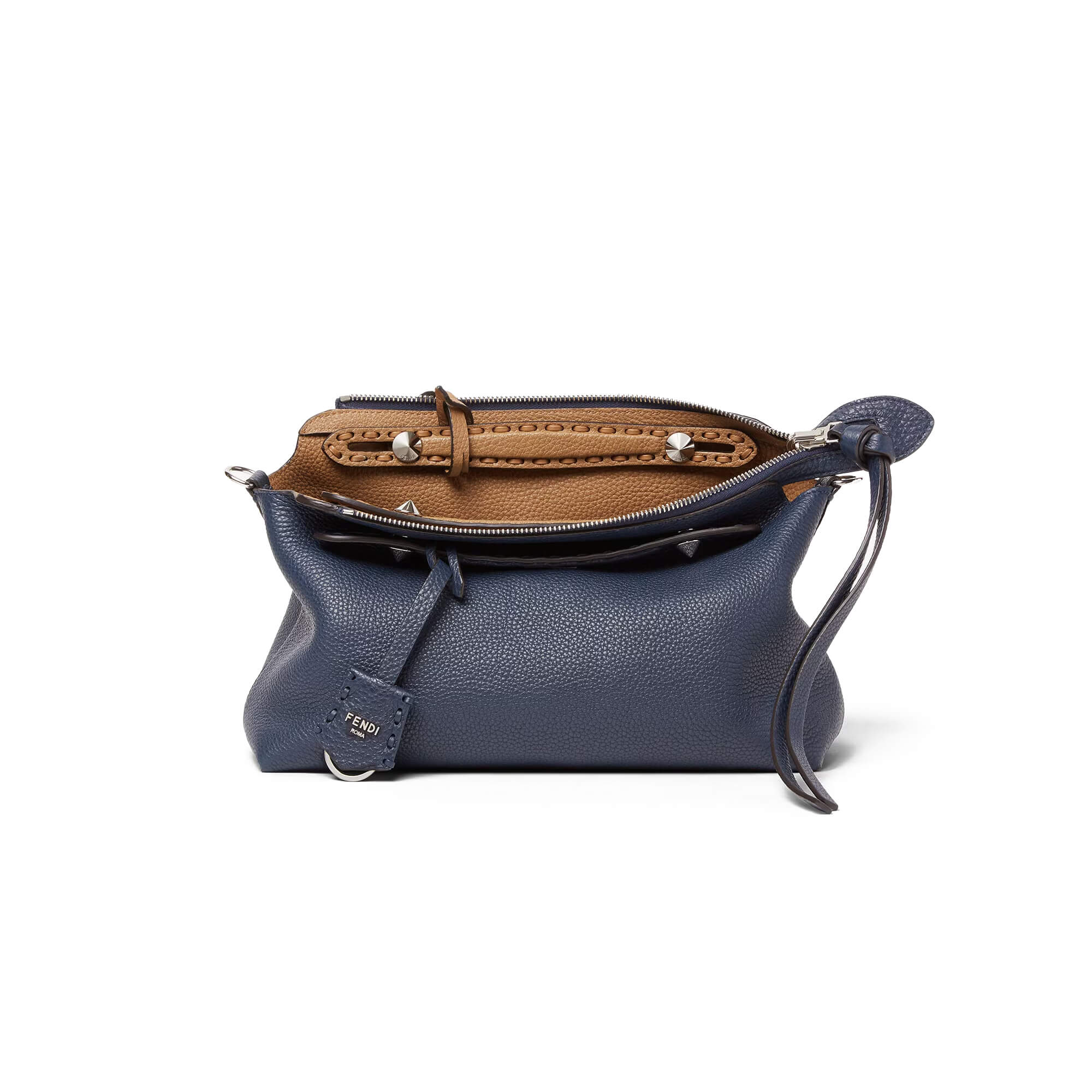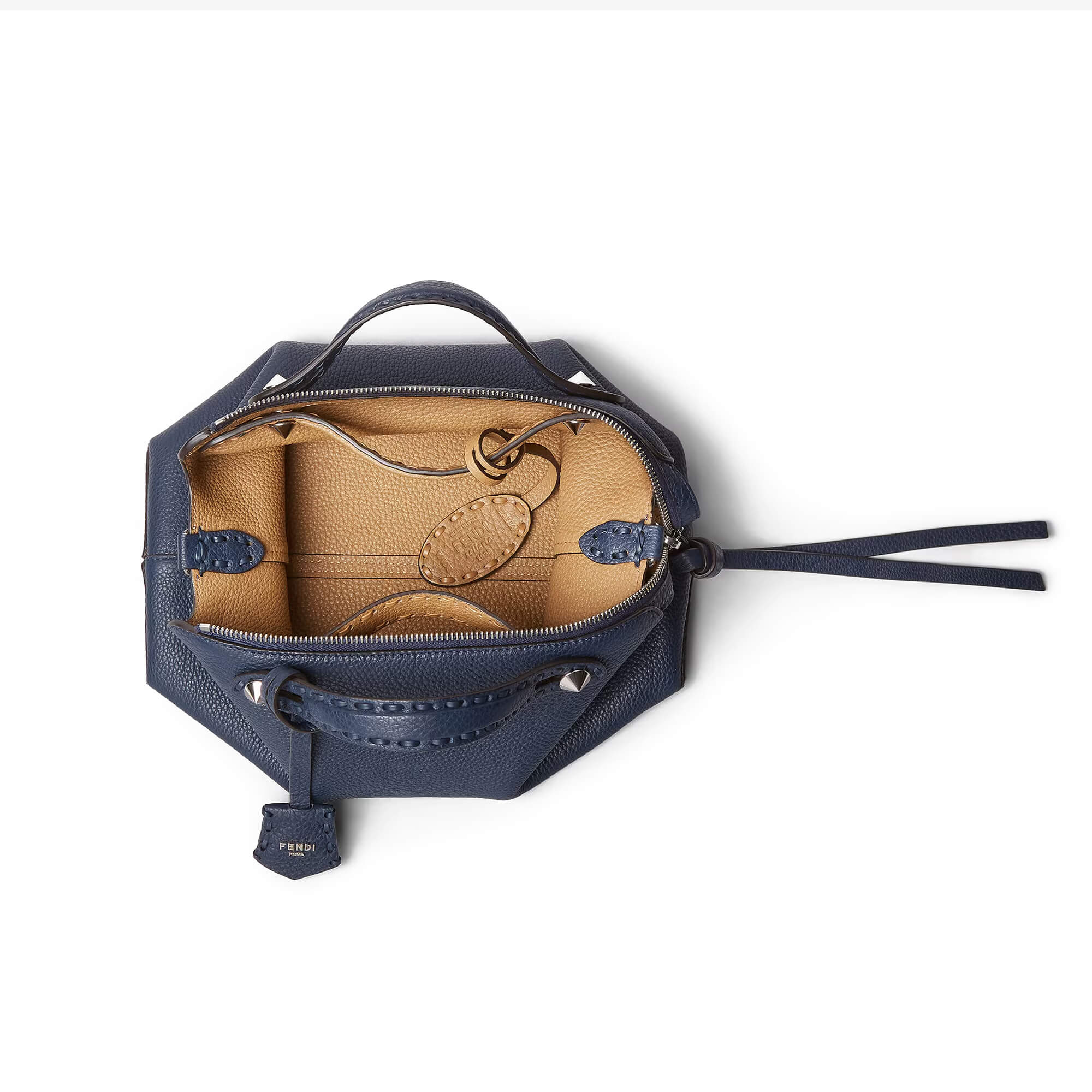 פתחי את הרוכסן עד הסוף והפכי בעדינות את התיק כלפי חוץ, החל מהפינות. ניתן להשאיר את שני הקישוטים בחוץ או להחליף ביניהם.