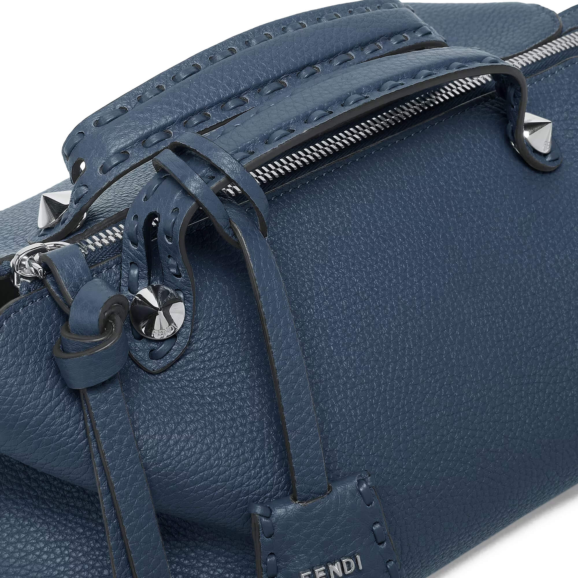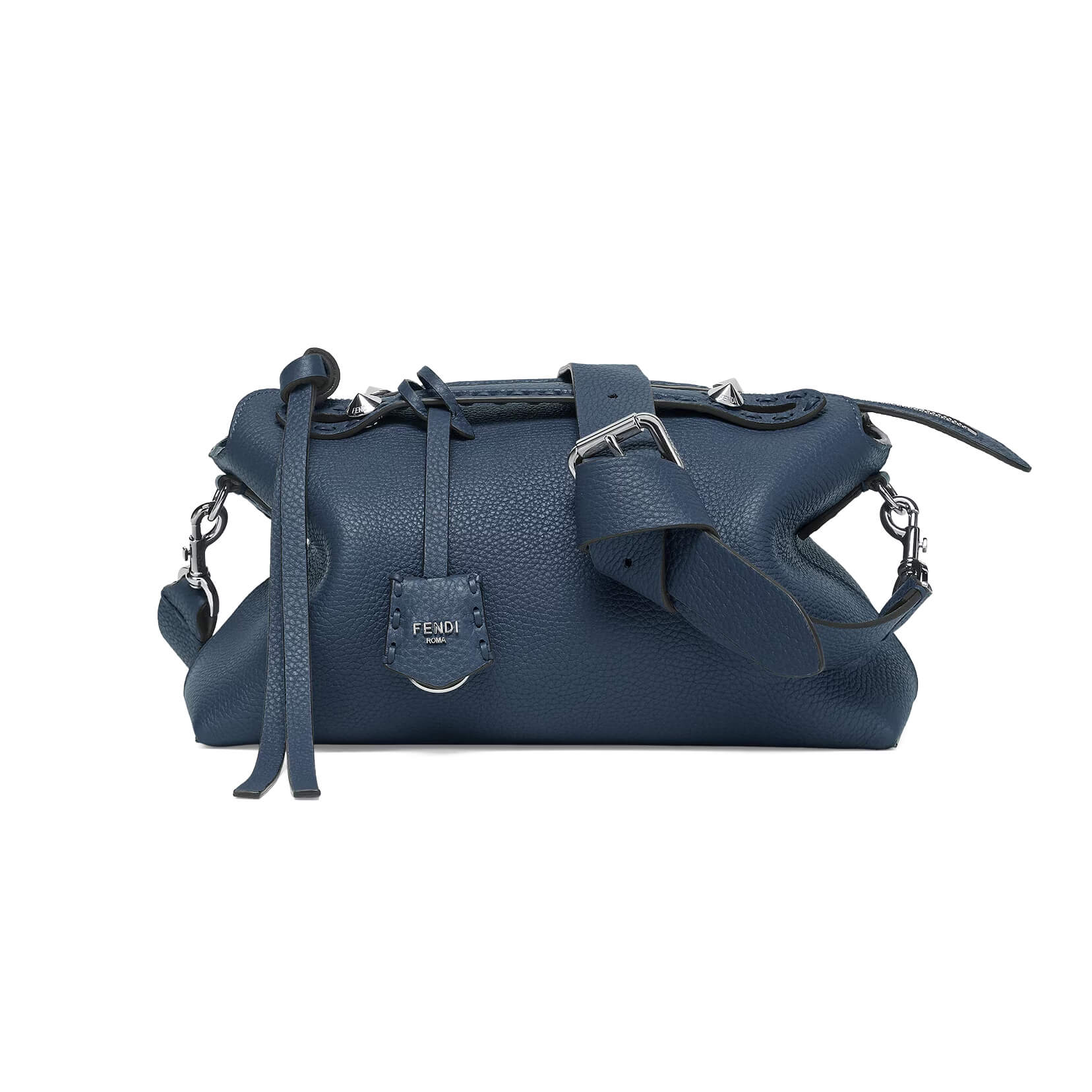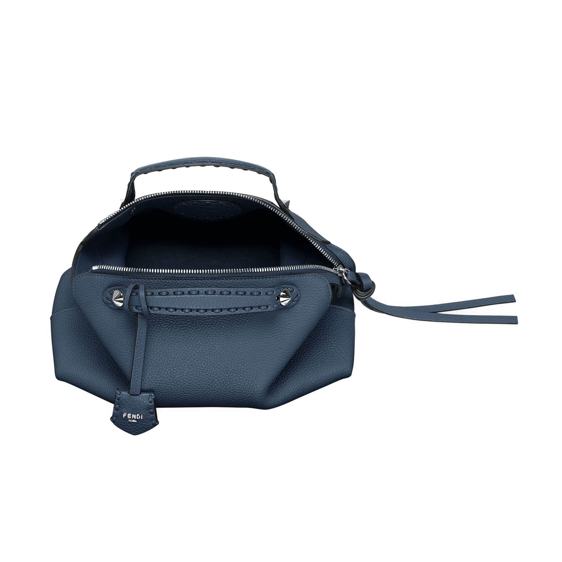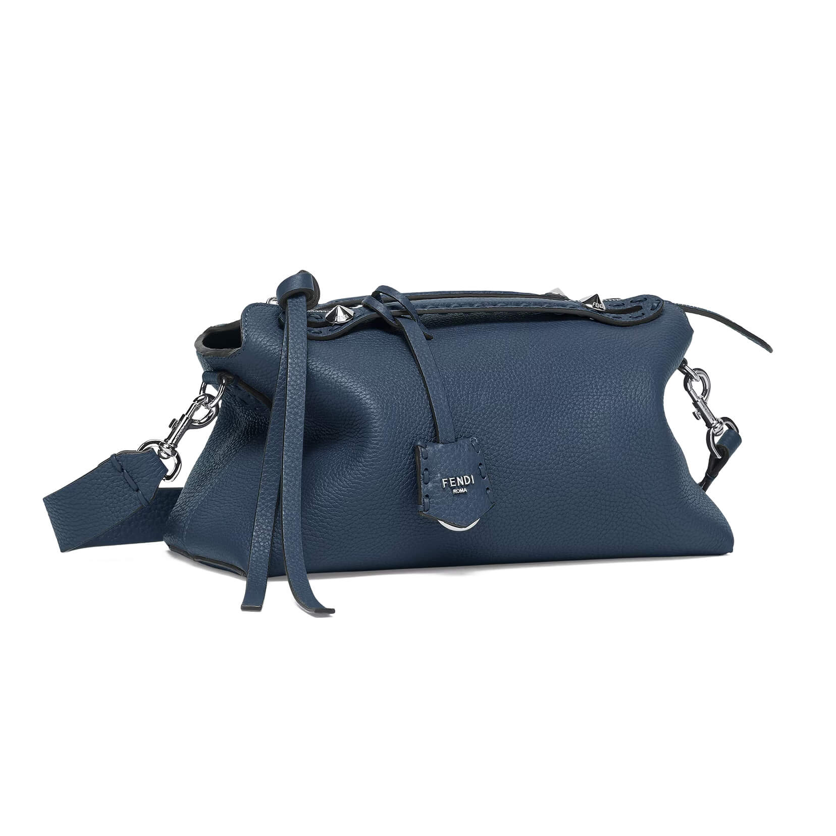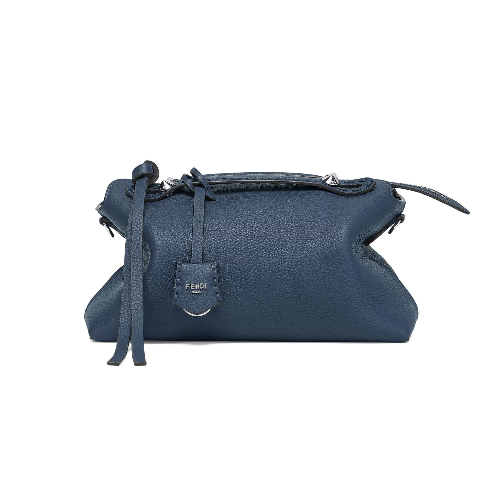 תיק בינוני מעור Cuoio Romano בצבע כחול כהה, עור calfskin בעל מרקם טבעי