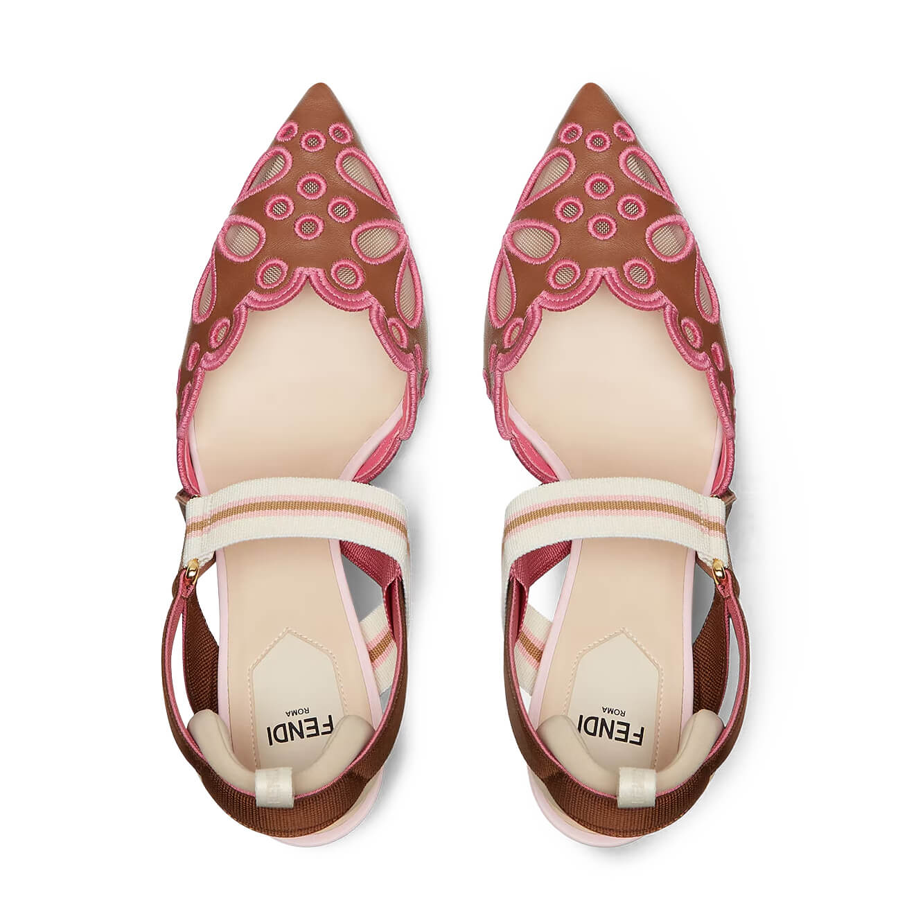 עשויות מעור nappa בצבע חום עם רקמה מחוררת
