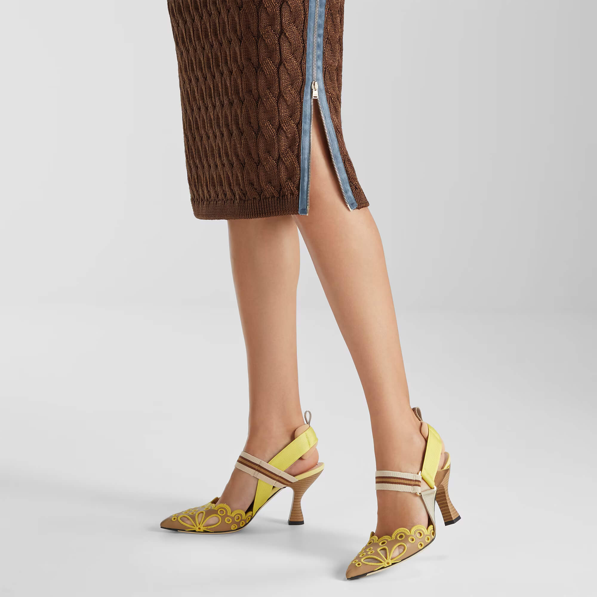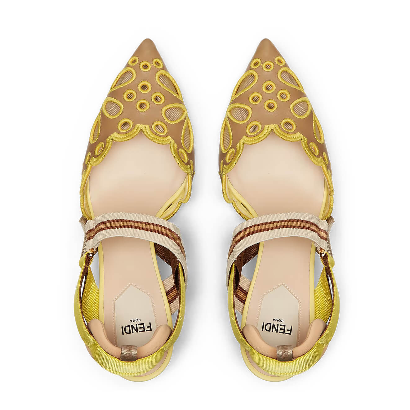 עשויות מעור nappa בצבע חום בהיר עם רקמה מחוררת