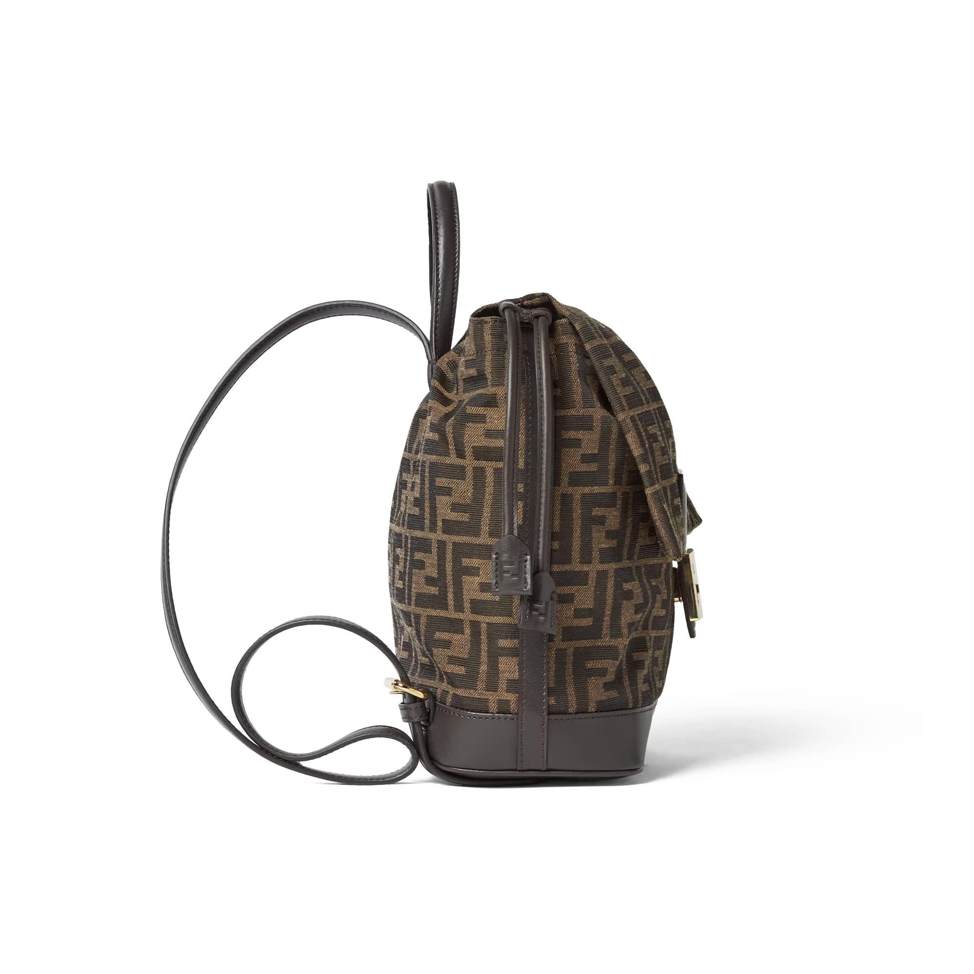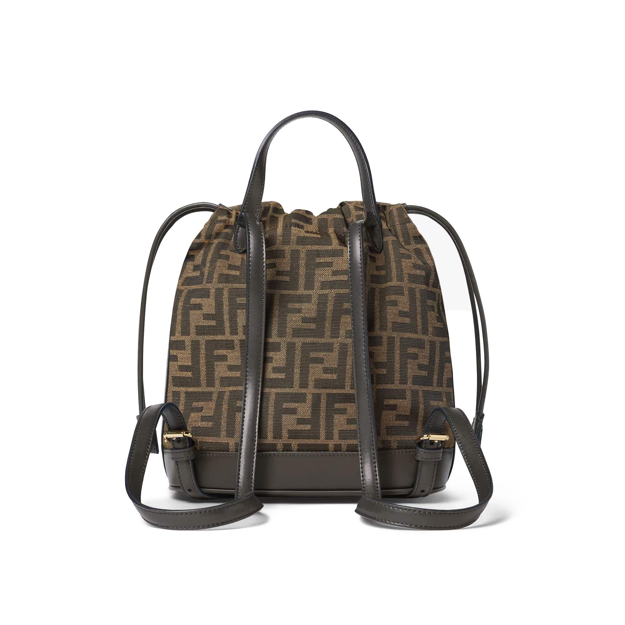 תיק גב מאריג ז’קארד בגווני חום ועור calfskin בצבע חום כהה