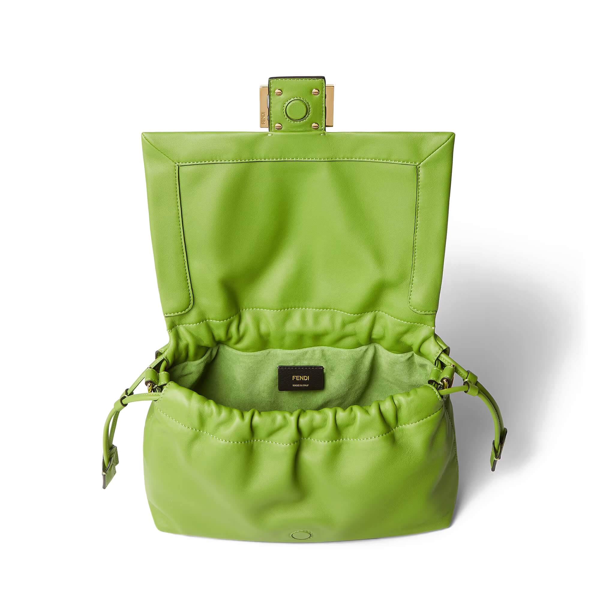 עשוי מעור נאפה רך בצבע ירוק, עם סוגר FF ושיבוץ עור
