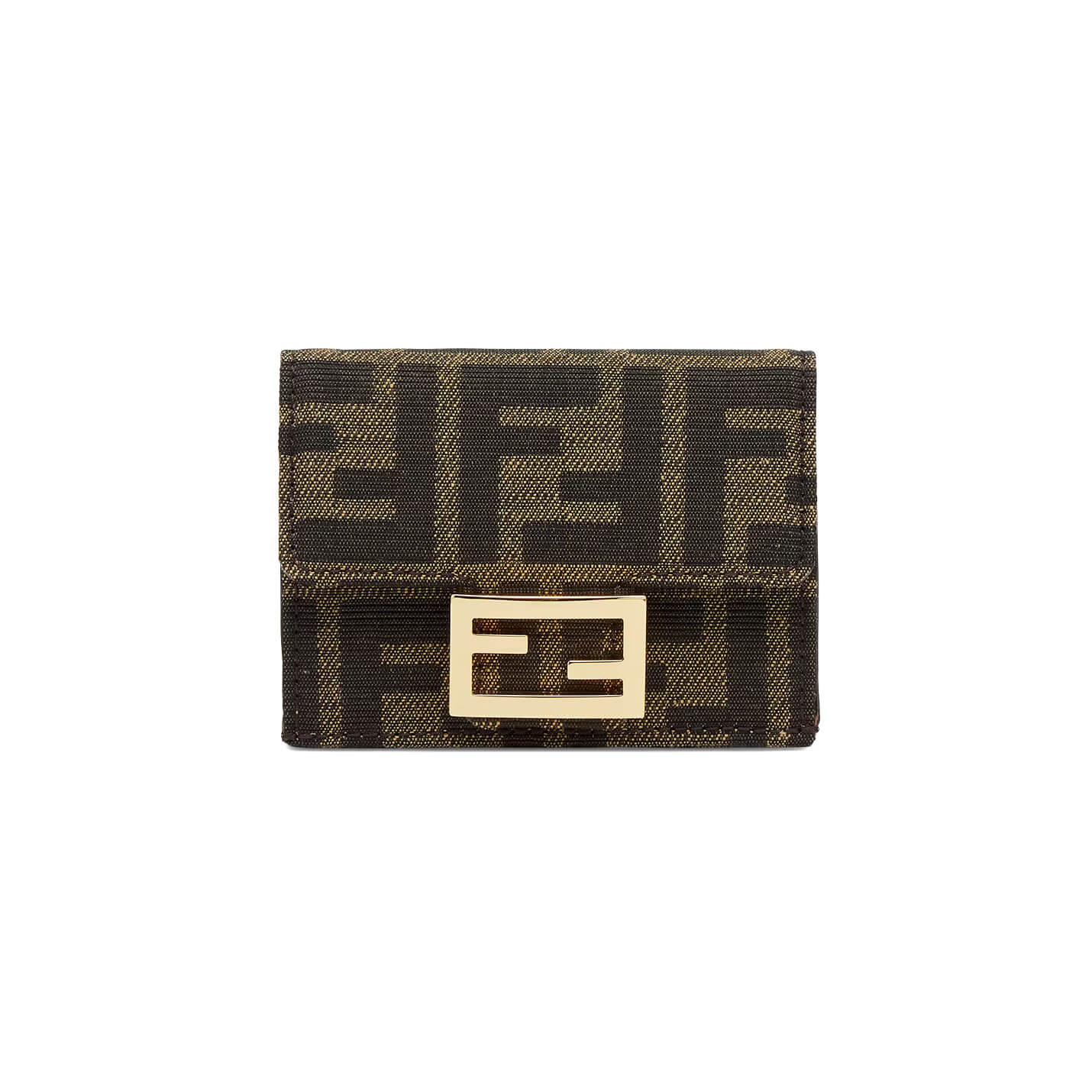 ארנק מבד בדוגמת FF ג׳קארד בצבע חום