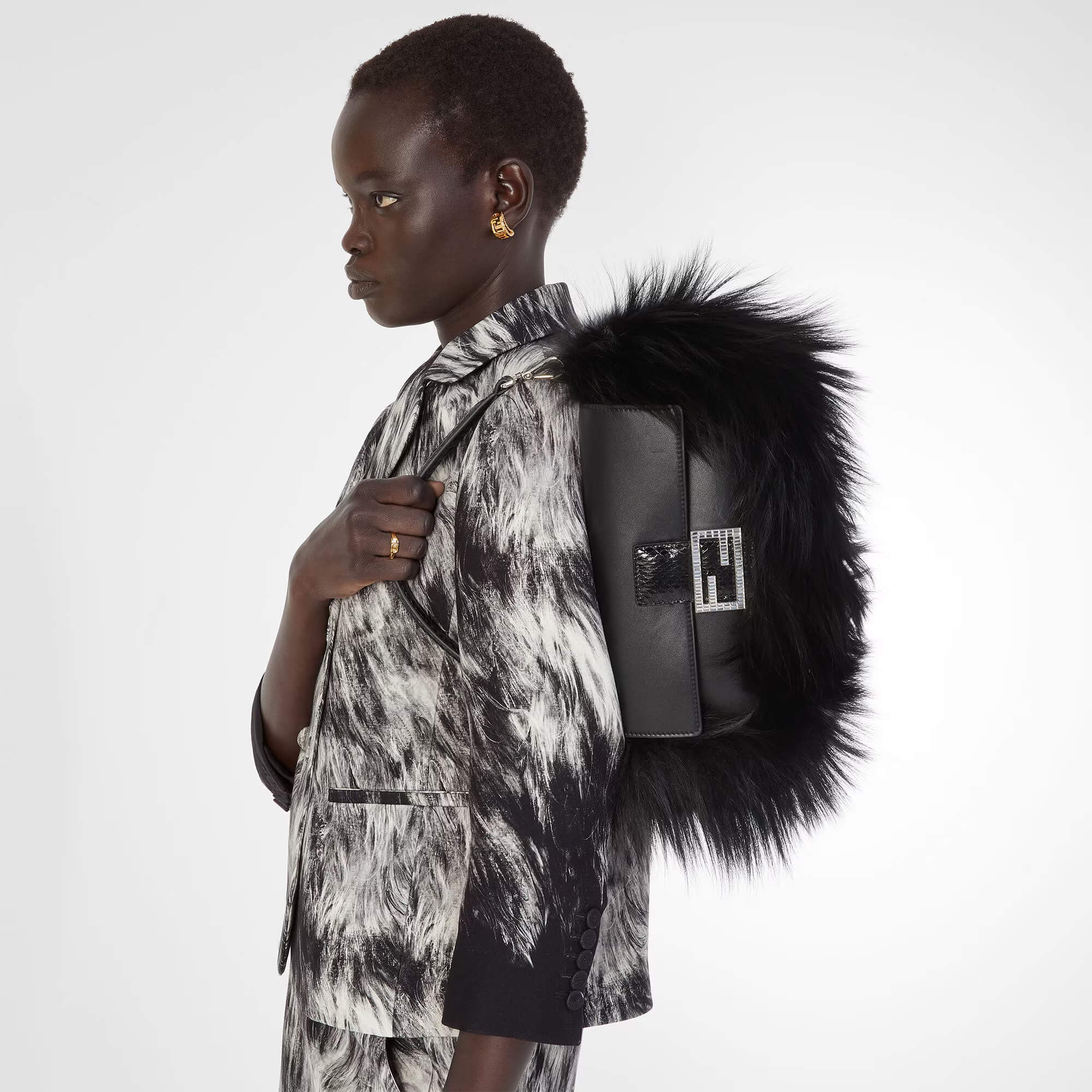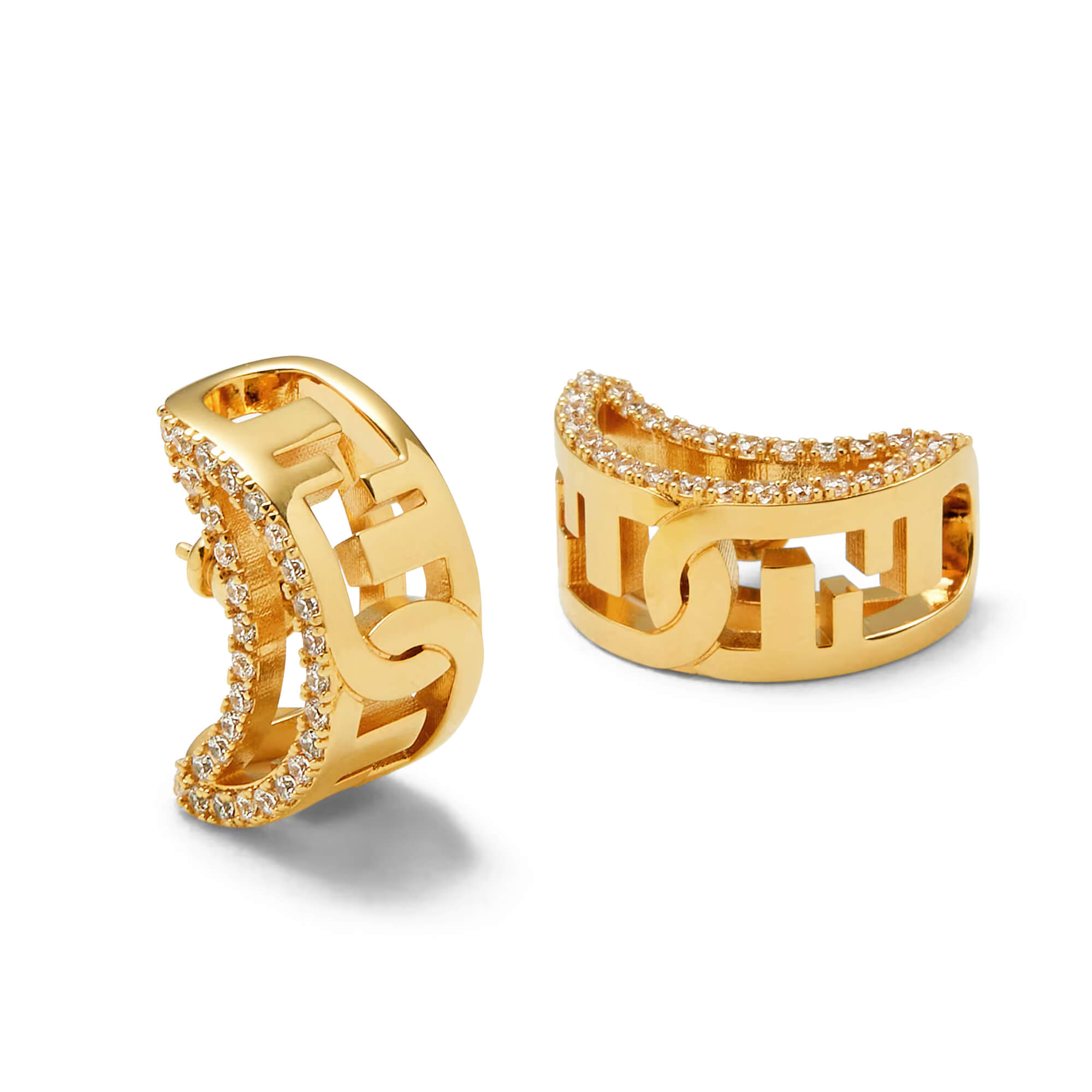 עגילים בצורת סהר עם מוטיב Fendi O’Lock משולב
