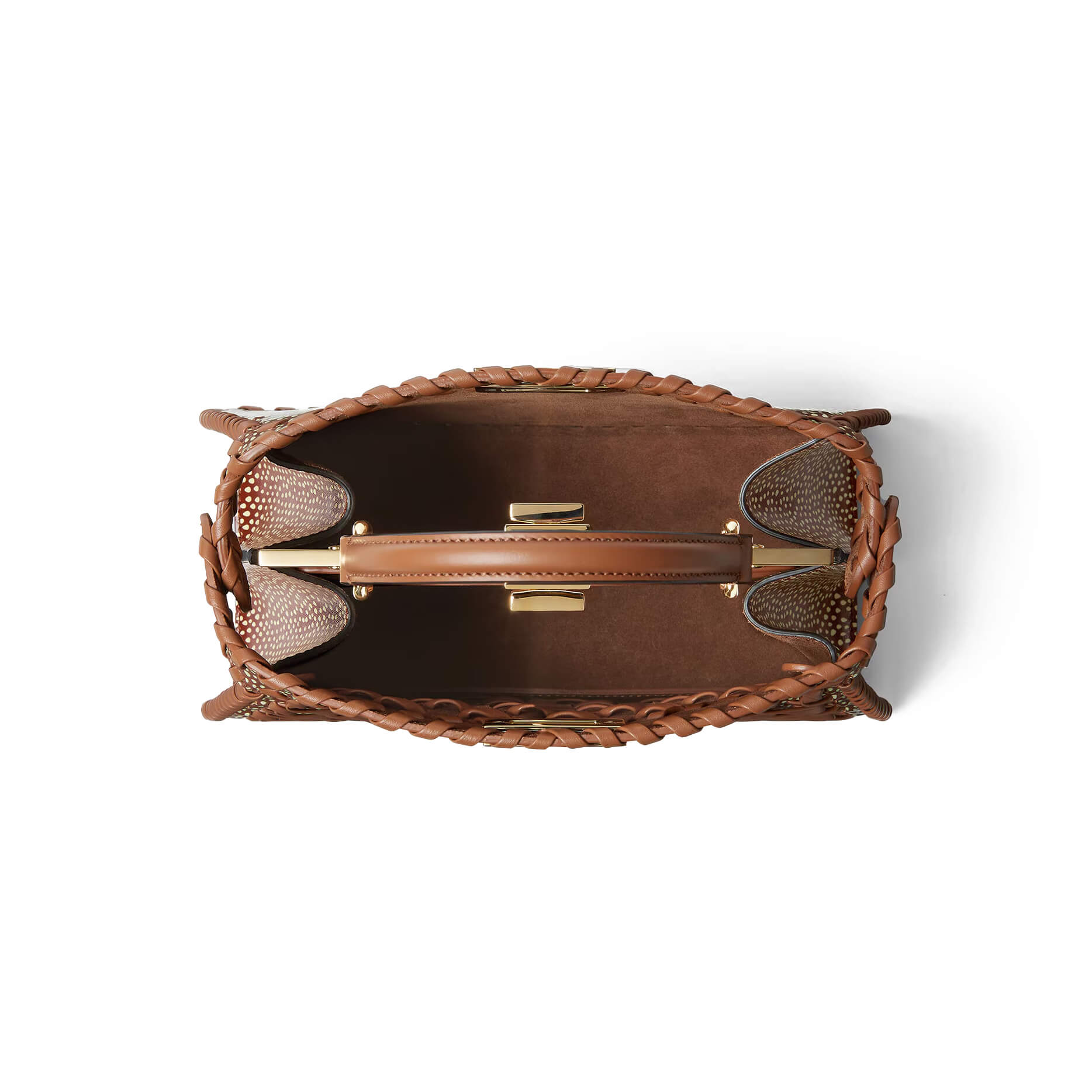 עשוי מעור calfskin בצבע חום עם הדפס Peppered Falena בלבן
