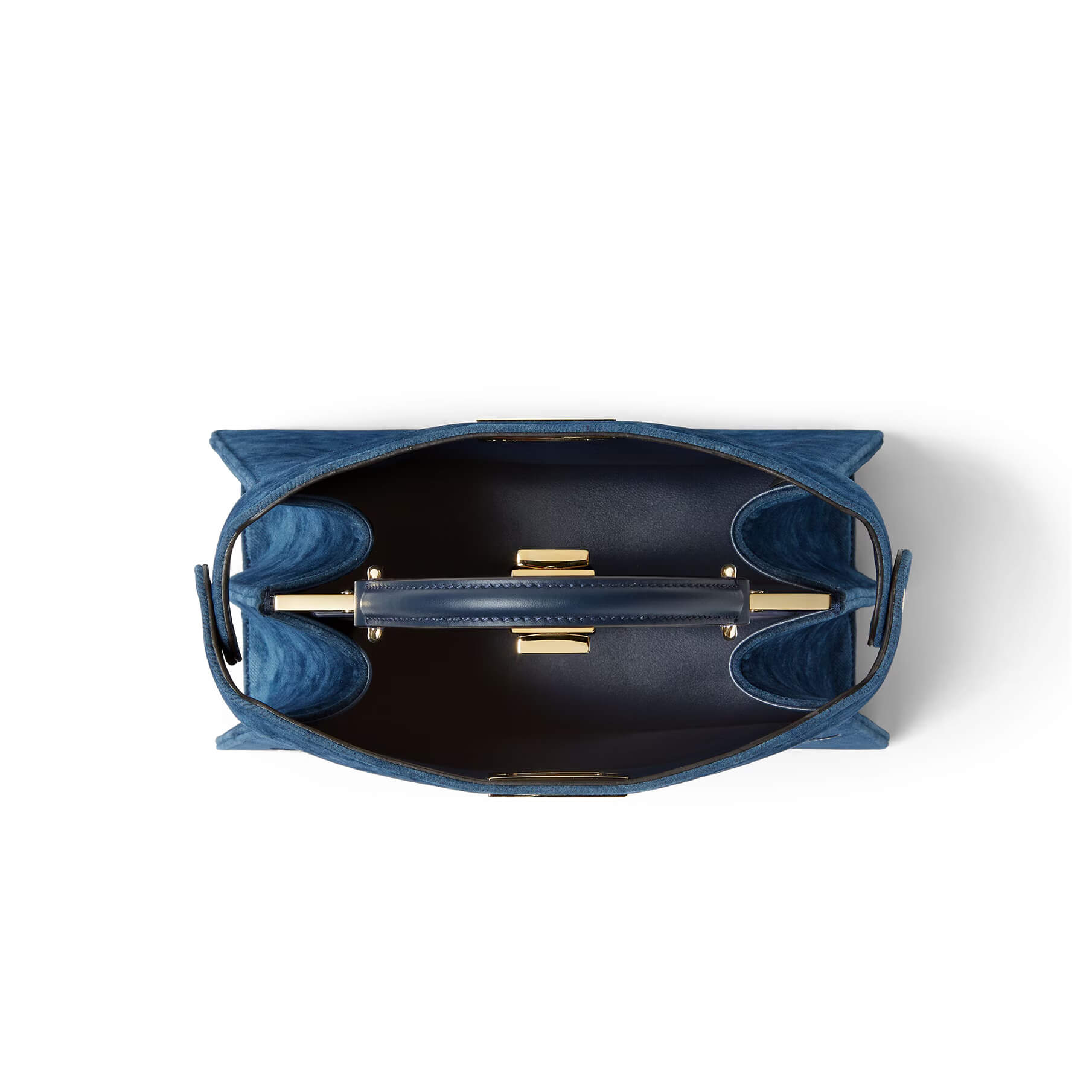 פנים התיק מעור נאפה רך בצבע כחול כהה