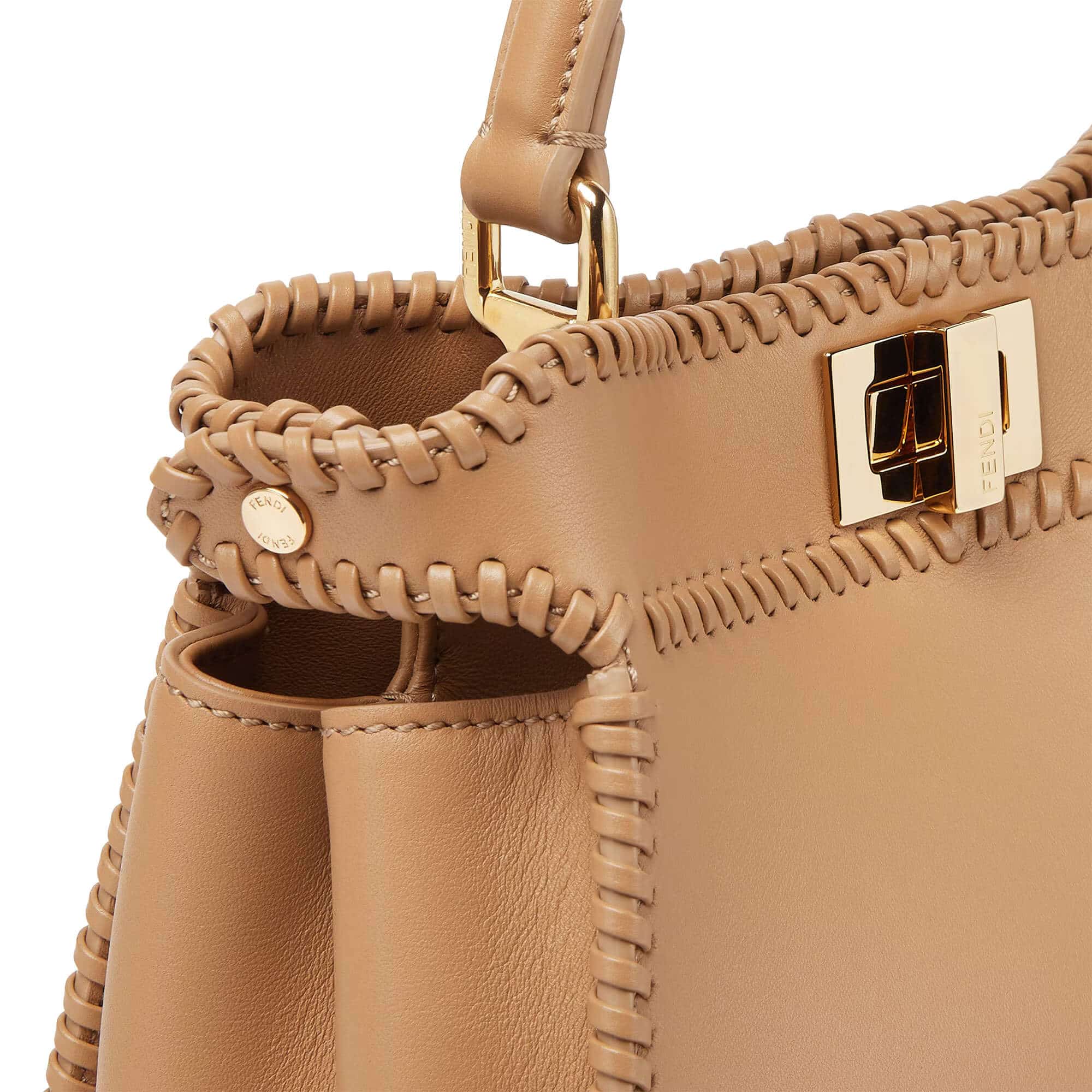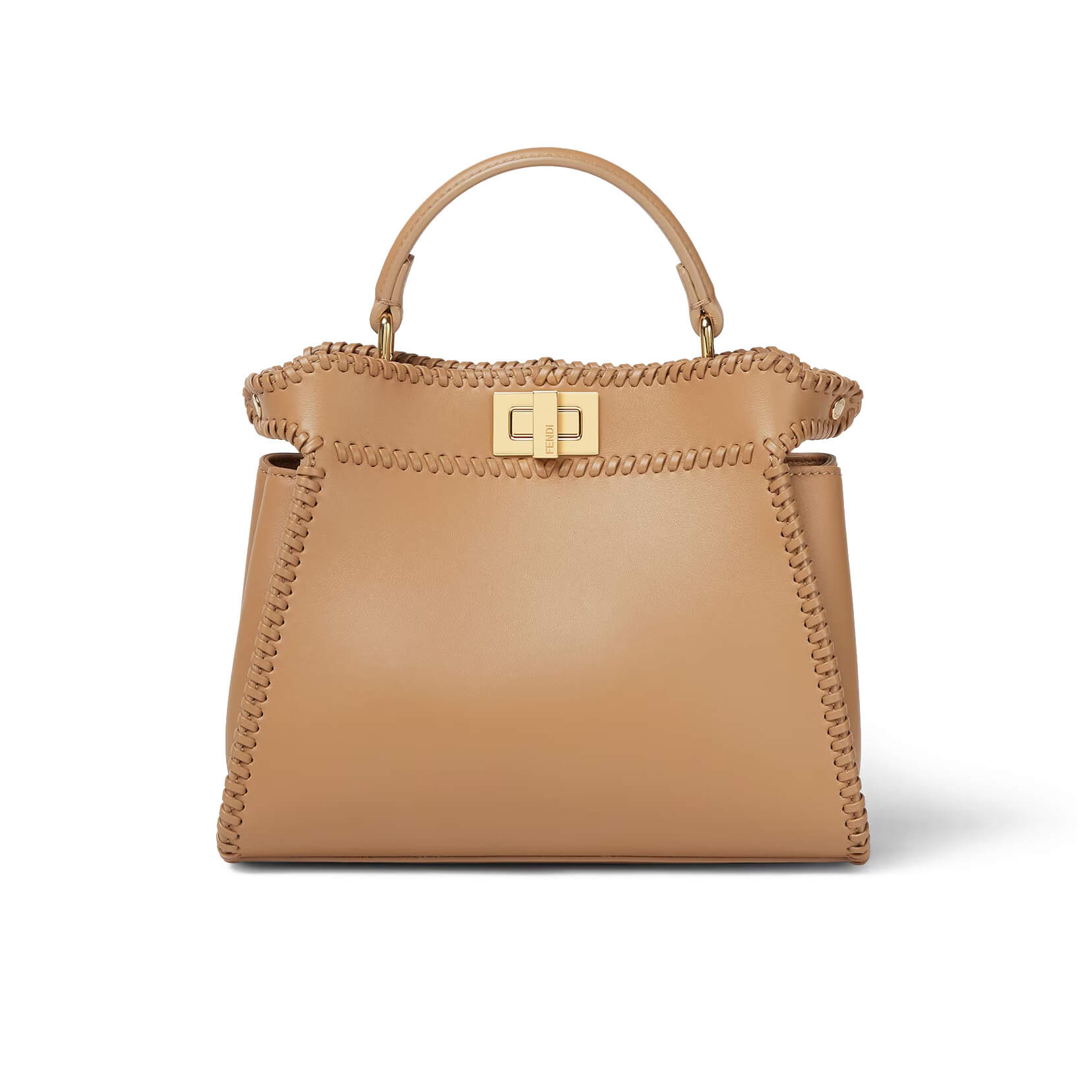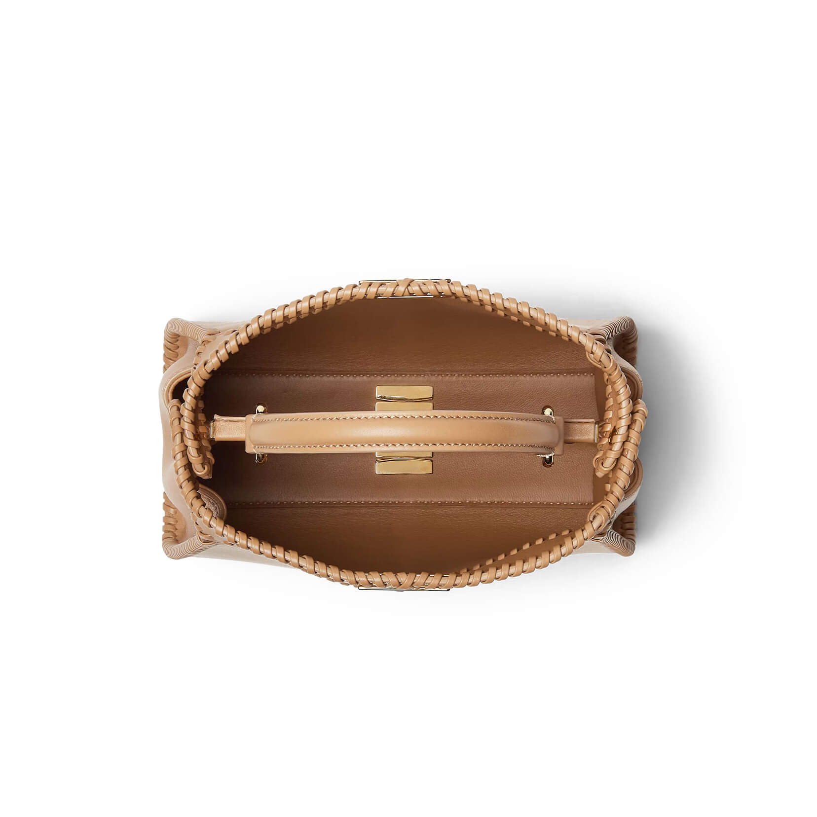 עשוי מעור calfskin בצבע קפוצ׳ינו עם תיפורים לאורך שולי התיק