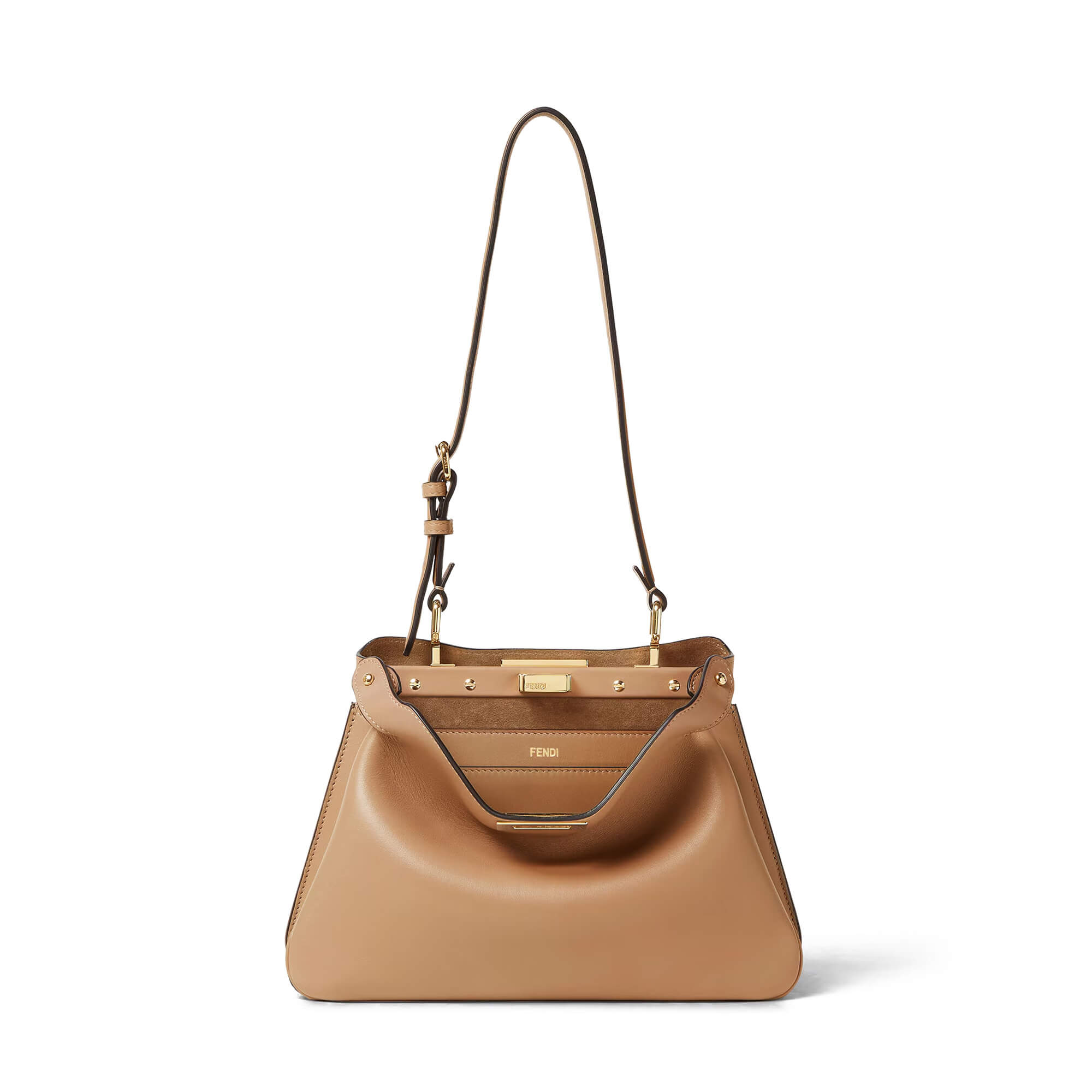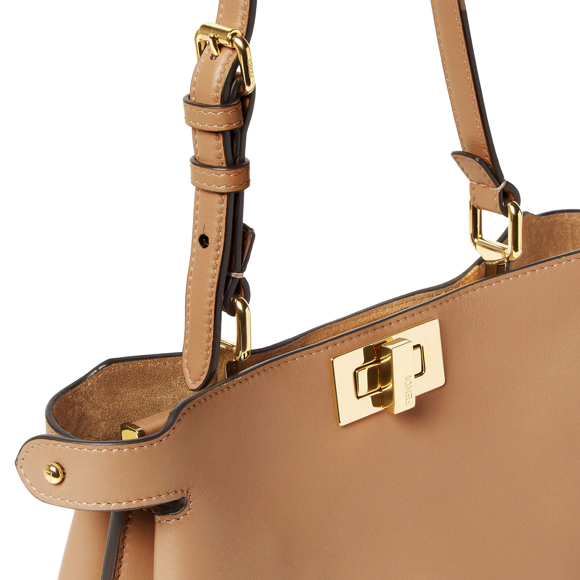 כיס פנימי מעור עם כיתוב FENDI בצבע זהב