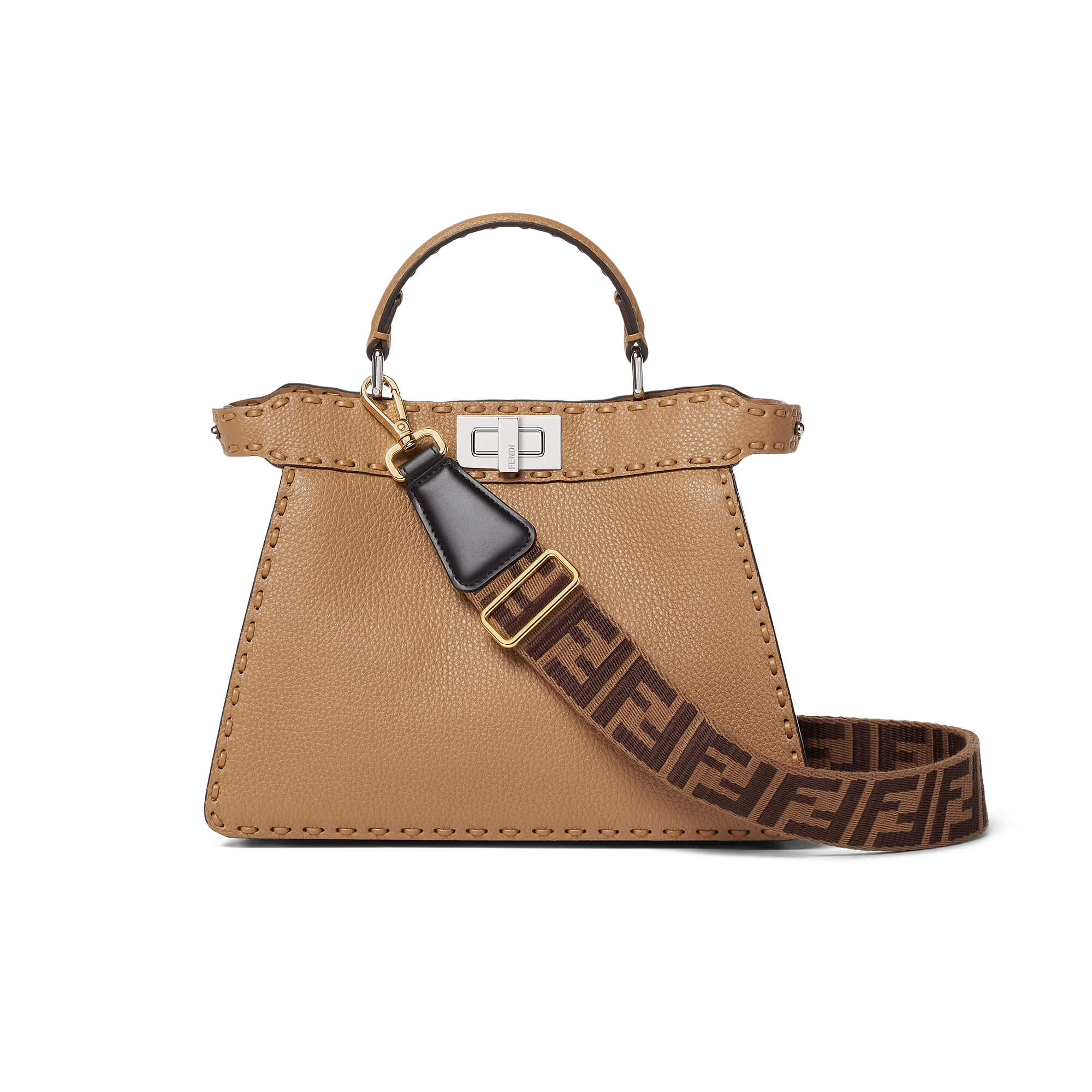 רצועת כתף ארוכה מאריג בצבע חוםן עם דוגמת FF