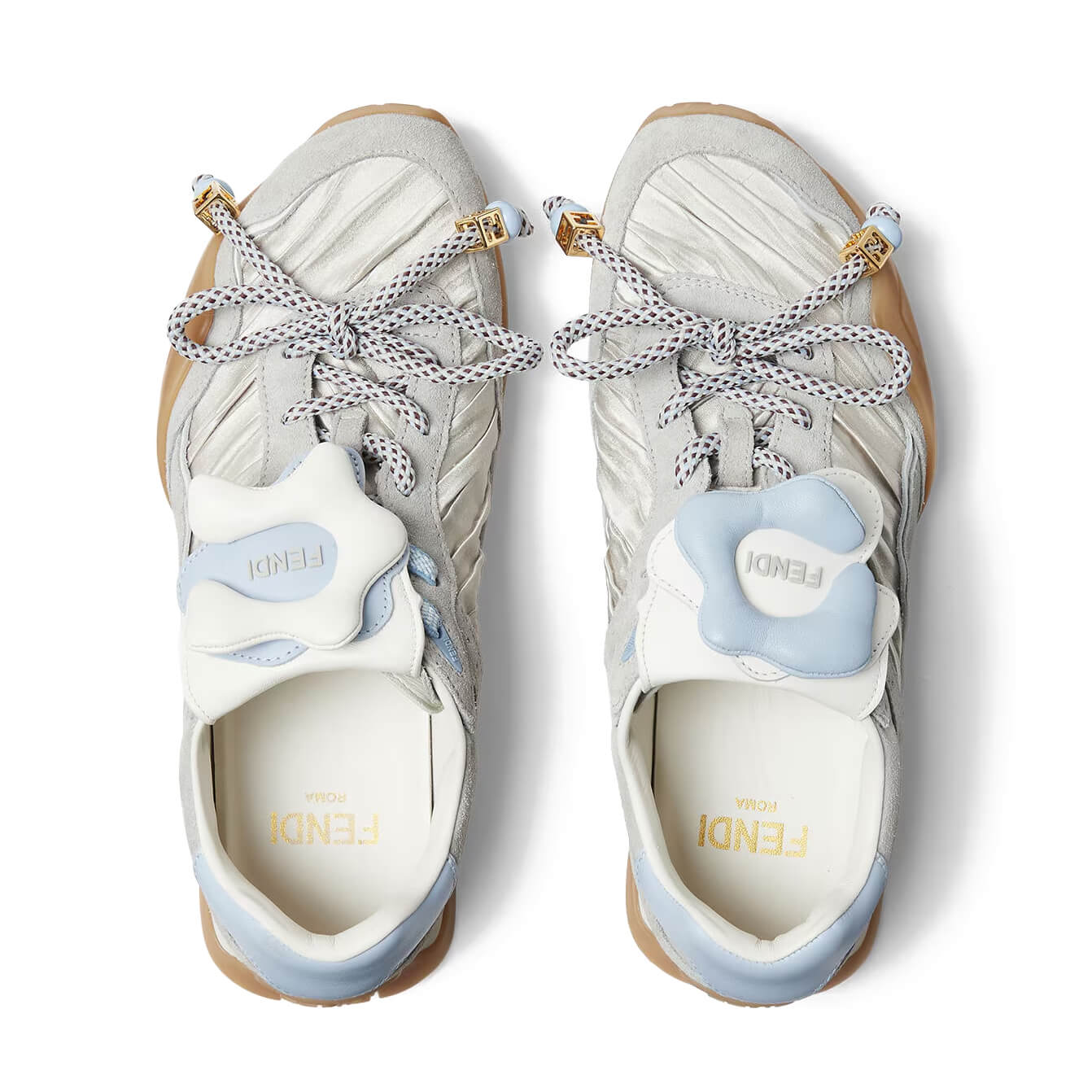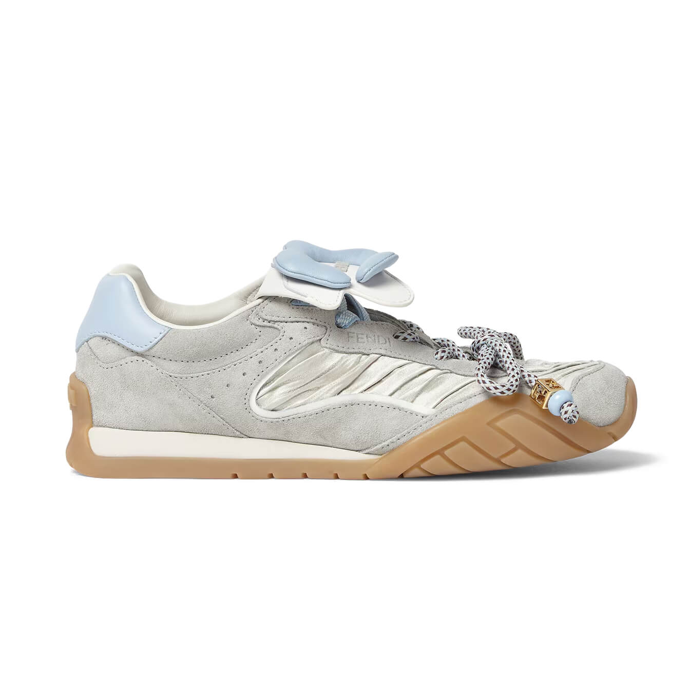 נעלי סניקרס מבד סאטן בצבע אפור בהיר עם קפלים ושילובי זמש בגוון תואם