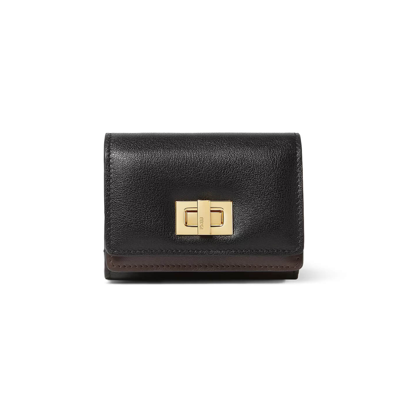 עשוי עור שחור עם פנים מעור בצבע חום שוקולד