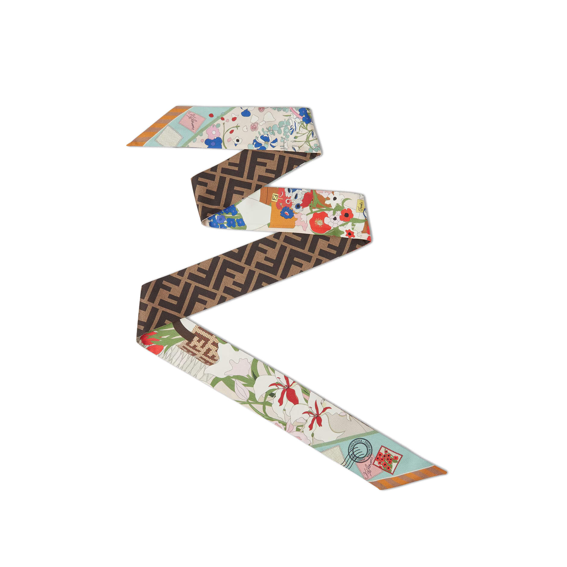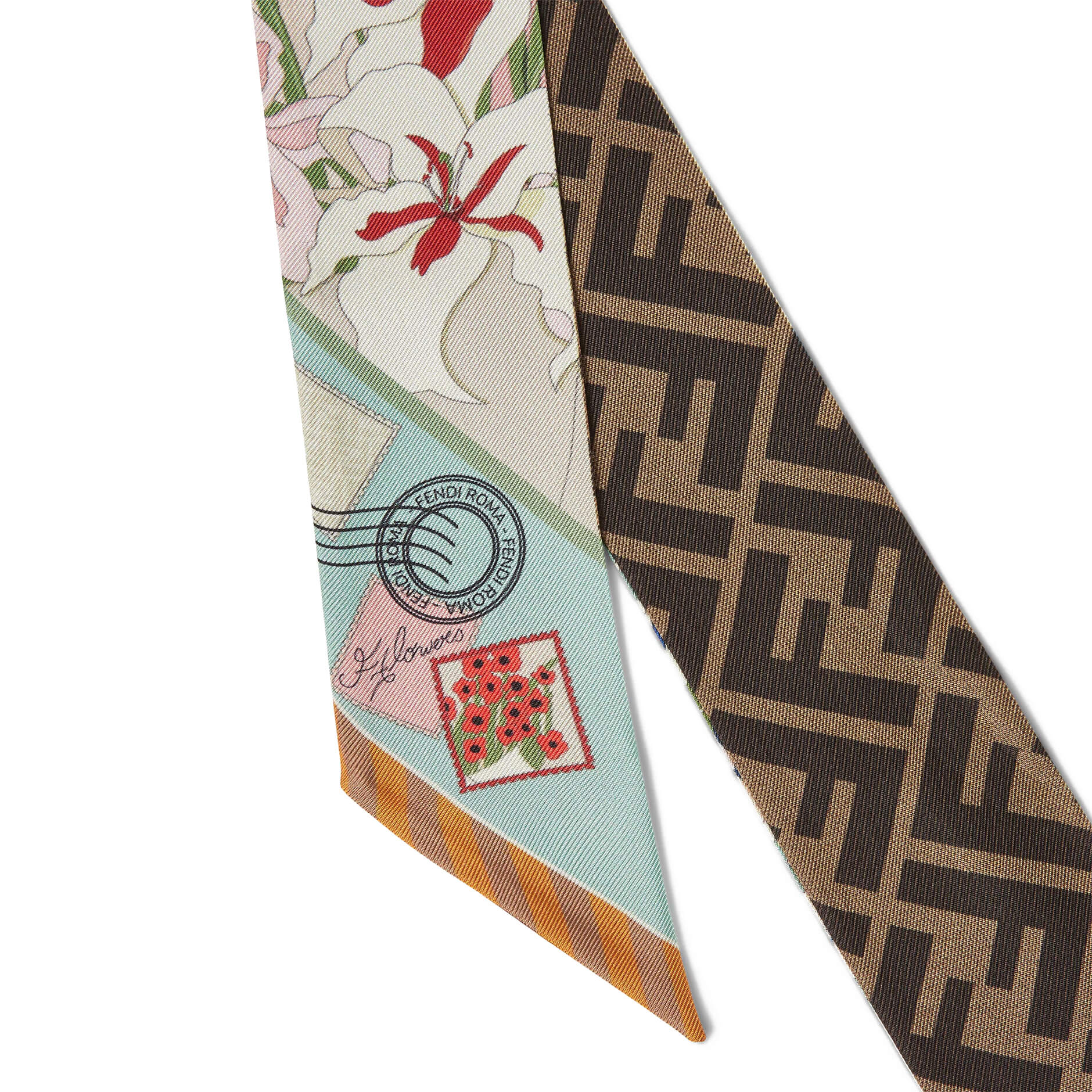 צעיף צר מבד משי עם הדפס דו-צדדי