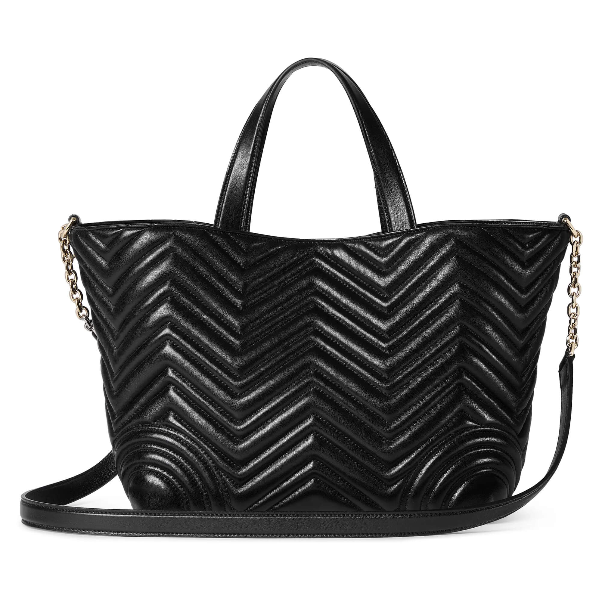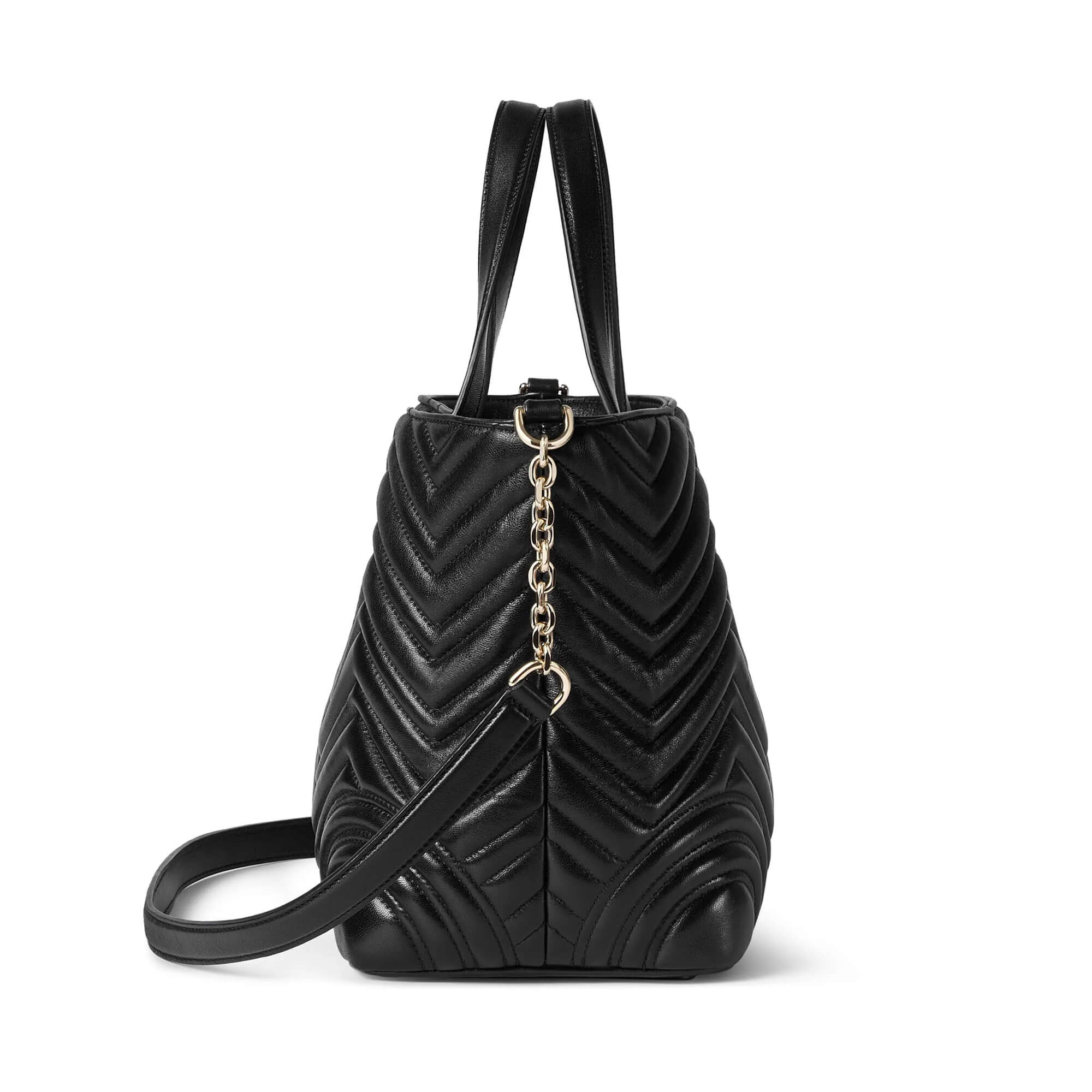 Black matelassé chevron lambskin leather