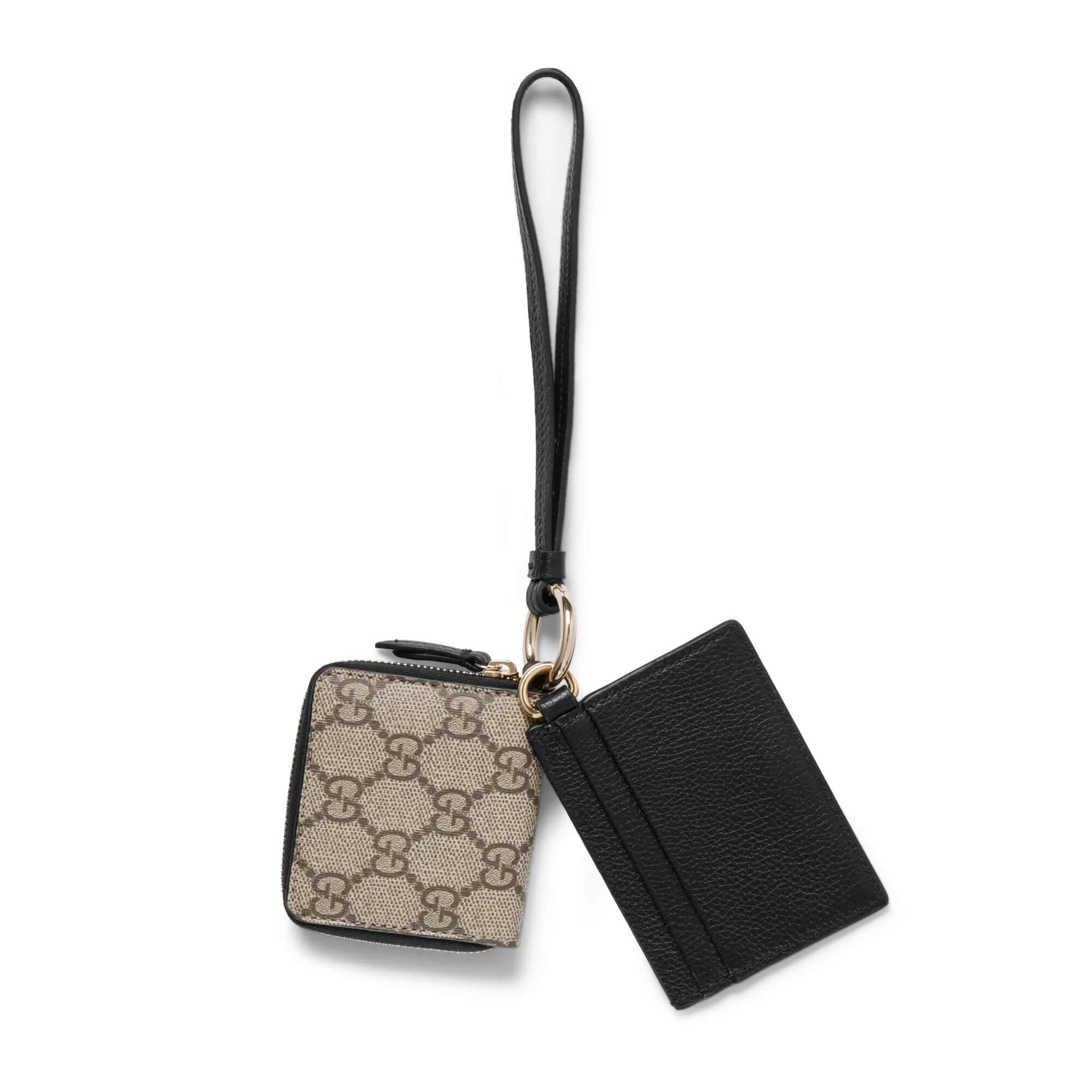 עור שחור ואריג GG Supreme בצבע בז׳ וחום כהה