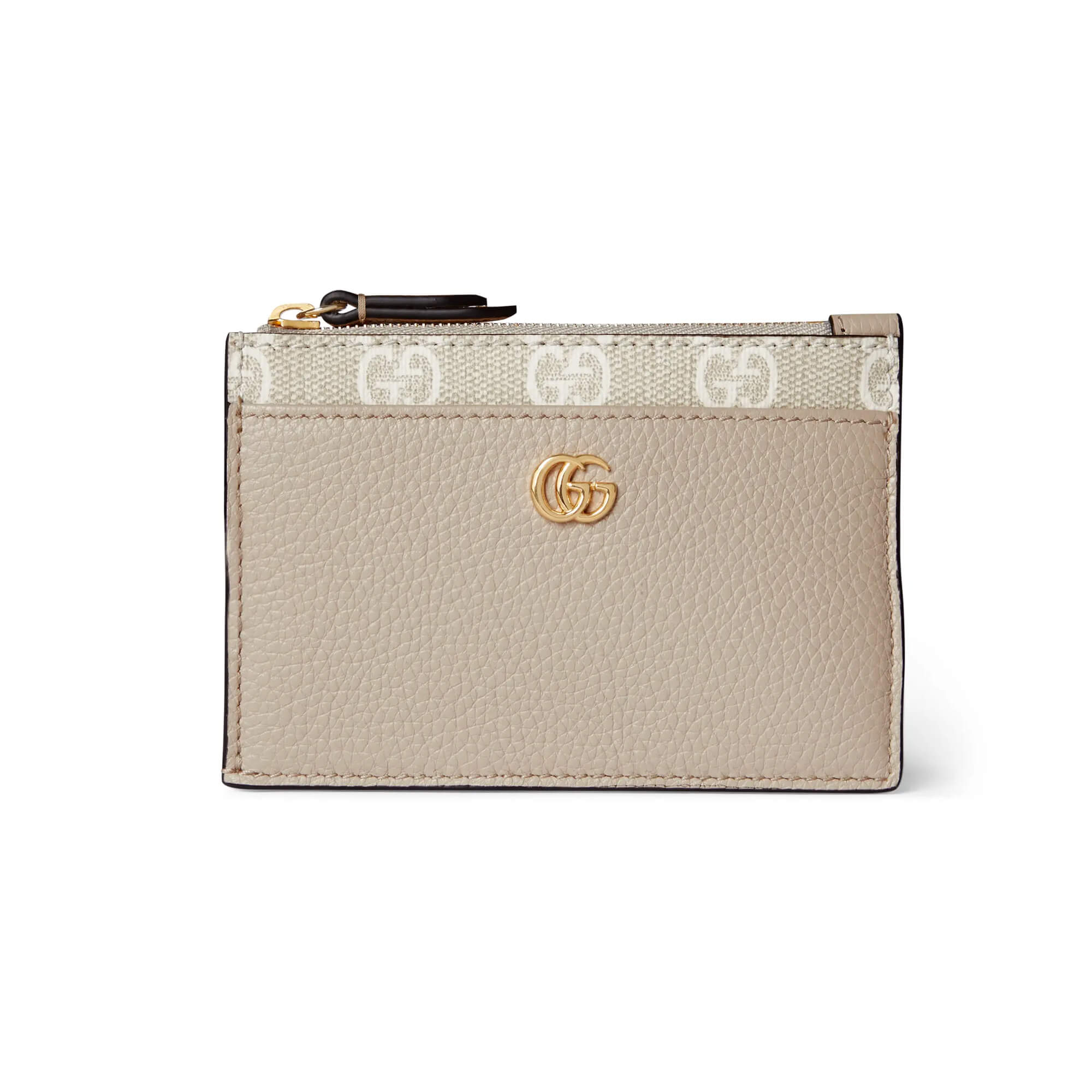 ארנק קטן מעור בצבע בז’ בשילוב אריג GG Supreme בצבע בז’ ולבן