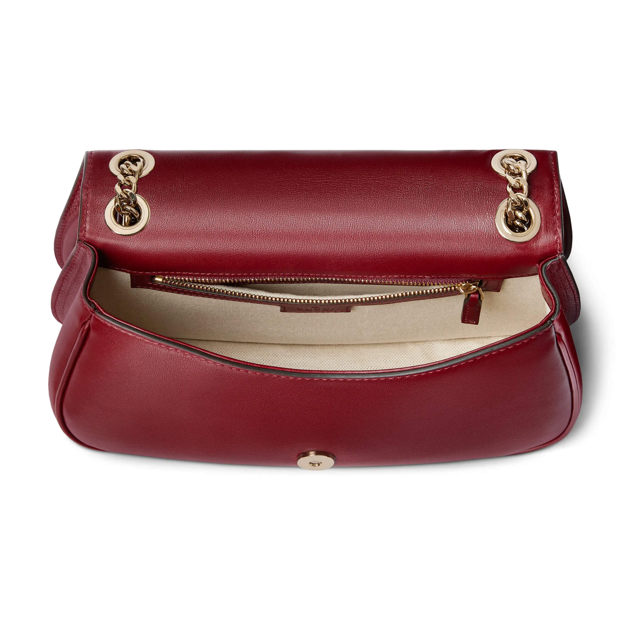 Sliding chain strap can be worn as a shoulder strap with 48cm drop or can be worn as a top handle with 29cm drop.