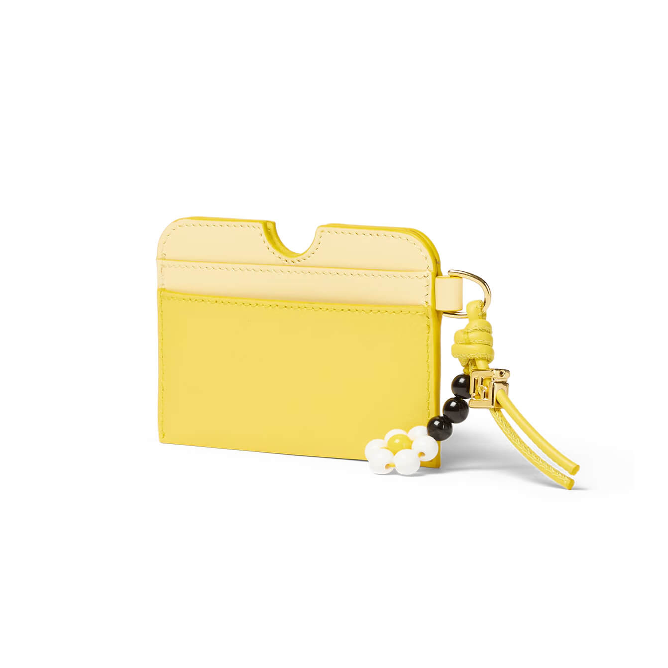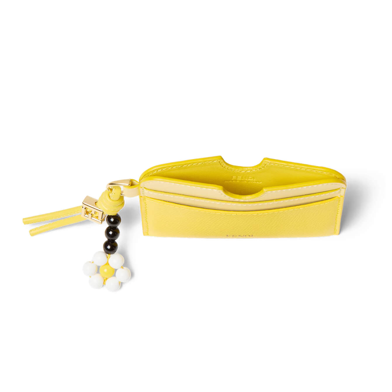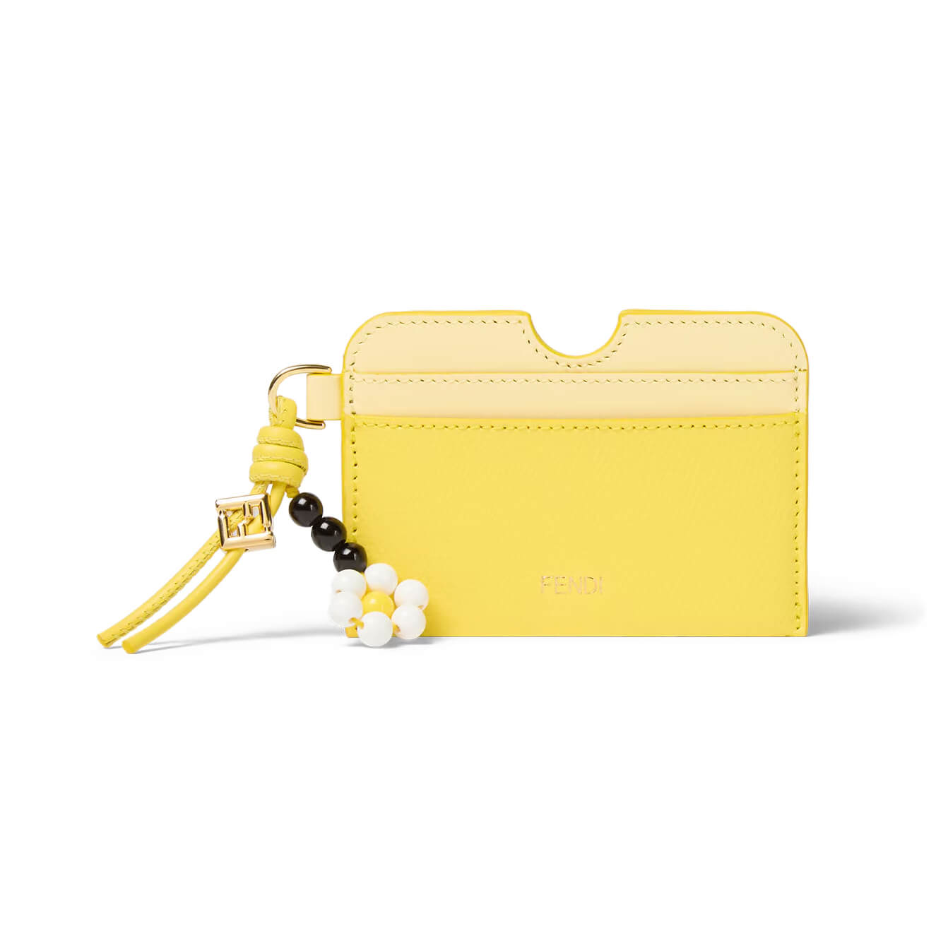 ארנק כרטיסים FF Diamonds מעור במרקם טבעי בצבע צהוב בשילוב עור חלק בצבע צהוב בהיר