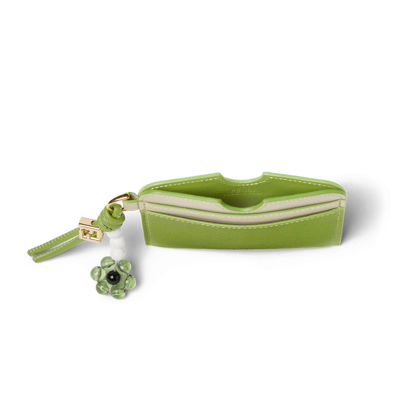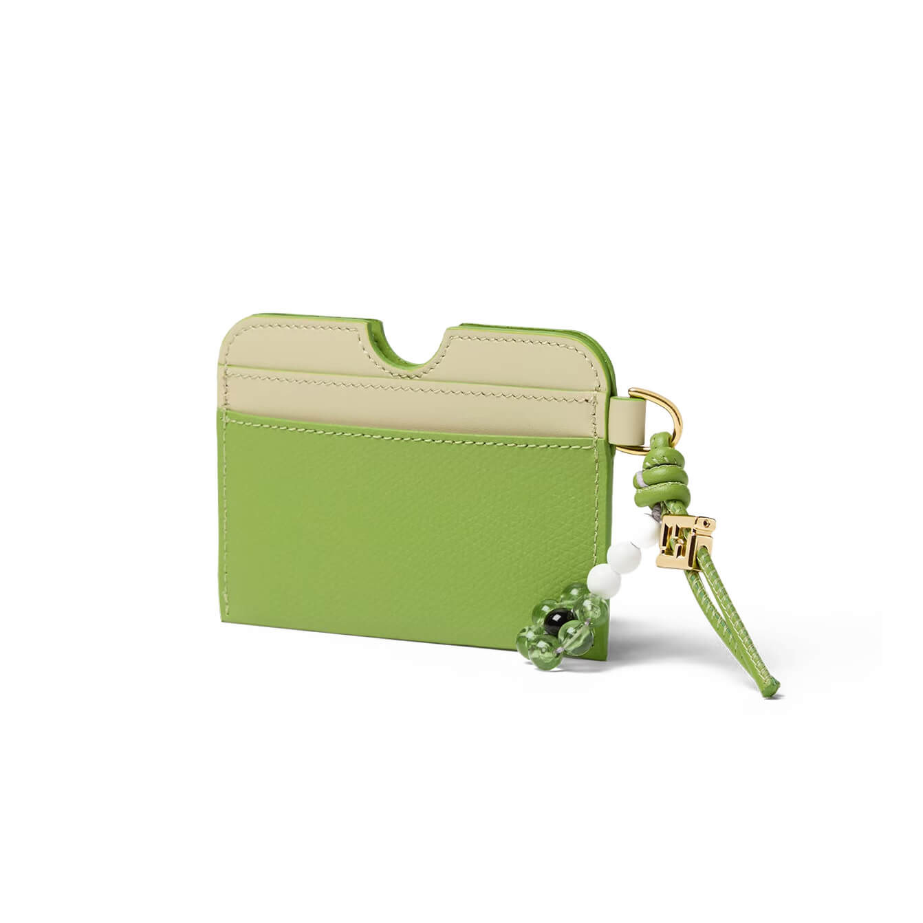 ארנק כרטיסים FF Diamonds מעור במרקם טבעי בצבע ירוק בשילוב עור חלק בצבע ירוק בהיר