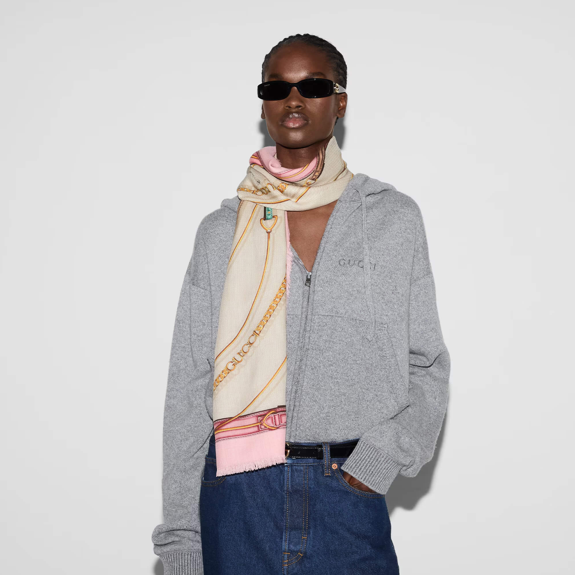 Gucci GG Belt Print Cashmere Silk Shawl