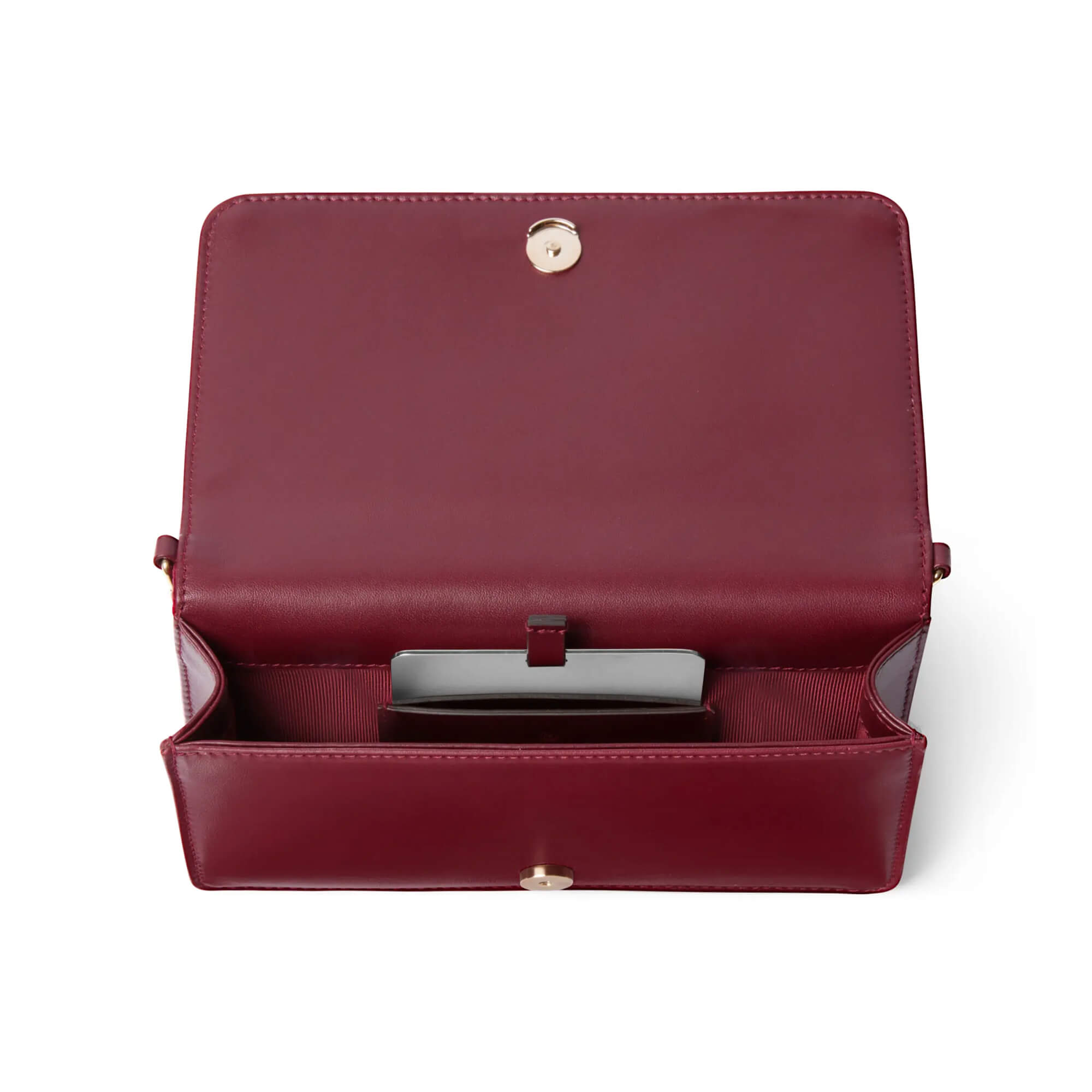 בתוך התיק: מראה נשלפת בכיס ייעודי וכיס פתוח אחד