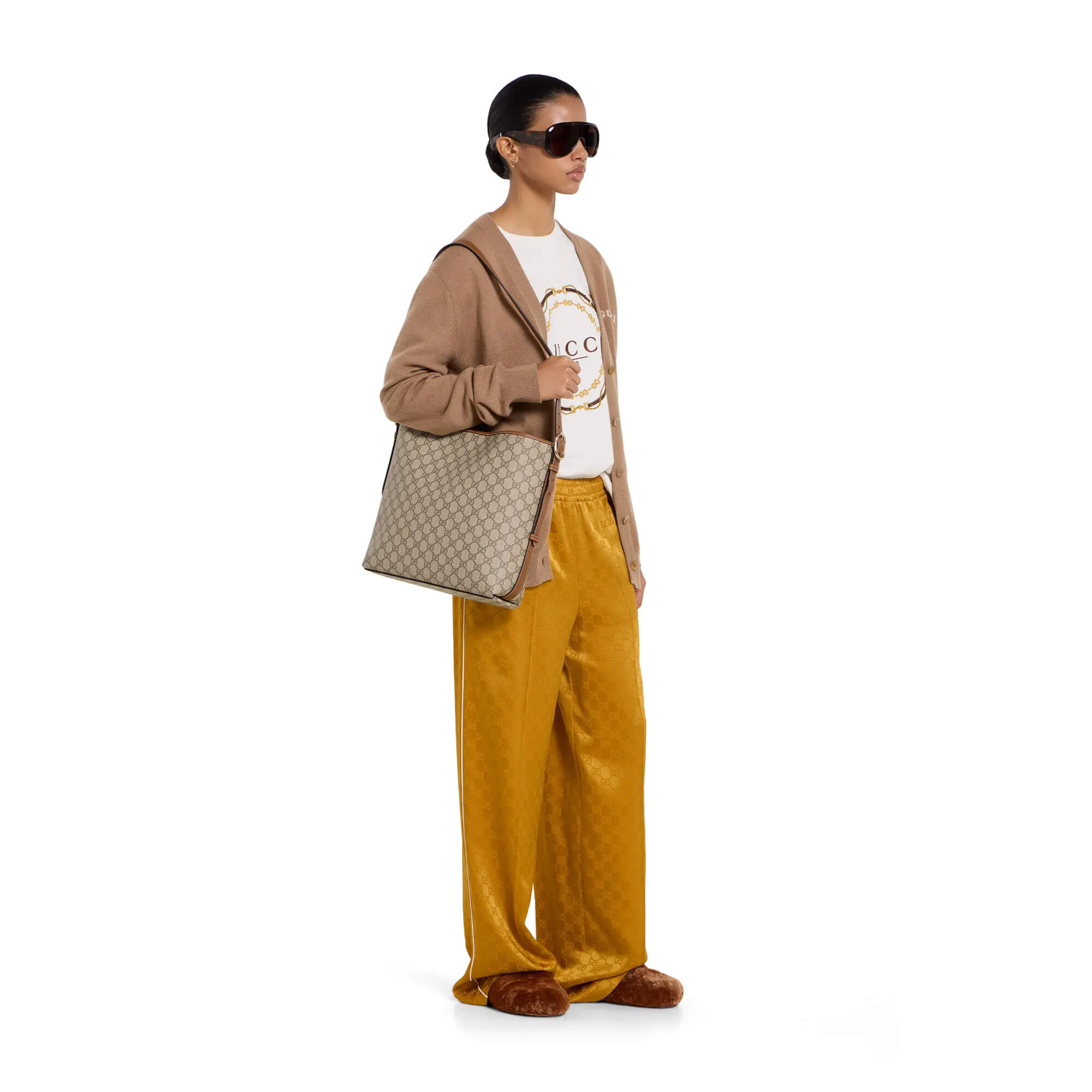 אריג מצופה GG Monogram בצבע בז׳ וחום כהה