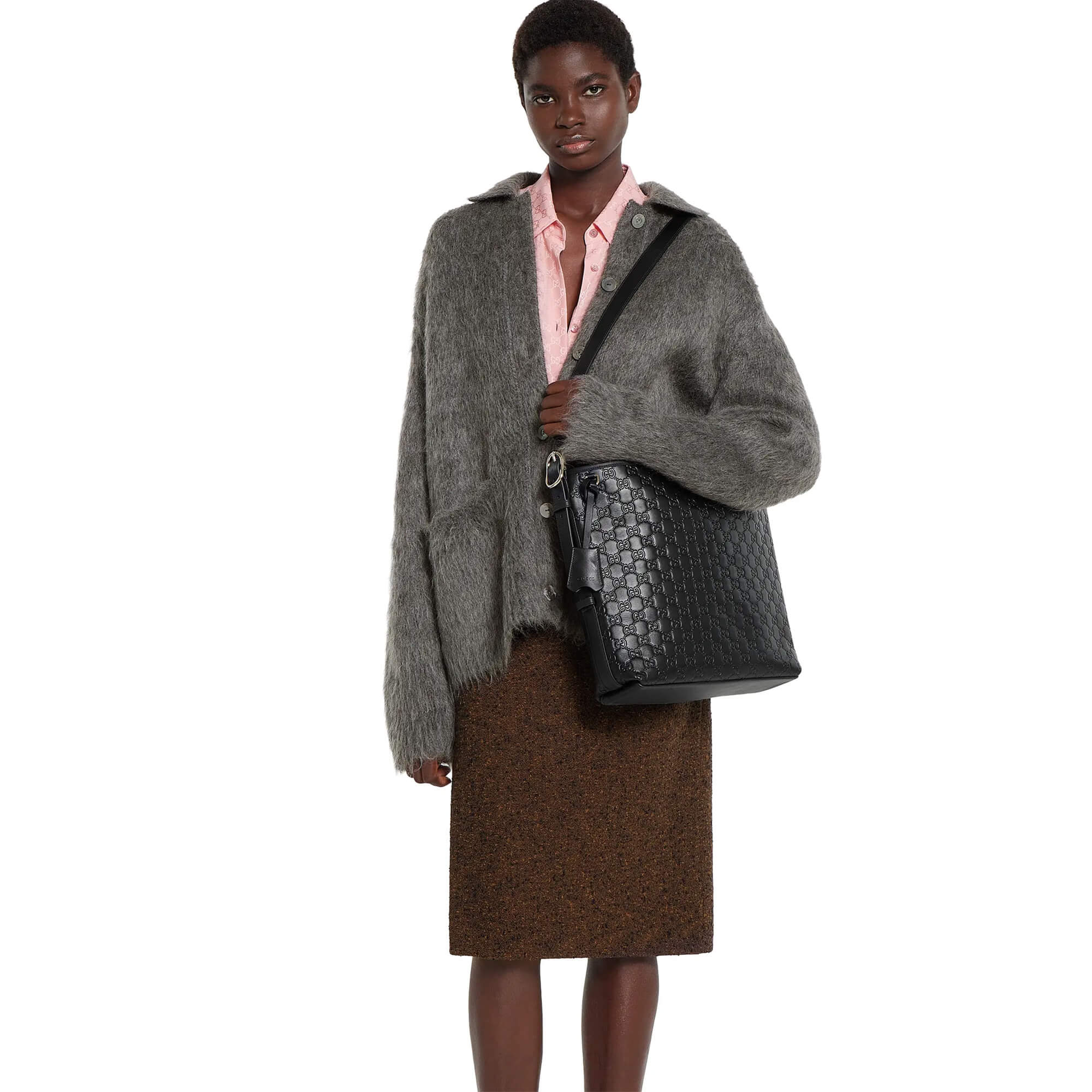 Black GG embossed leather