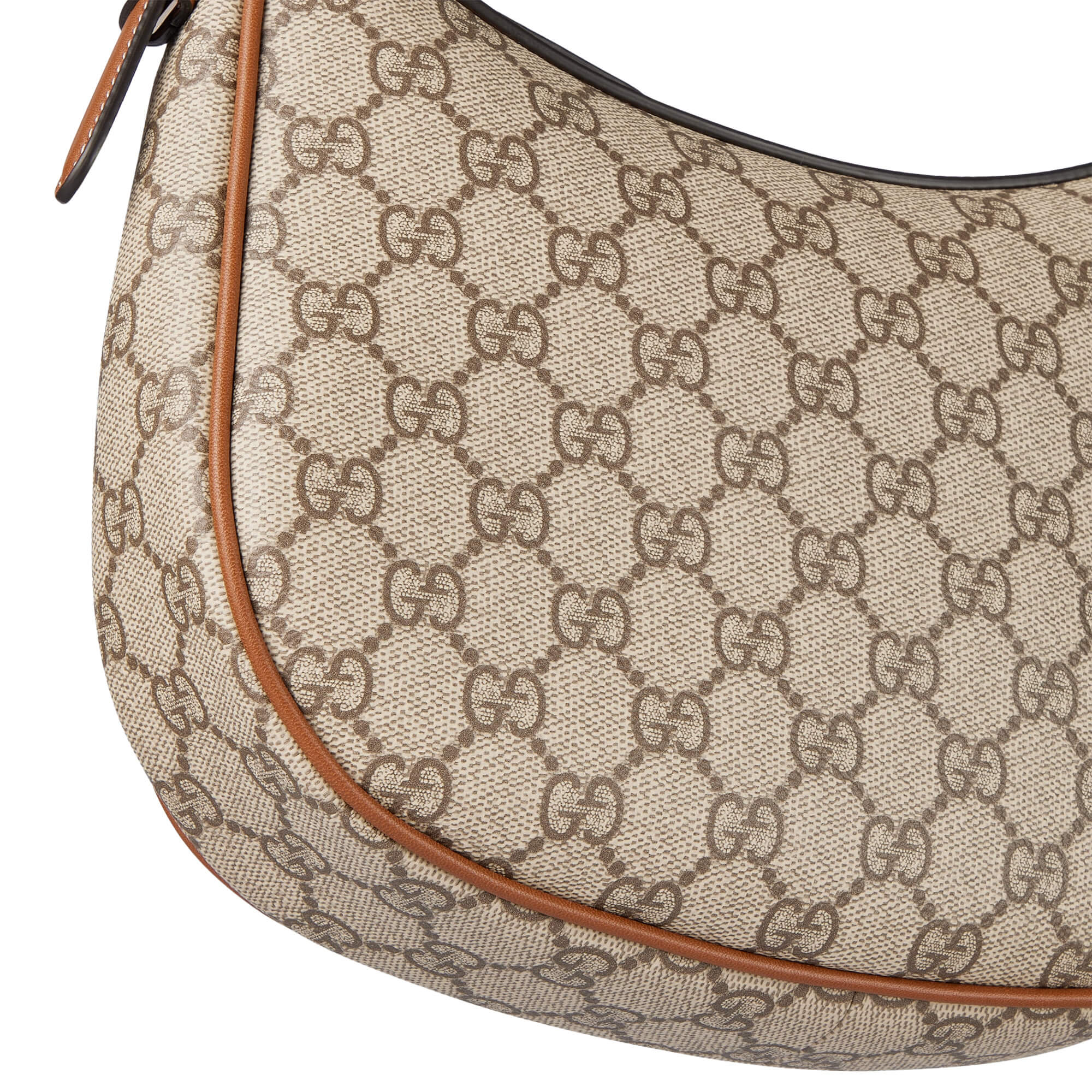Brown leather trim with contrast stitching