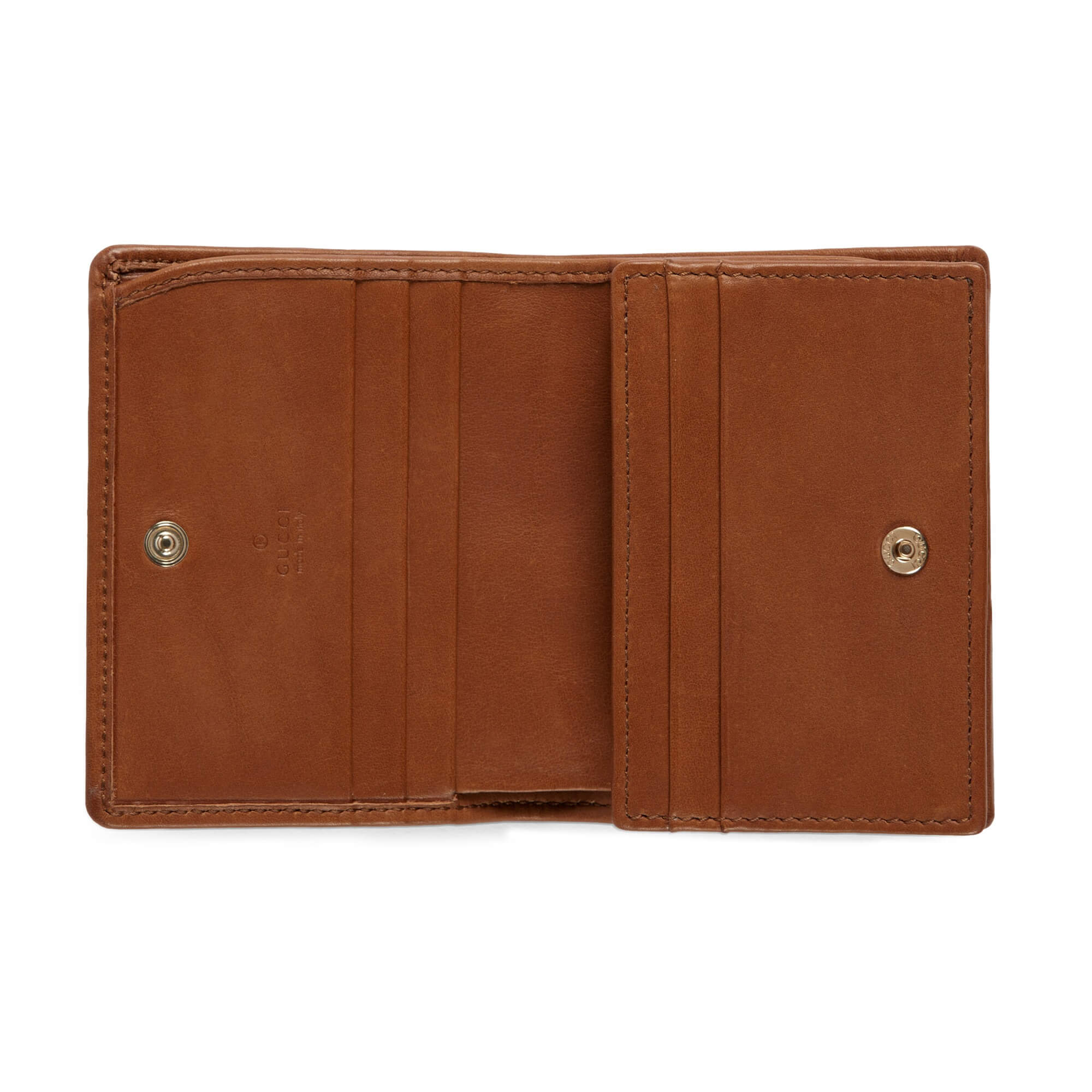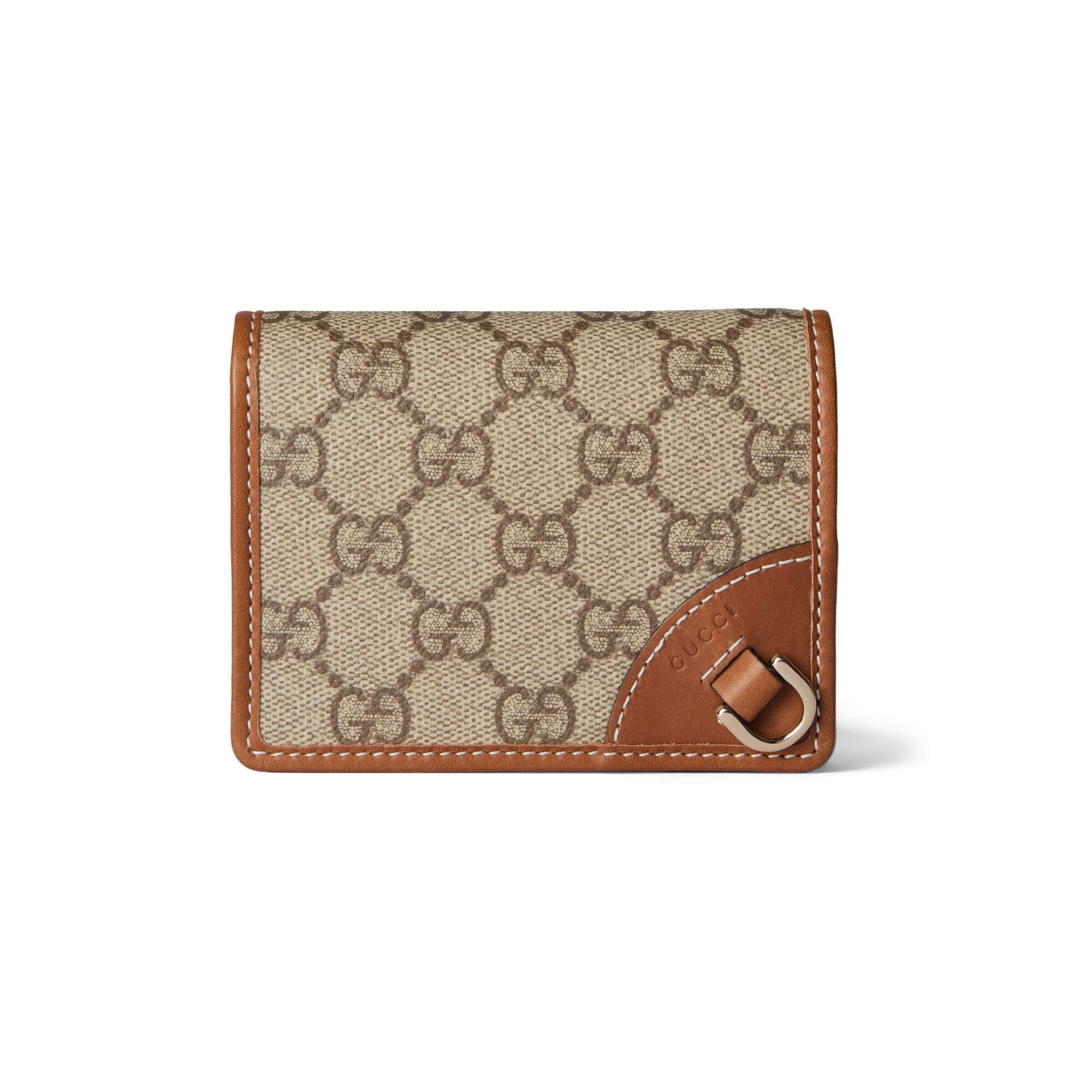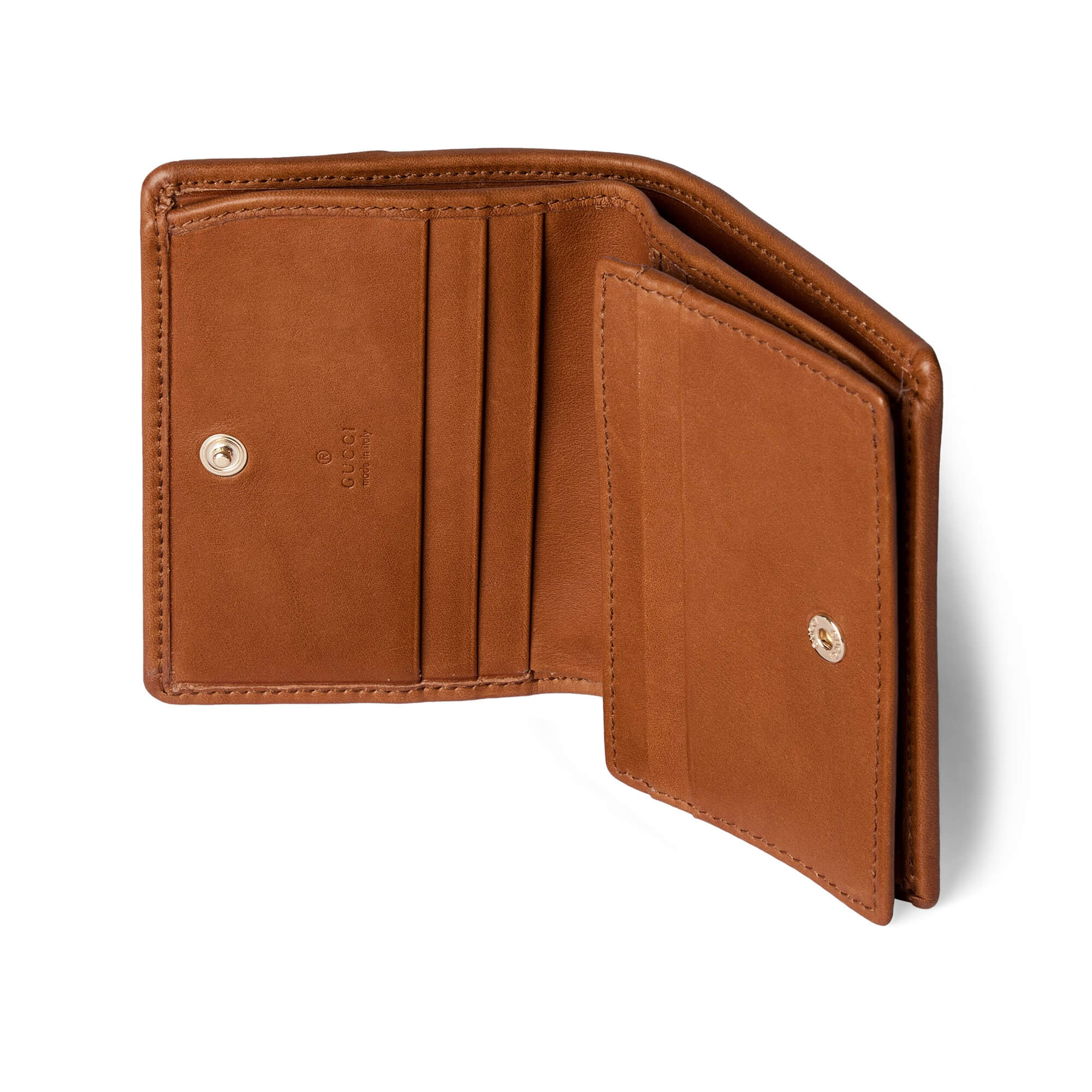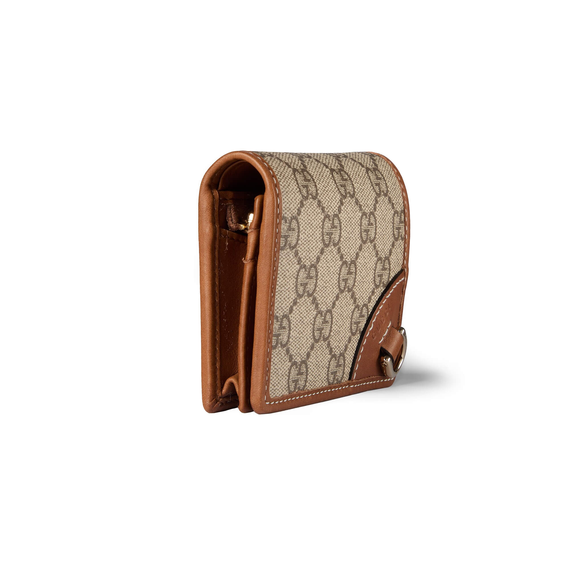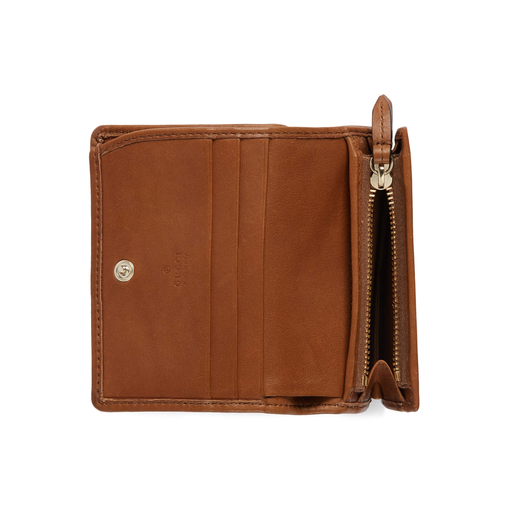 ארנק מאריג GG Monogram מצופה בצבע בז’ וחום, בשילוב עור חום