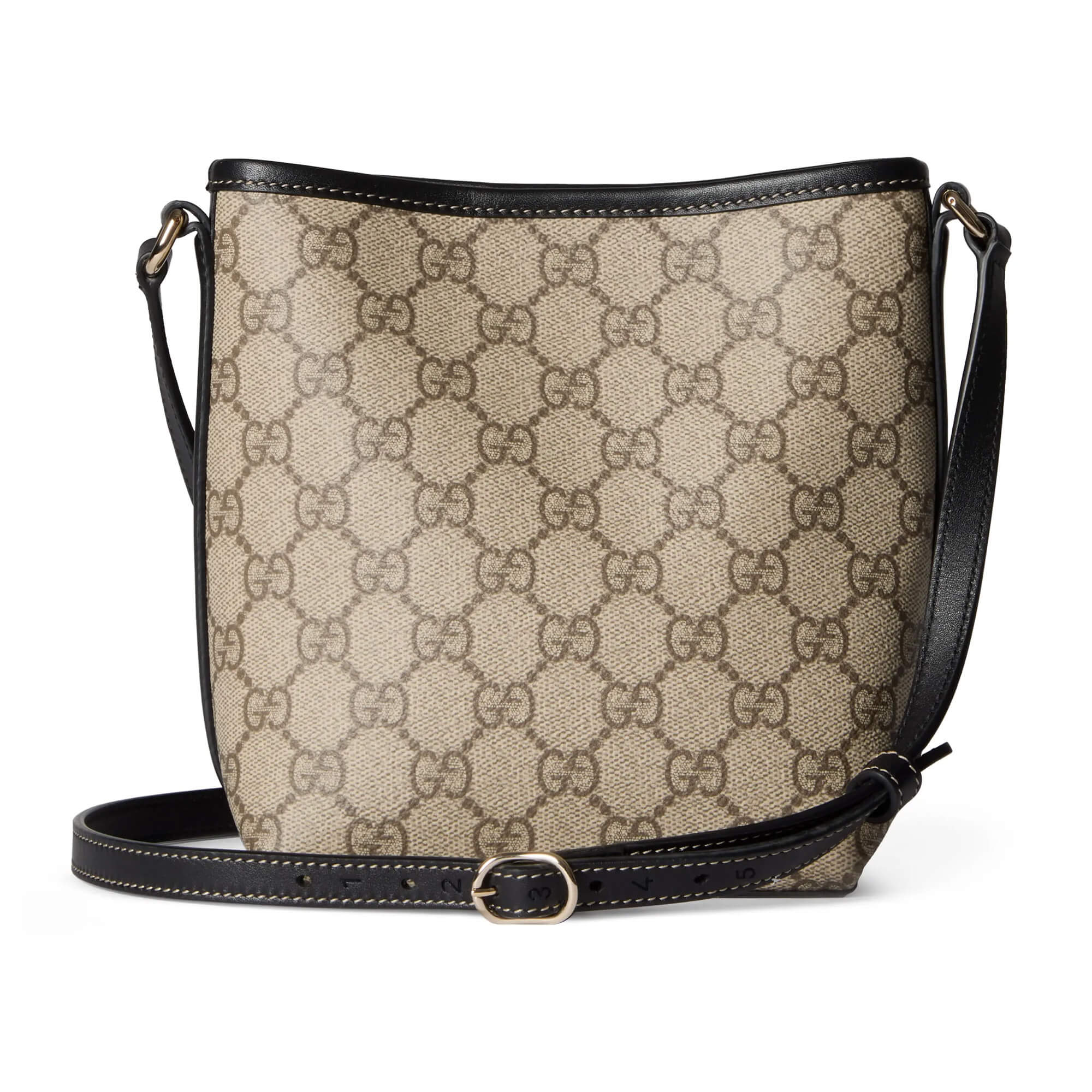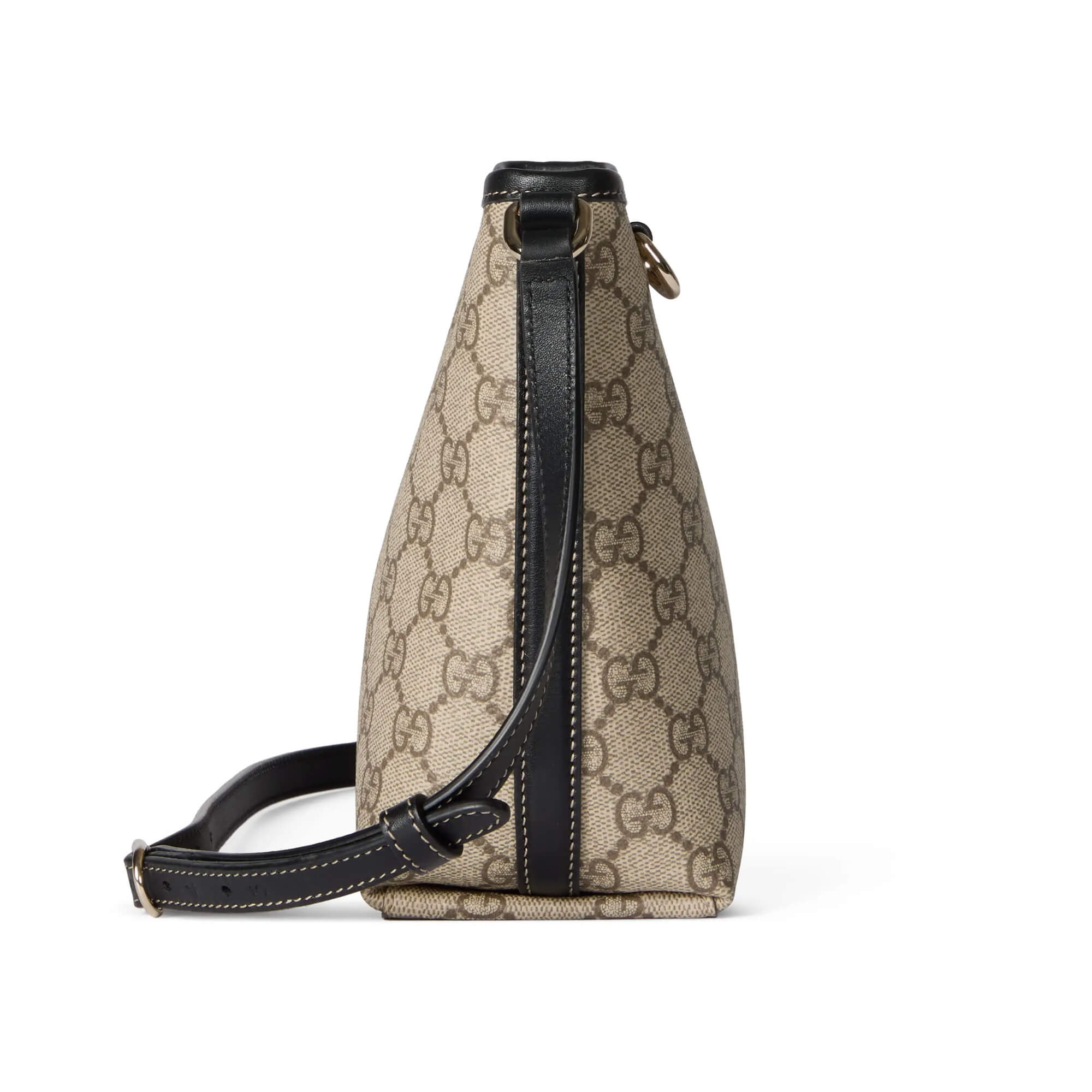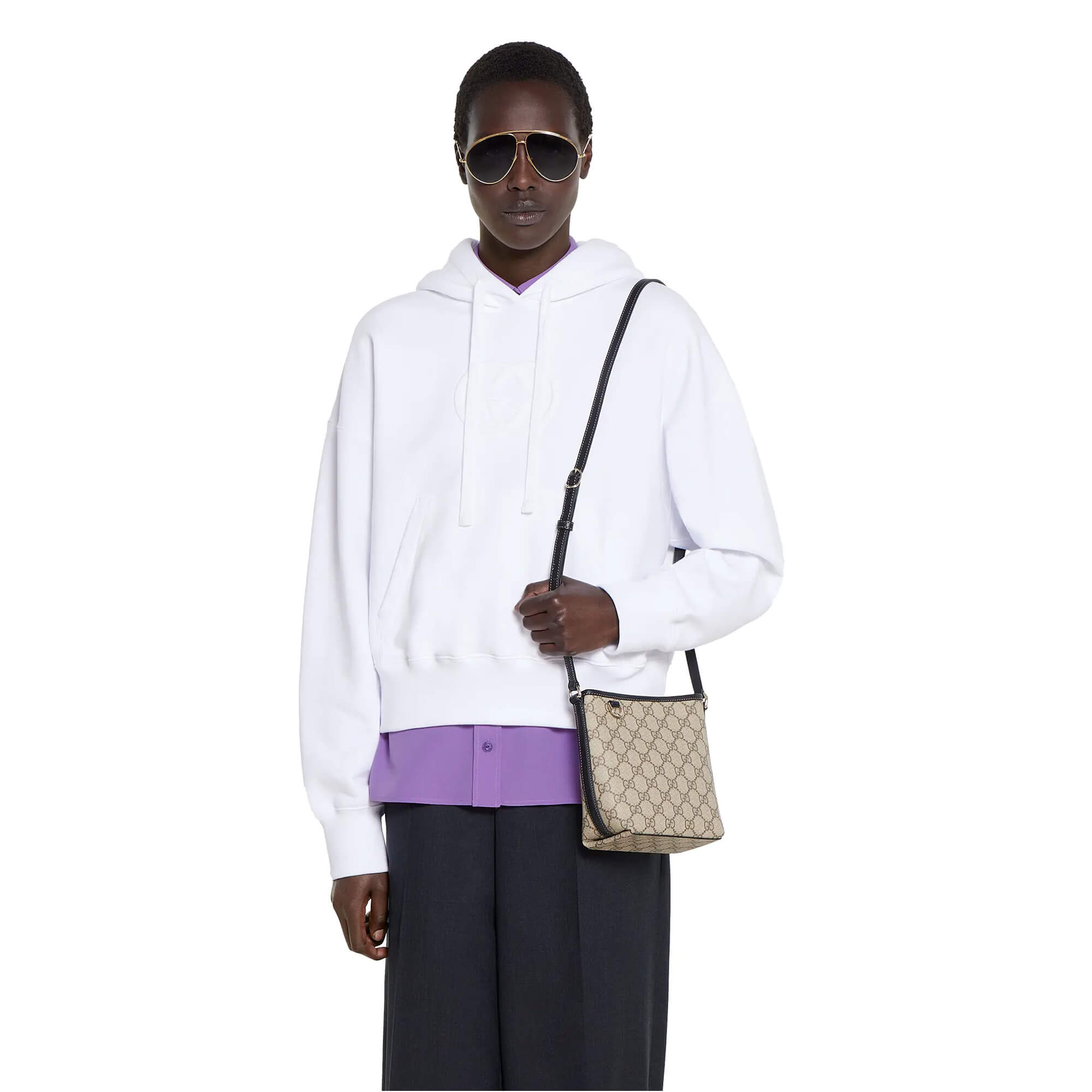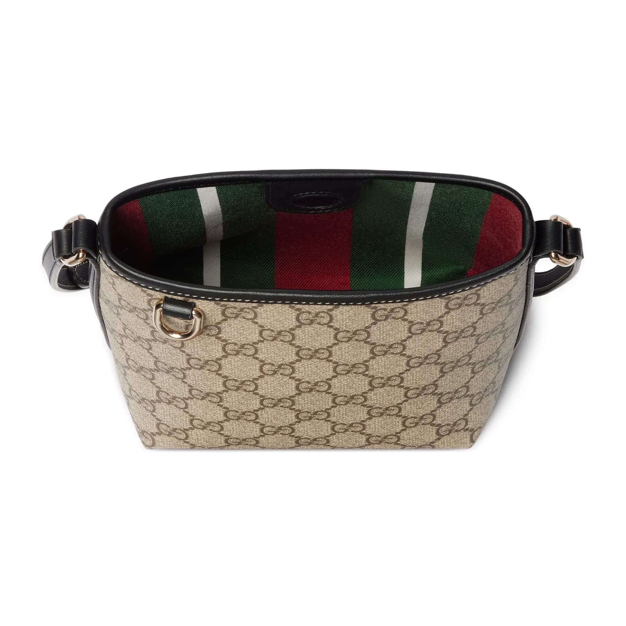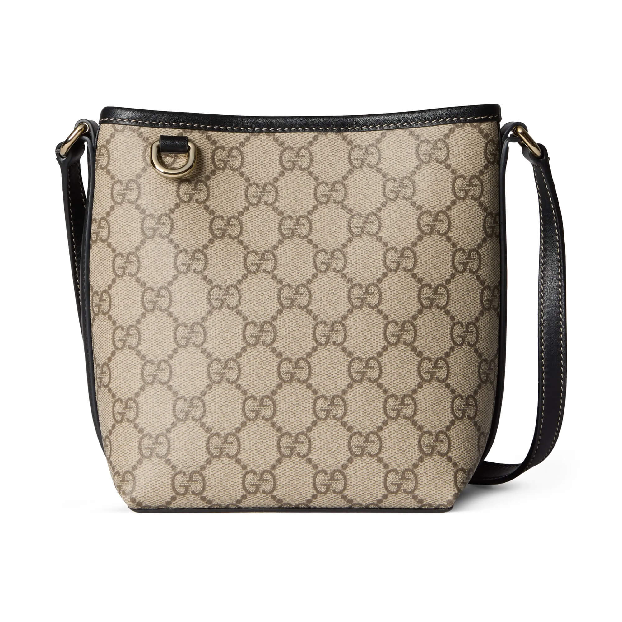 תיק GG קטן עשוי מאריג GG Monogram מצופה בצבע בז׳ וחום כהה